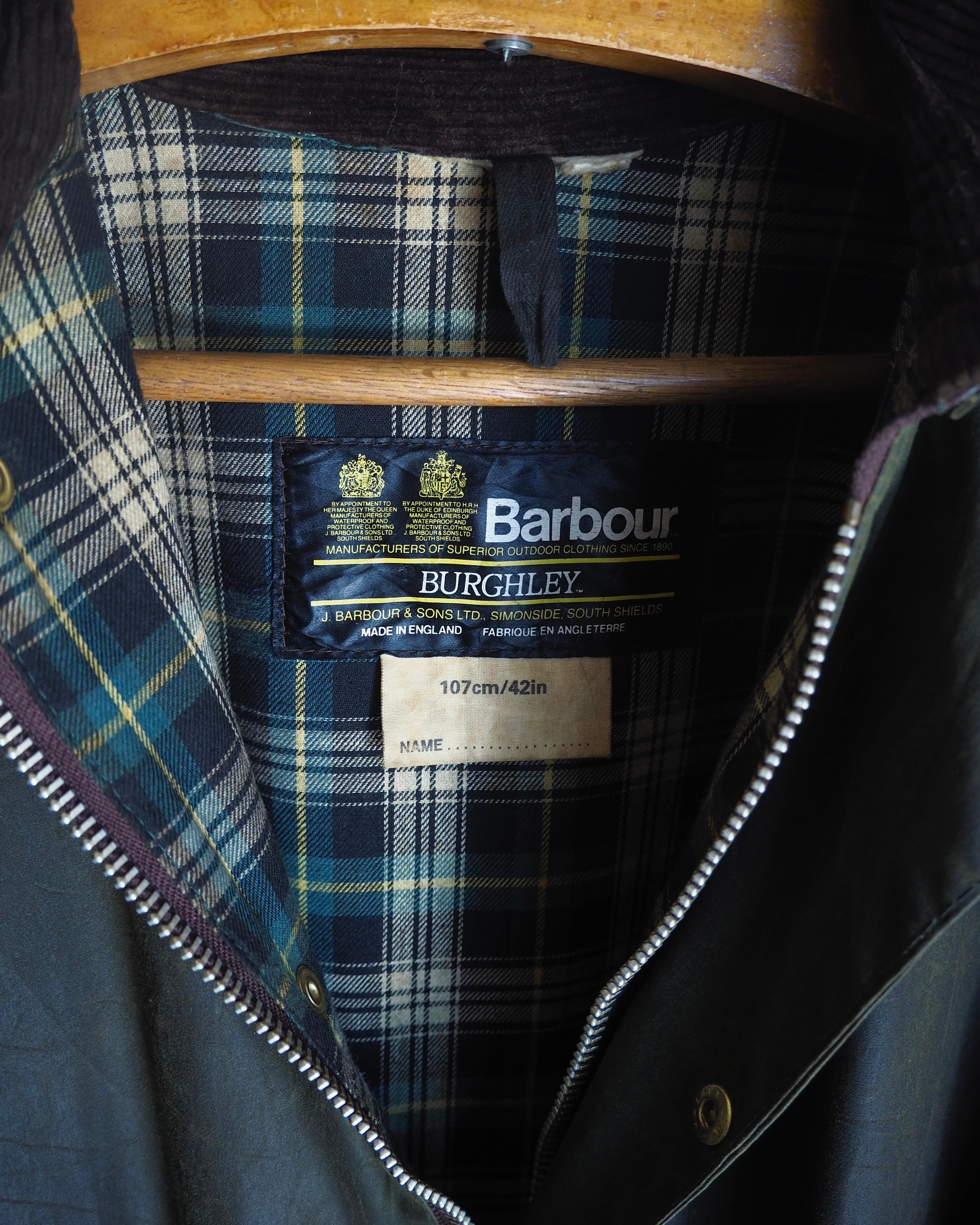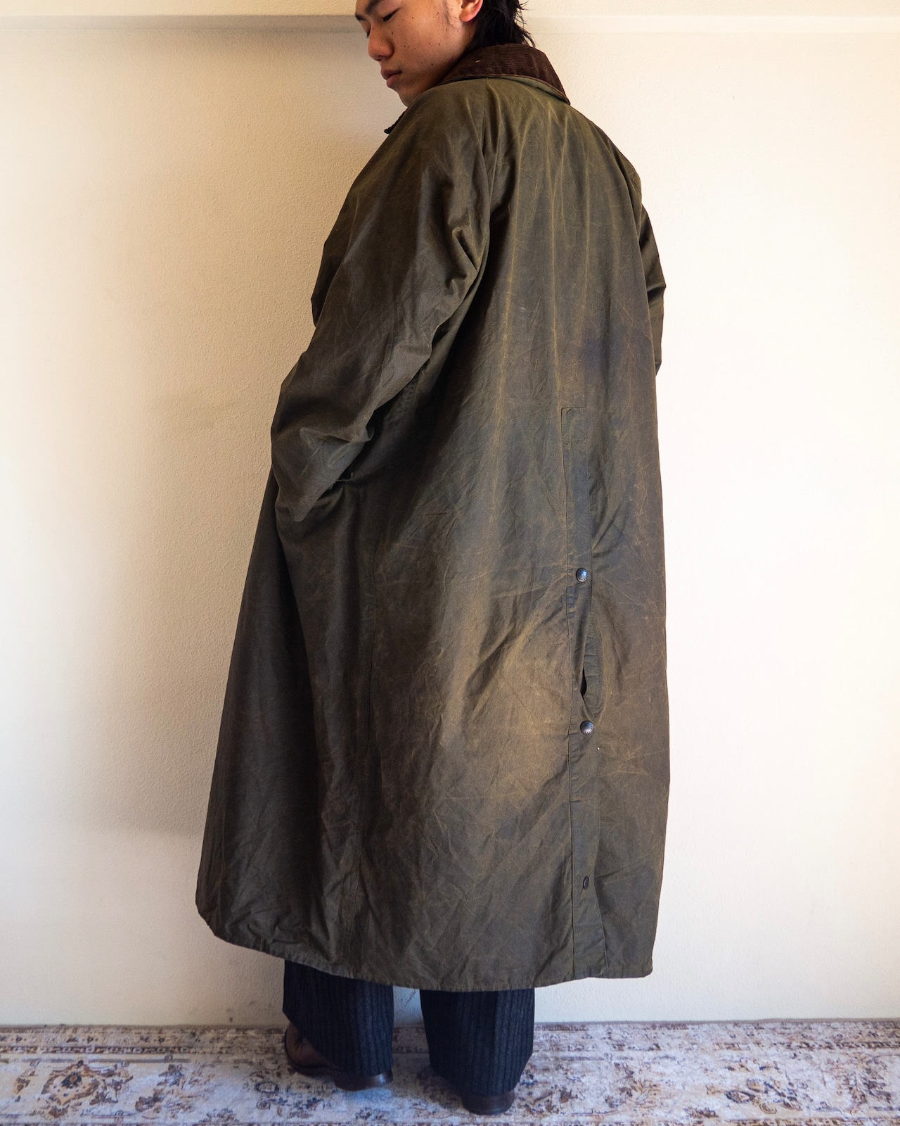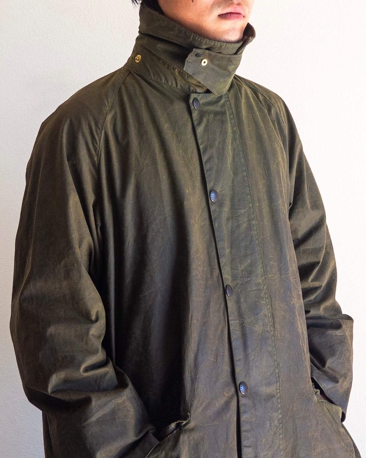 オイルの抜けムラが若干見られるもののボディの状態は非常に良く、経年によりいい塩梅に皺も入ったヴィンテージのバブアーを着用するのにはベストなコンディションと言えるでしょう。