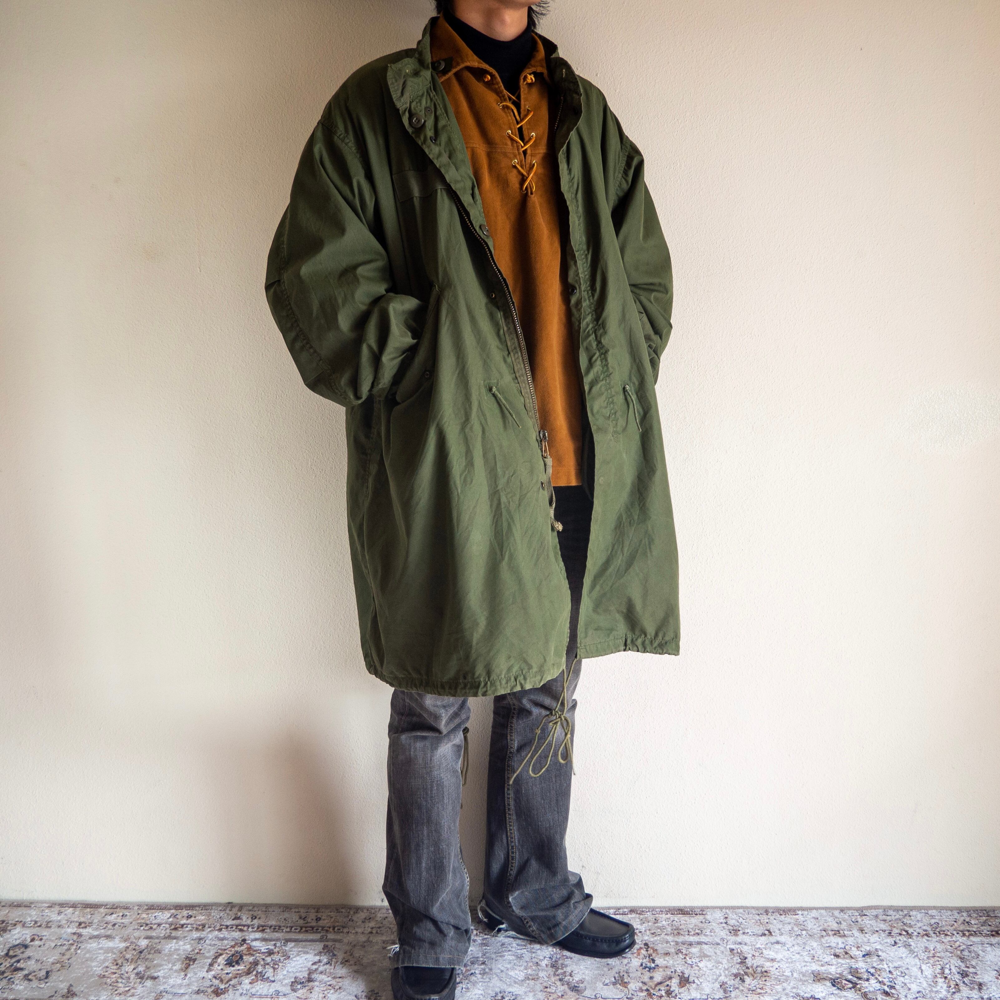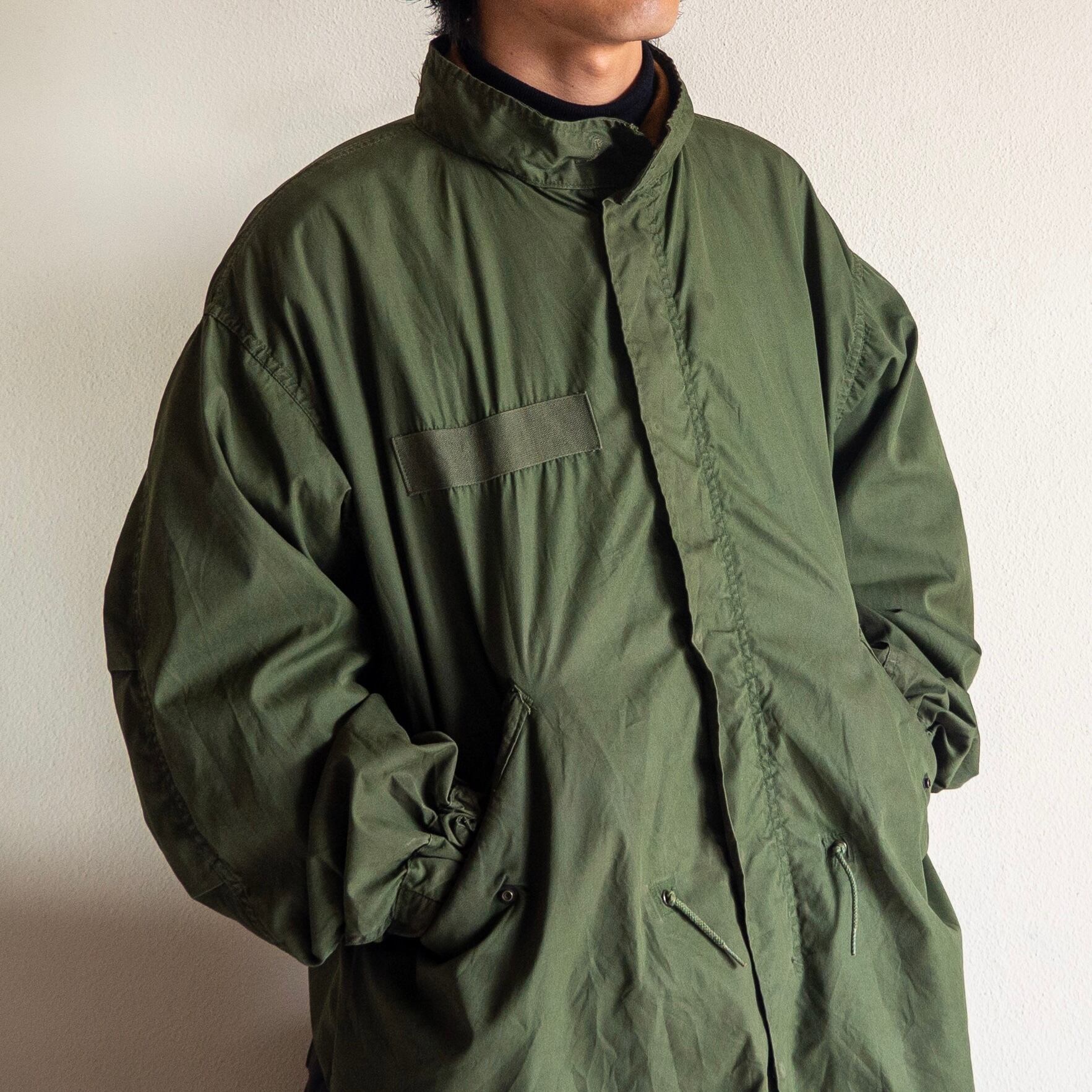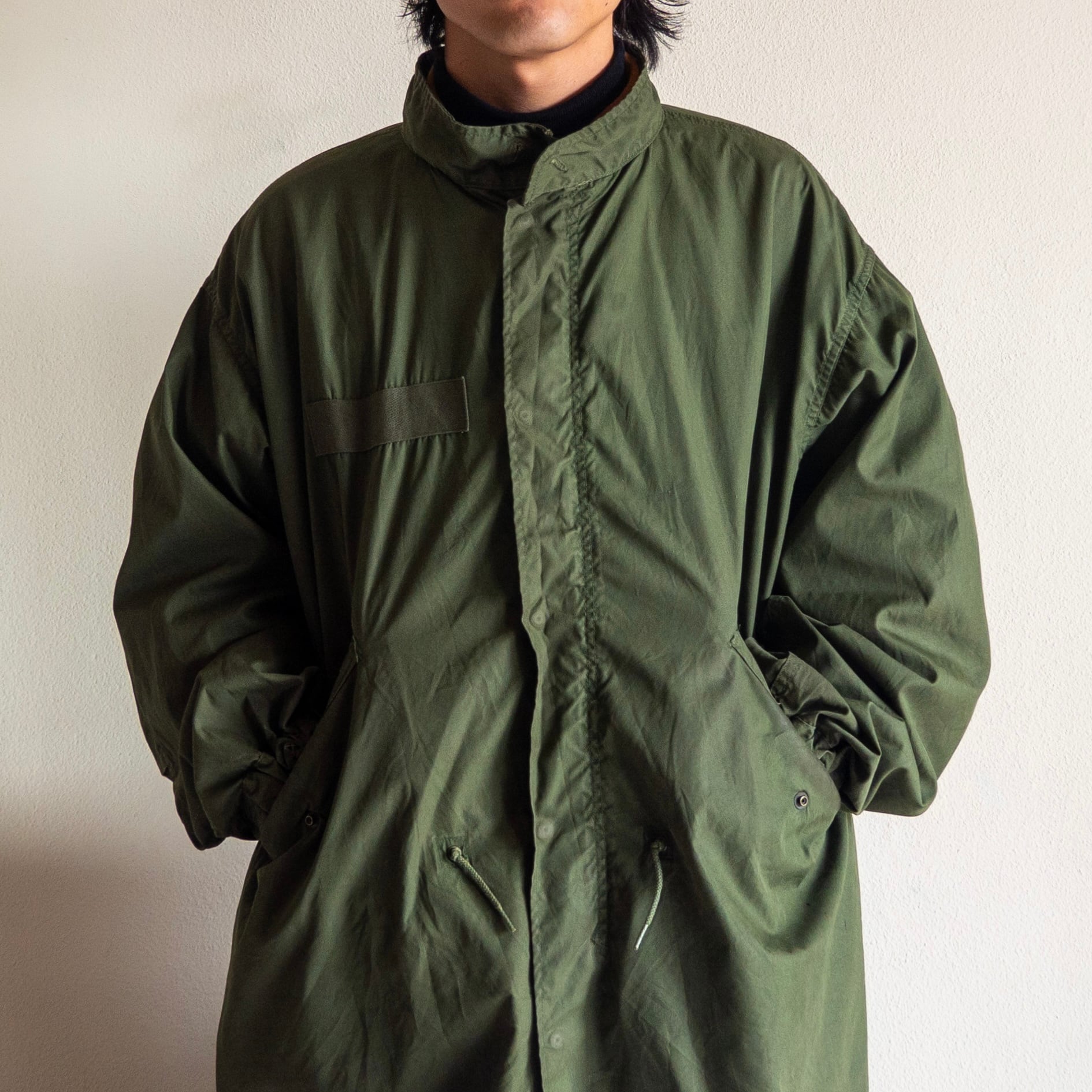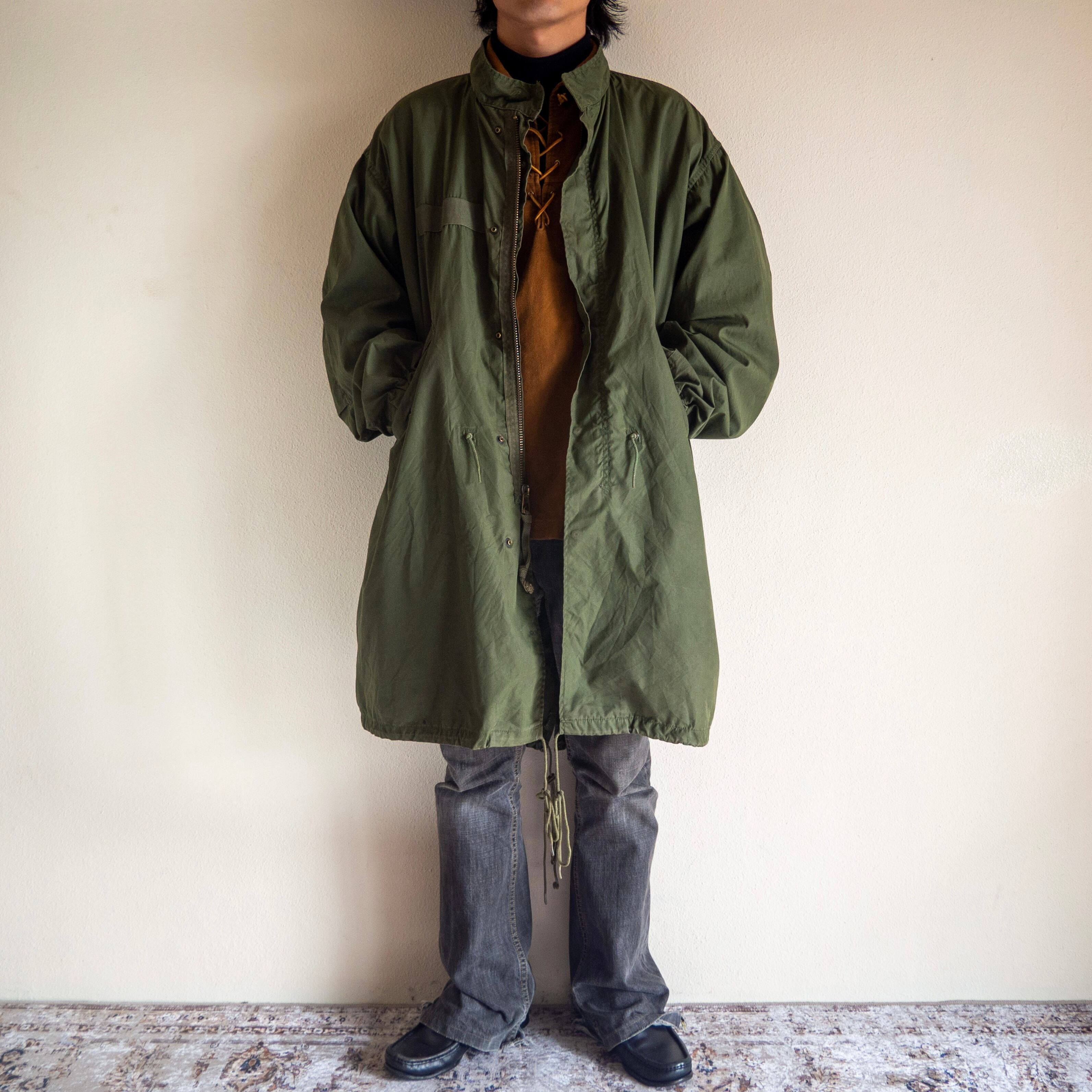 極寒地での戦闘や移動を想定して作られたこちらのパーカー。中にたくさん着込めるように、広めにとられた身幅とアームホールやウエストについたドローコードなど厳しい寒さから身を護るためのディティールが満載です。