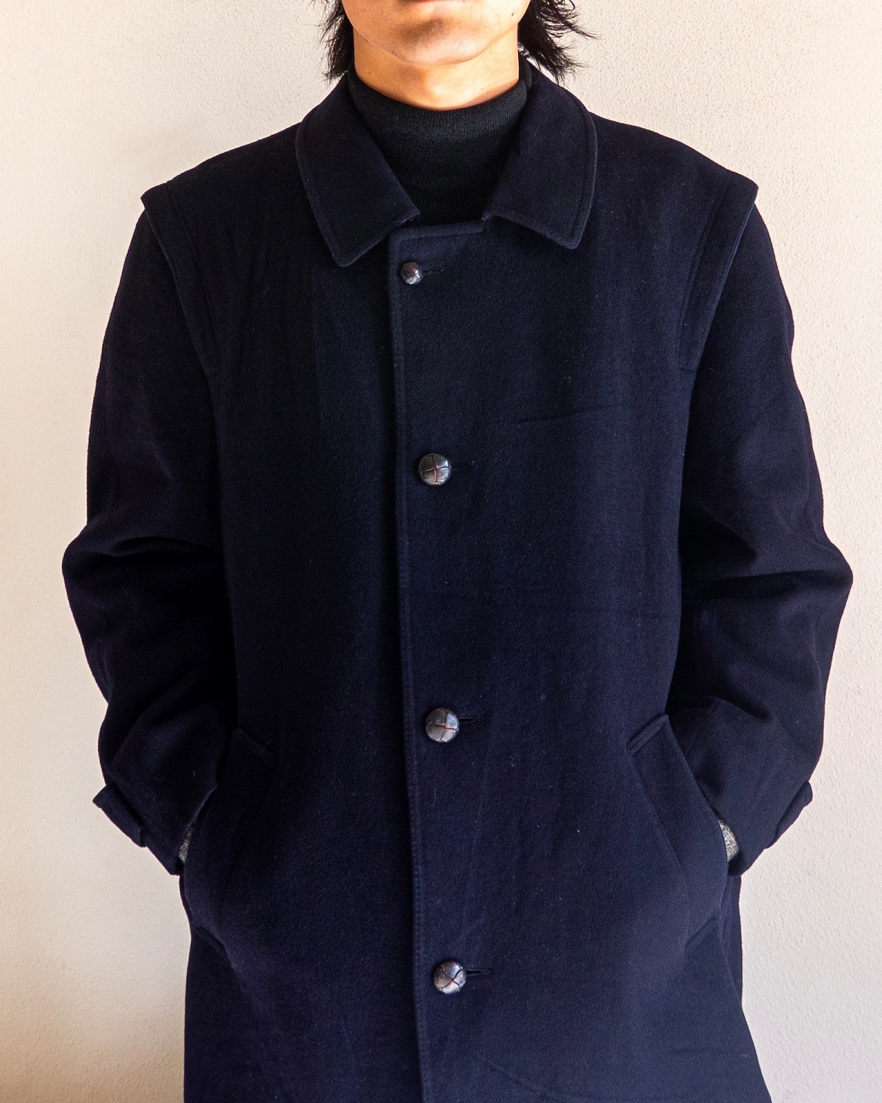 オーバーコートらしくガバッと大ぶりに羽織ることができる希少なゴールデンサイズです。身幅、アームホール共に広めに取られておりますので、中にたくさん着込んでいただくことも可能です。