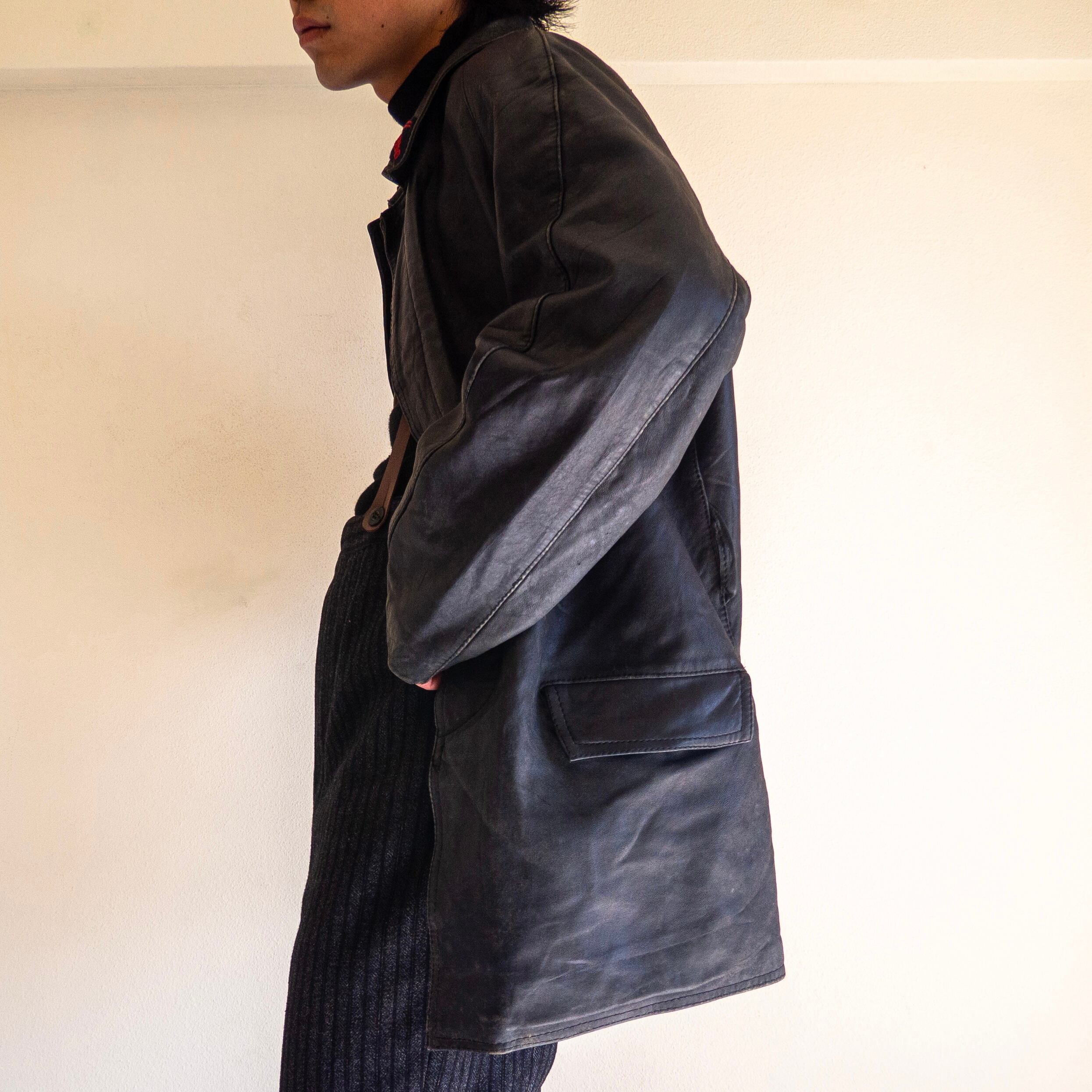 フランスのテーラリング特有の立体的なパターン構造に肩周りは身体の可動域を狭めることのないラグラン仕様の袖付け。程よく使い込まれたシープスキンの柔らかく身体に沿うようなフィッティングも相まり、デイリーユースにはうってつけのストレスフリーな着心地。