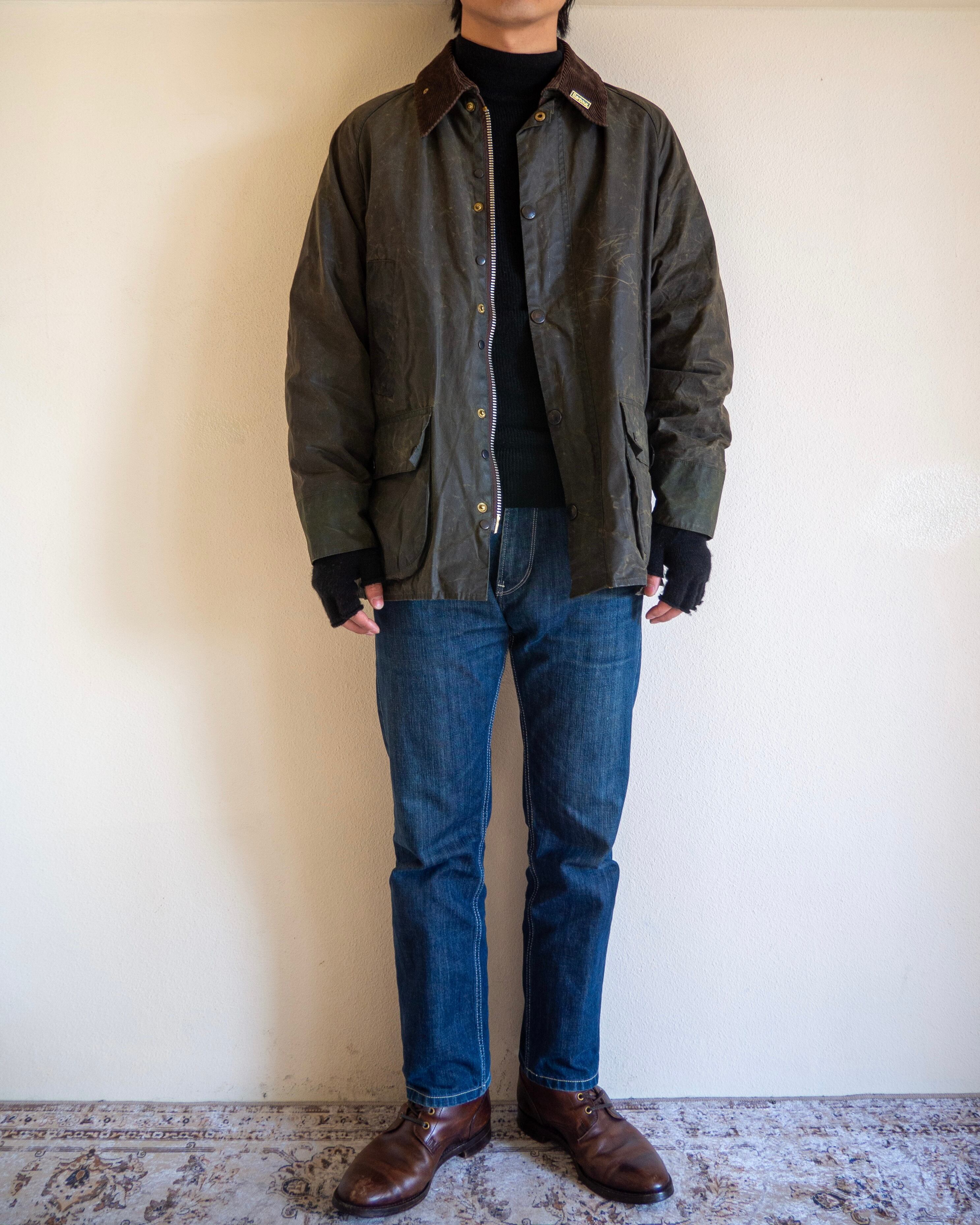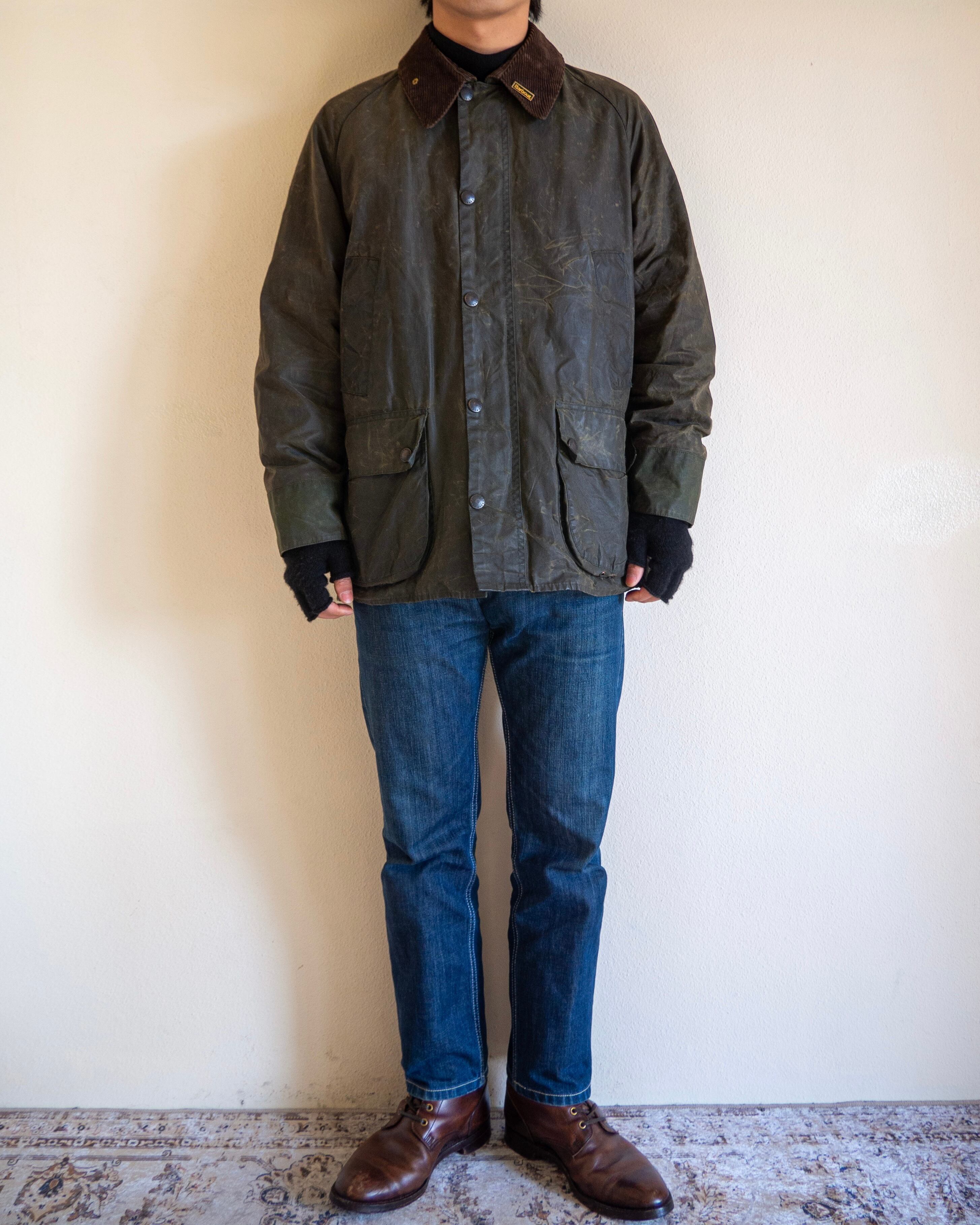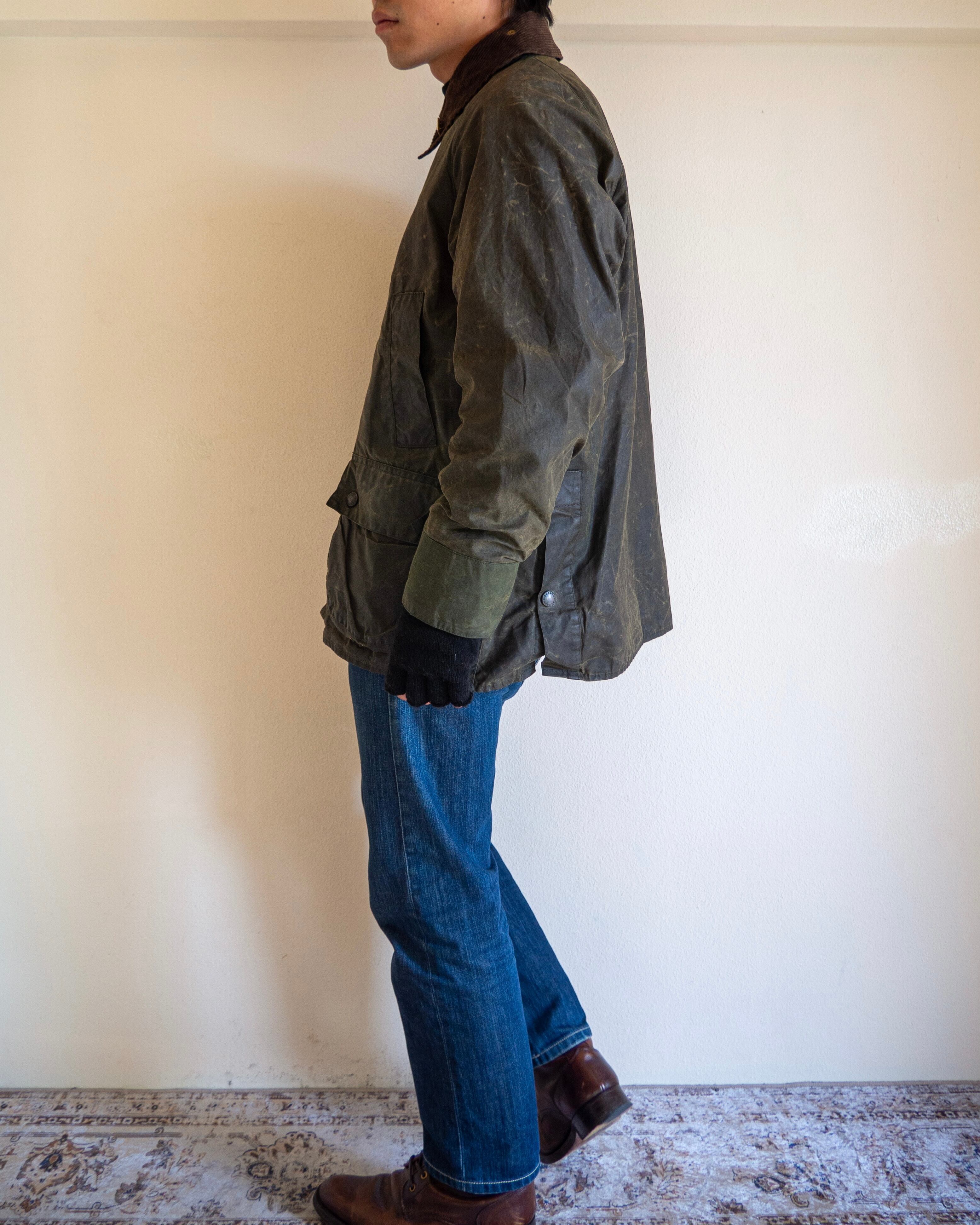 ヴィンテージBarbourならではの、経年変化により微細な皺の入った生地は現行品では味わうことの出来ない迫力を感じさせるどこか荘厳な雰囲気を纏っております。