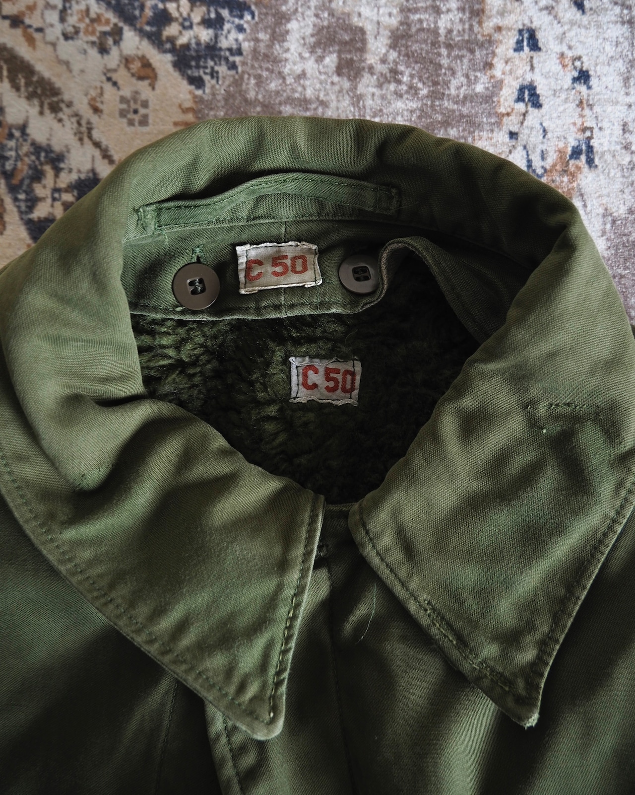 しかしM59に関しましてはライナー自体も素晴らしく、ボア側、キルティング側の面両にループ留めボタンが付くリバーシブル設計。キルティングの面はコットンポリ素材特有のサラッとした表情をしていて素敵ですし、毛足が長く取られたボア面はこれだけで独立した服として成立してしまうほど存在感があります。
