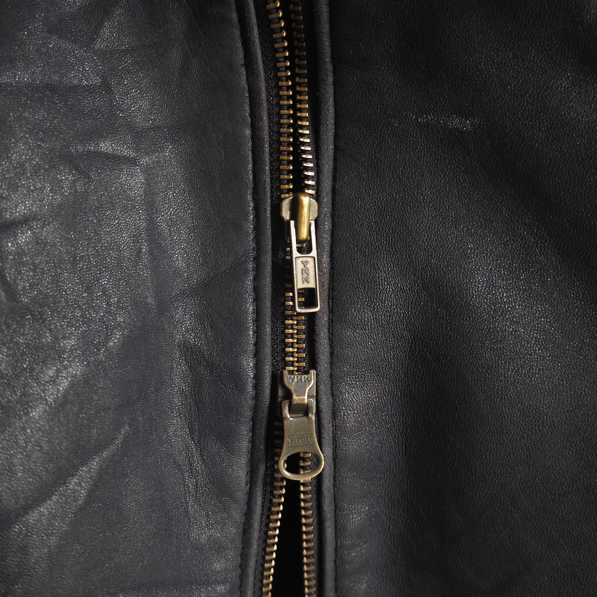ヴィンテージレザージャケットに特有の遣れが僅かに散見されるものの、状態は概ね良好。これから着用していくに従って体に馴染んでゆく上質なレザー生地ならではの経年変化も存分にお楽しみいただけます。