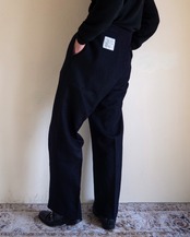 “ Blue Serge ” の名を冠する、深みの強いロイヤルネイビーカラーに縮絨加工が施されたぎっしりと目の詰まった重量感のあるウール素材が特徴的な一本。