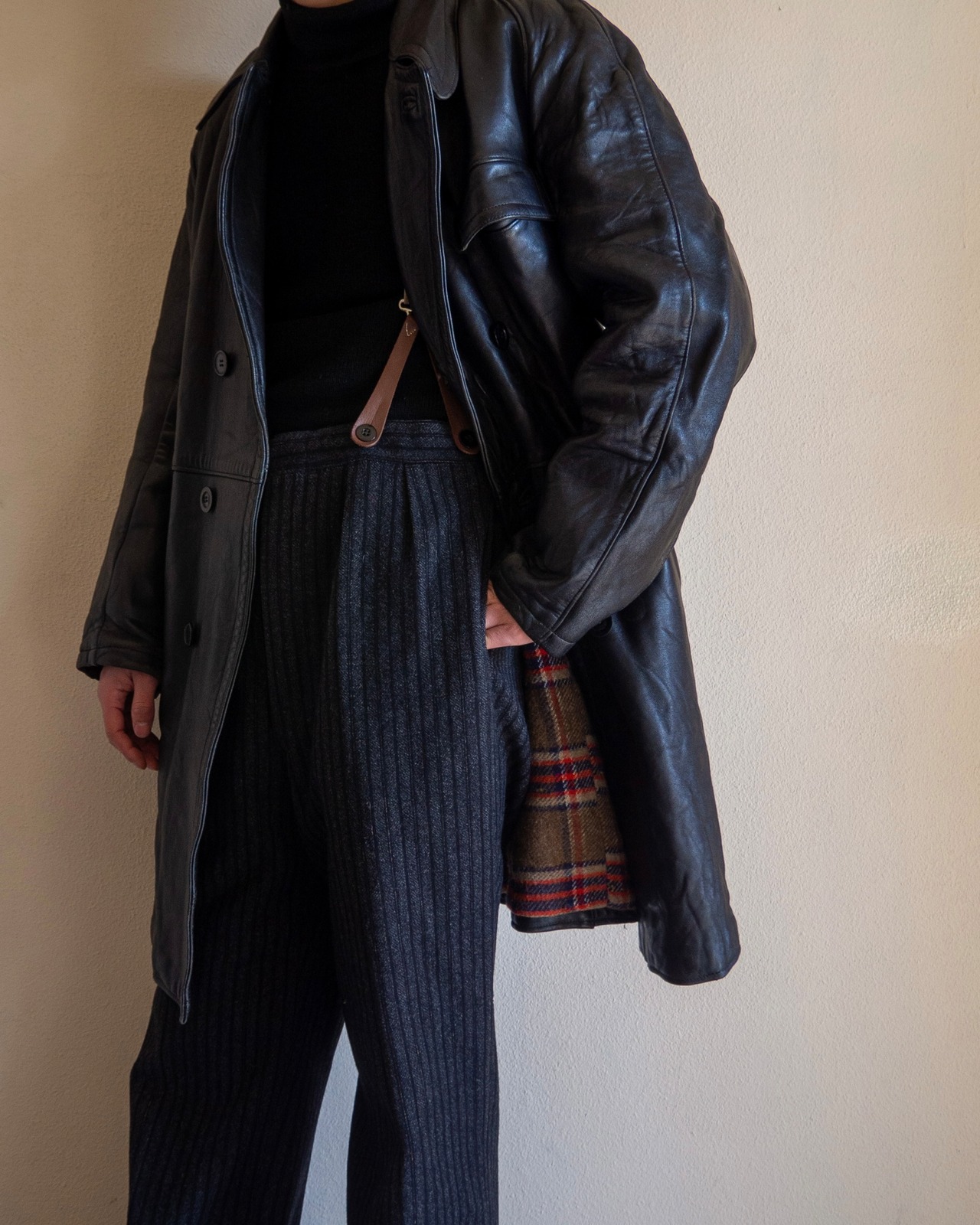 兎にも角にも、シープスキンの柔らかなフィッティングにラグランの袖付けが実現する“落ち感”が素晴らしく、立ち現れるシルエットは重厚かつエレガント。これぞ機能美。フランスの装飾デザイン文化の粋を実感させられます。