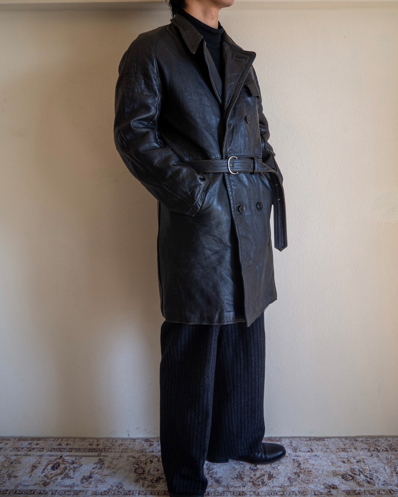 1980年製、フランス国営電力会社(=Electricite De France)に支給されていたダブルブレスト仕様のレザーハーフコートのご紹介です。