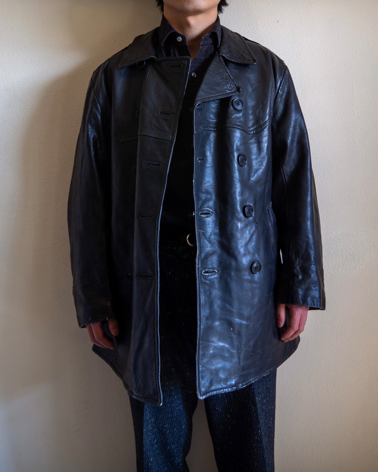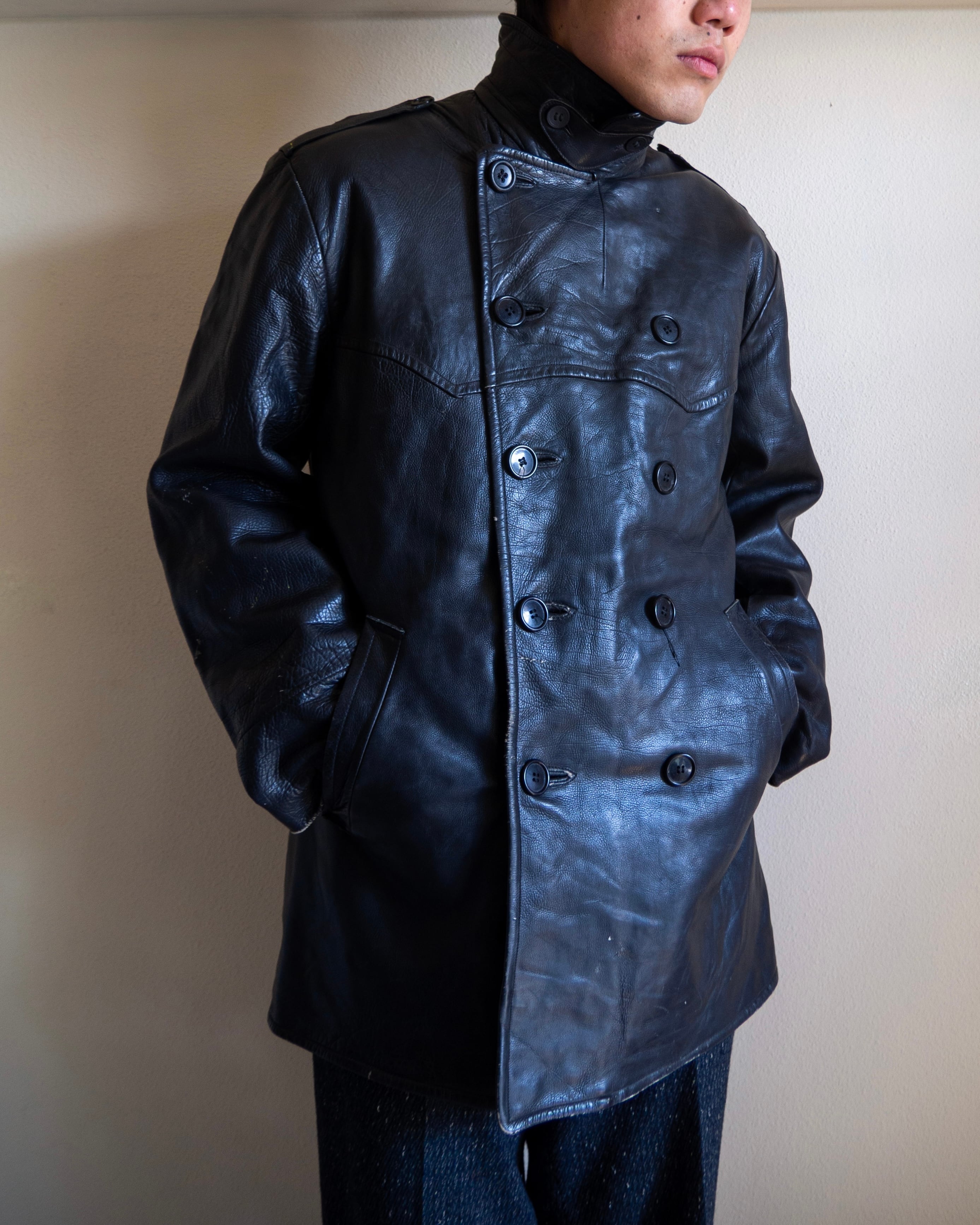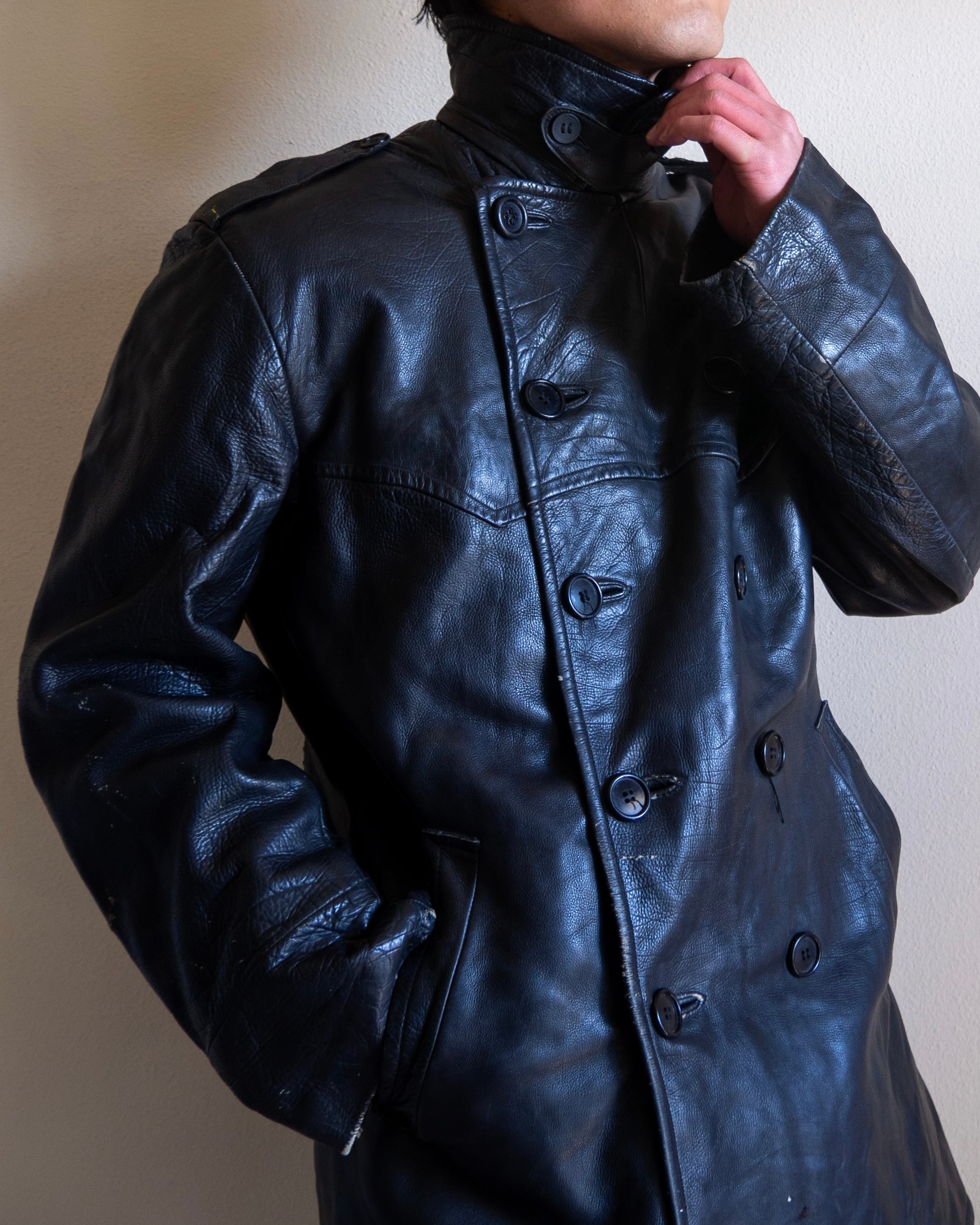 WWⅡ Swedish Army Double Breasted Leather Car Coat
