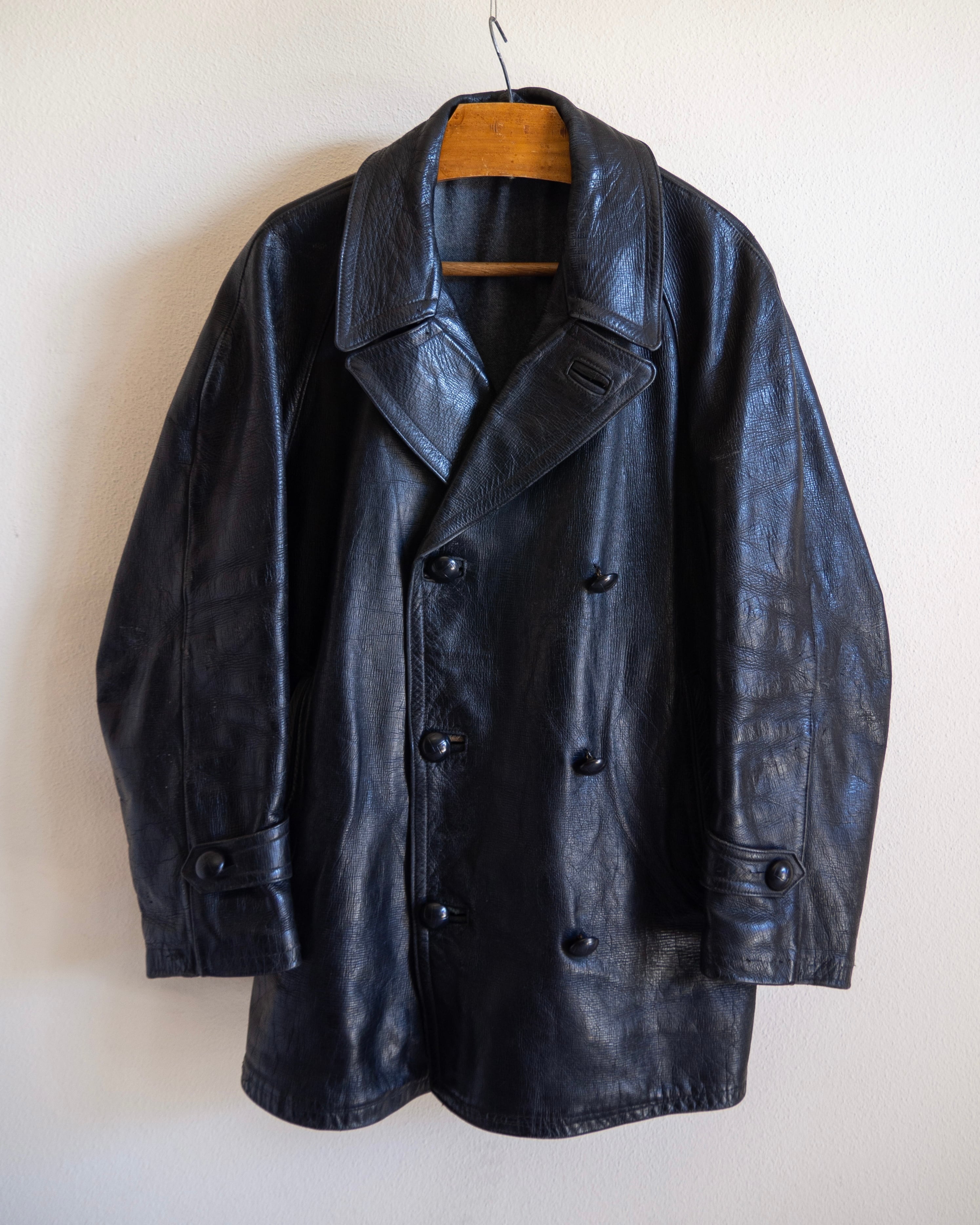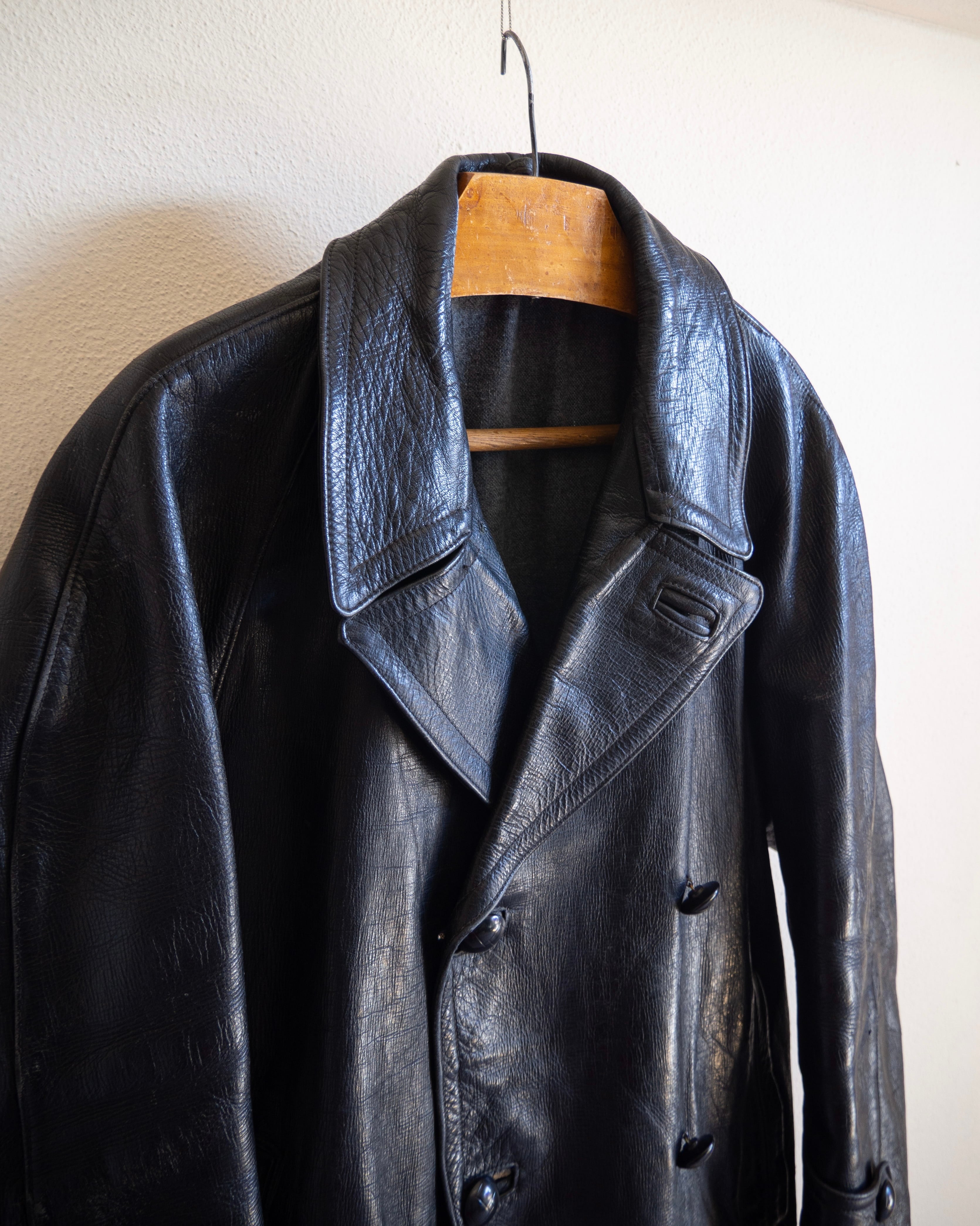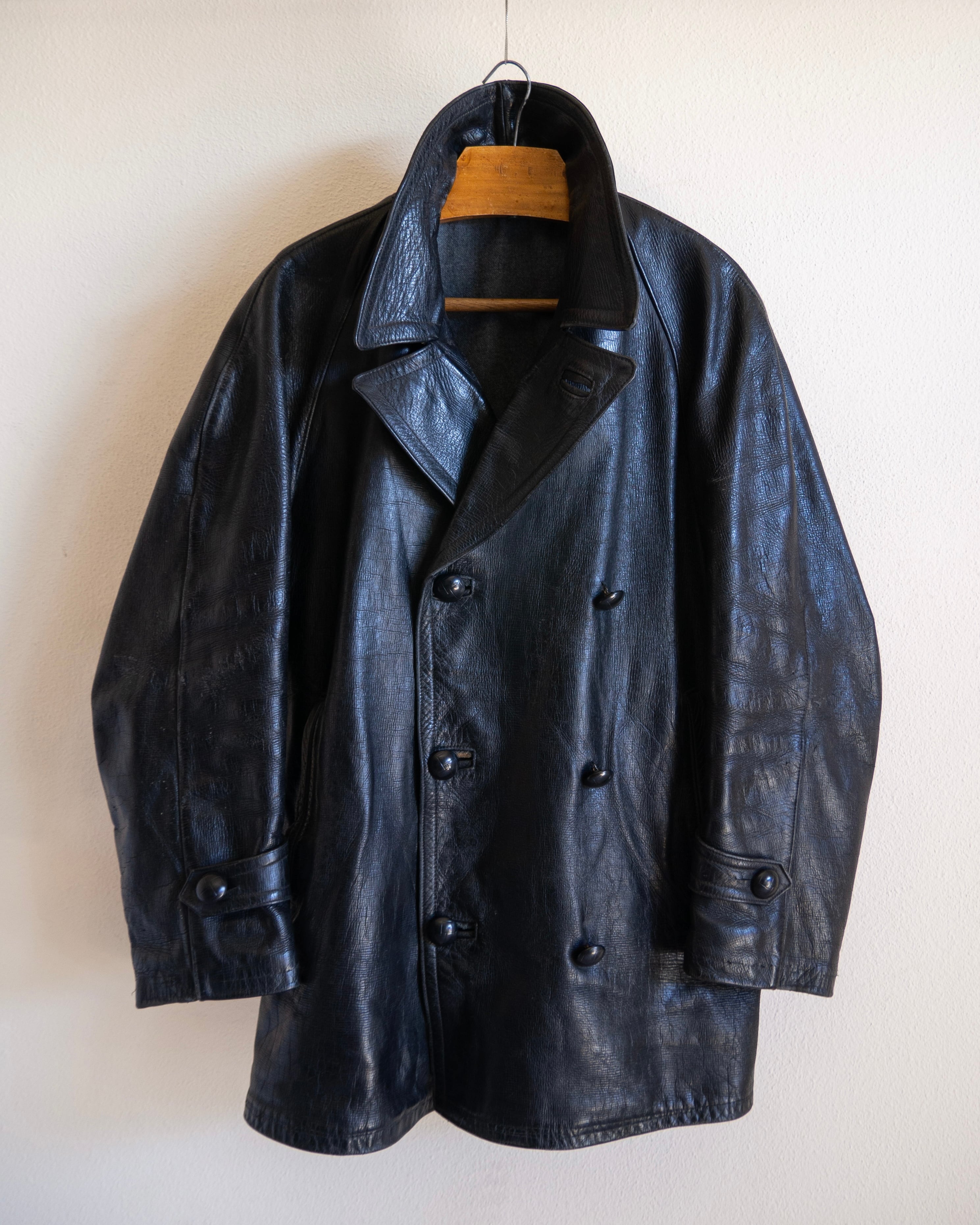 1950年頃に着用されていたゴートスキンを使用したダブルブレスト仕様のレザーカーコートのご紹介です。