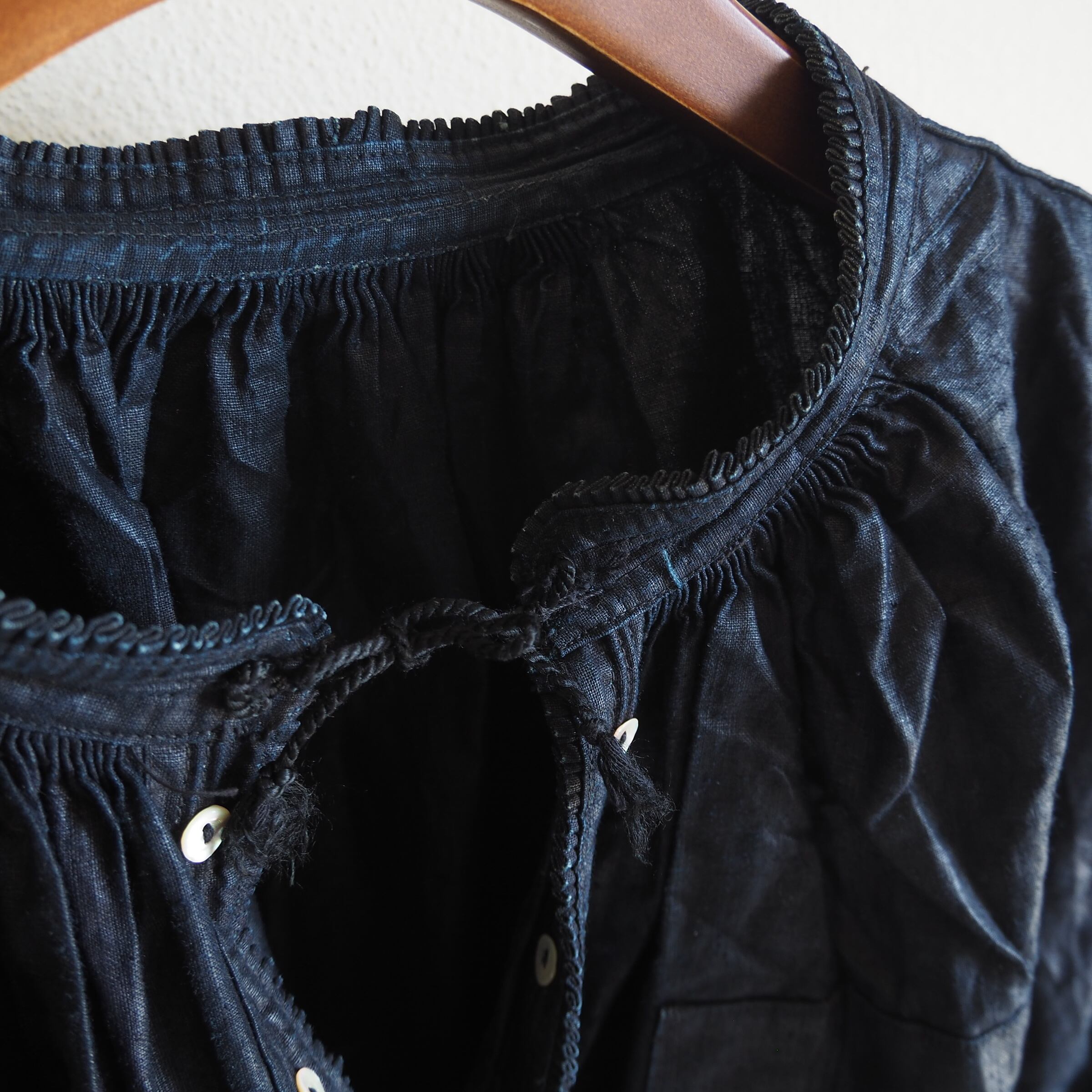 藍(インディゴ)染めが施されたこちらの1着はその防虫・防腐性の高さから、19世紀から20世紀初頭にかけて羊飼い、馬商などに従事する人々に好んで着用されていた歴史を持ちます。