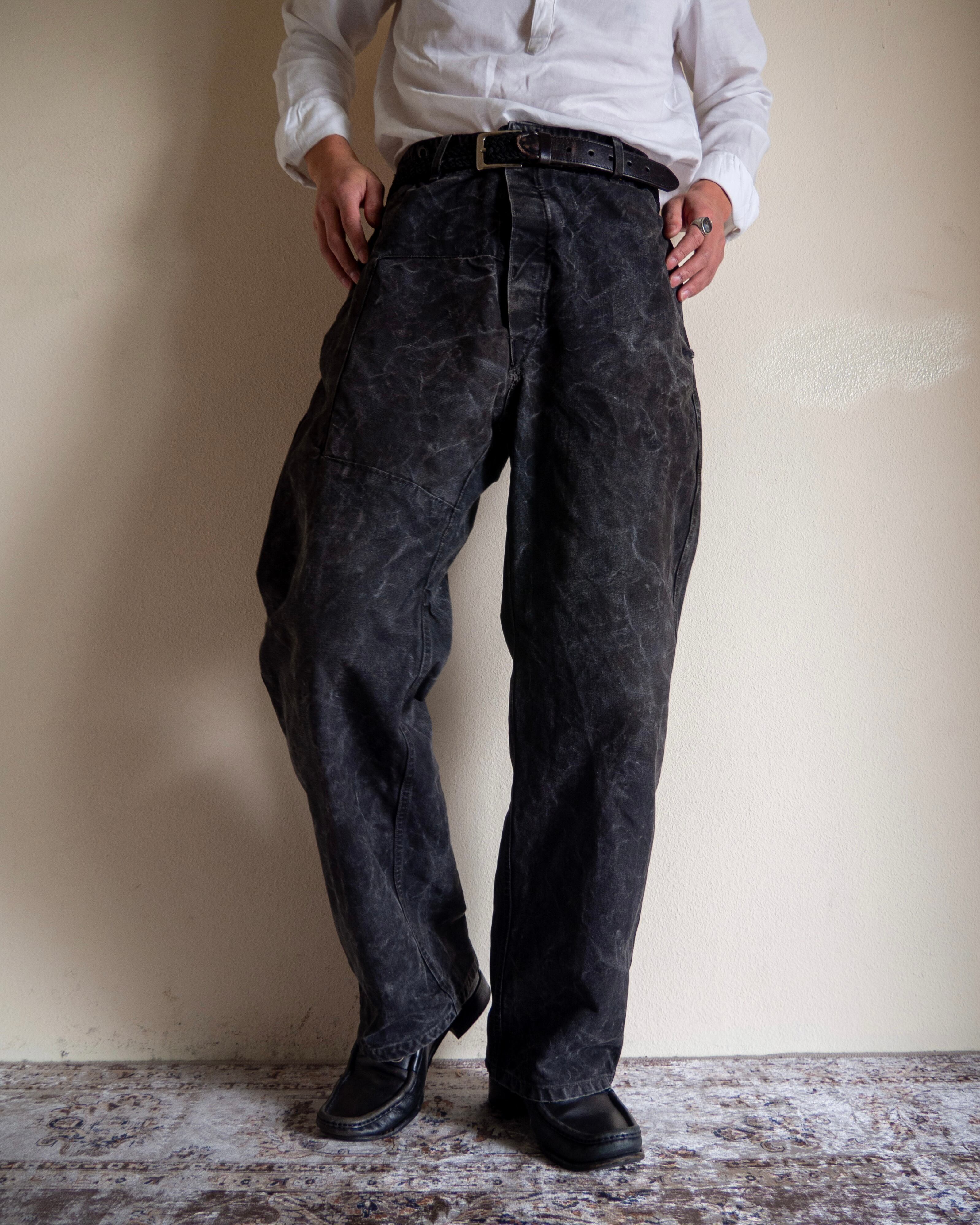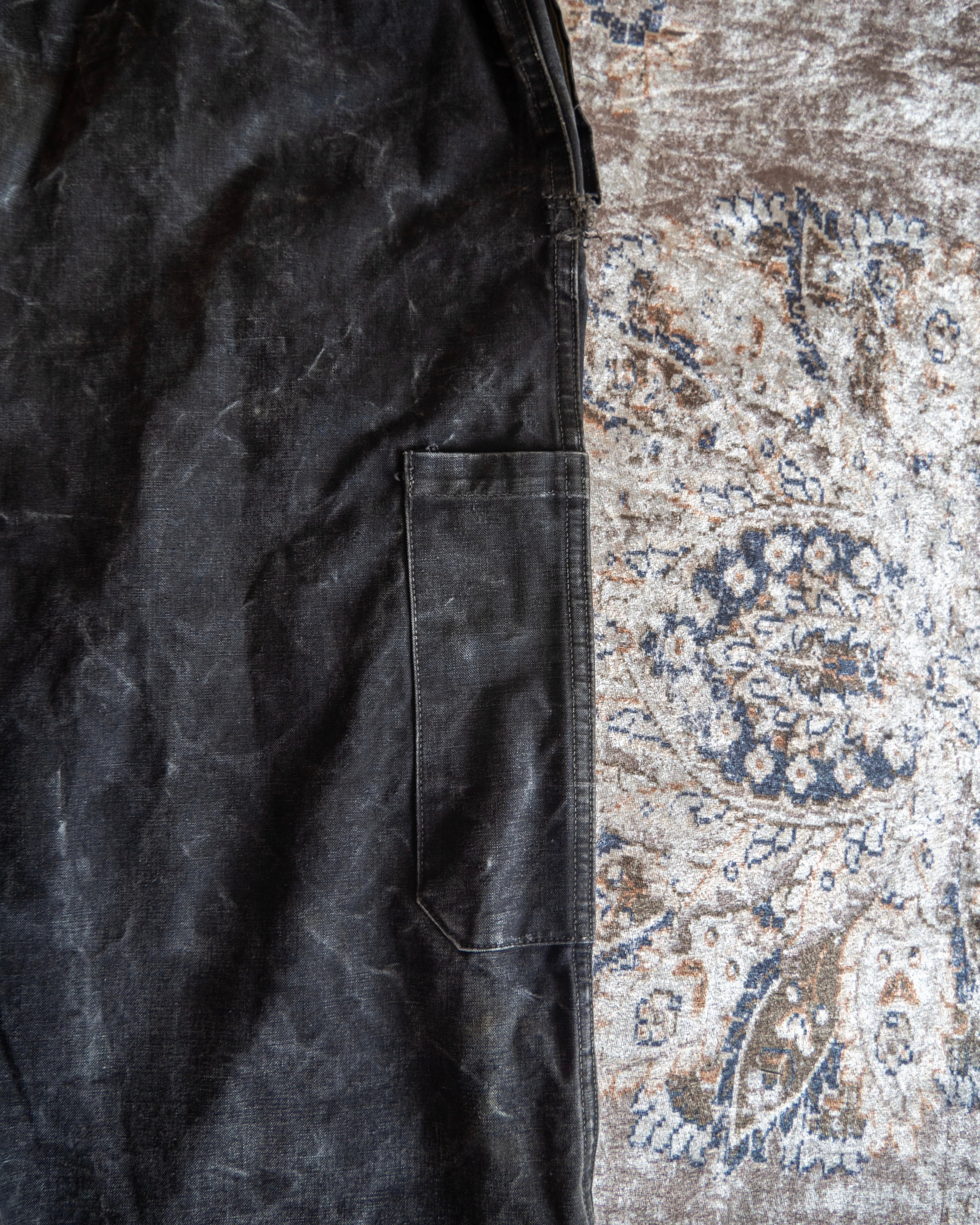 経年により墨黒色に褪色した深みのあるブラックカラーはワークウェア特有の土臭さを一切感じさせないためモードからカジュアル、様々な装いに落とし込んでいただけます。