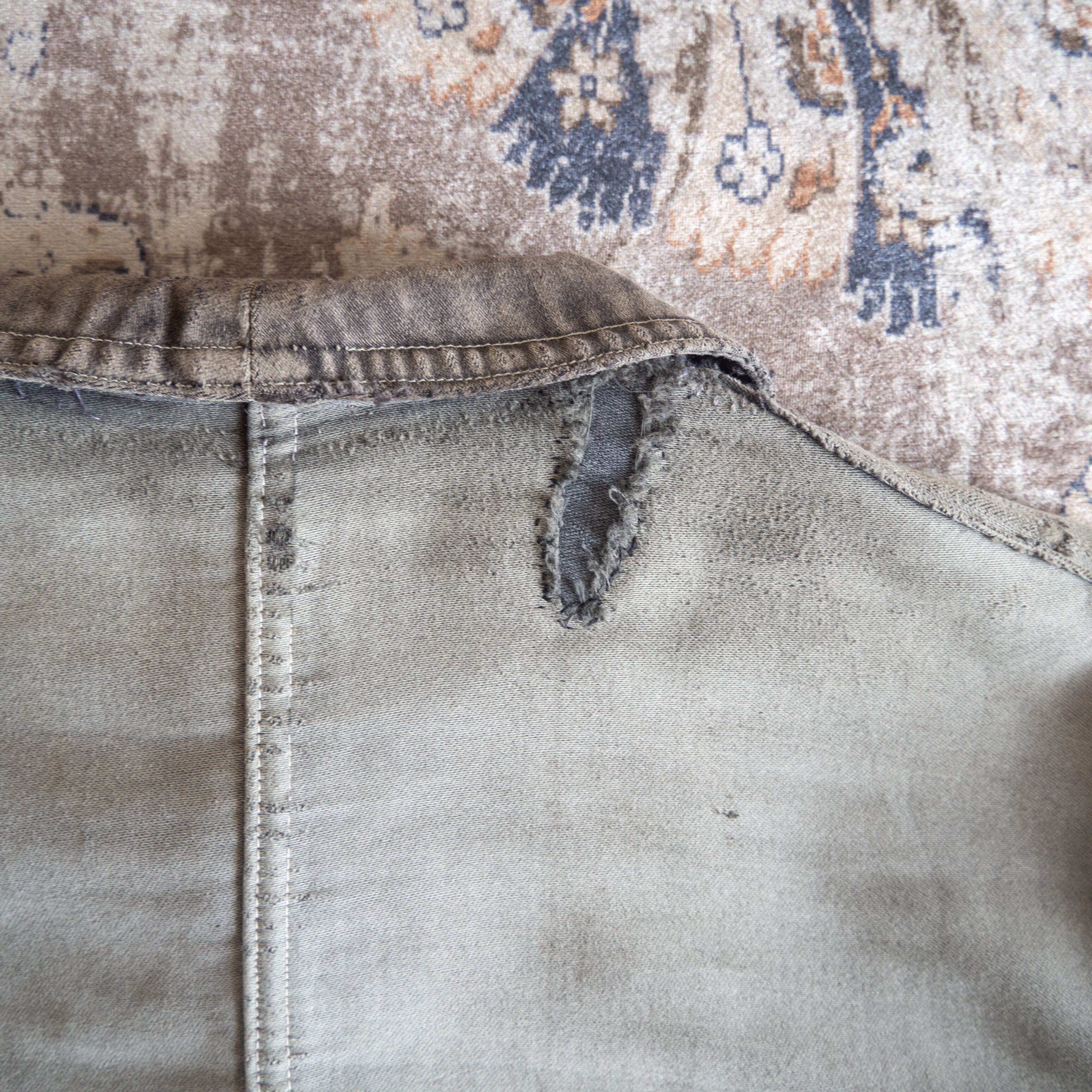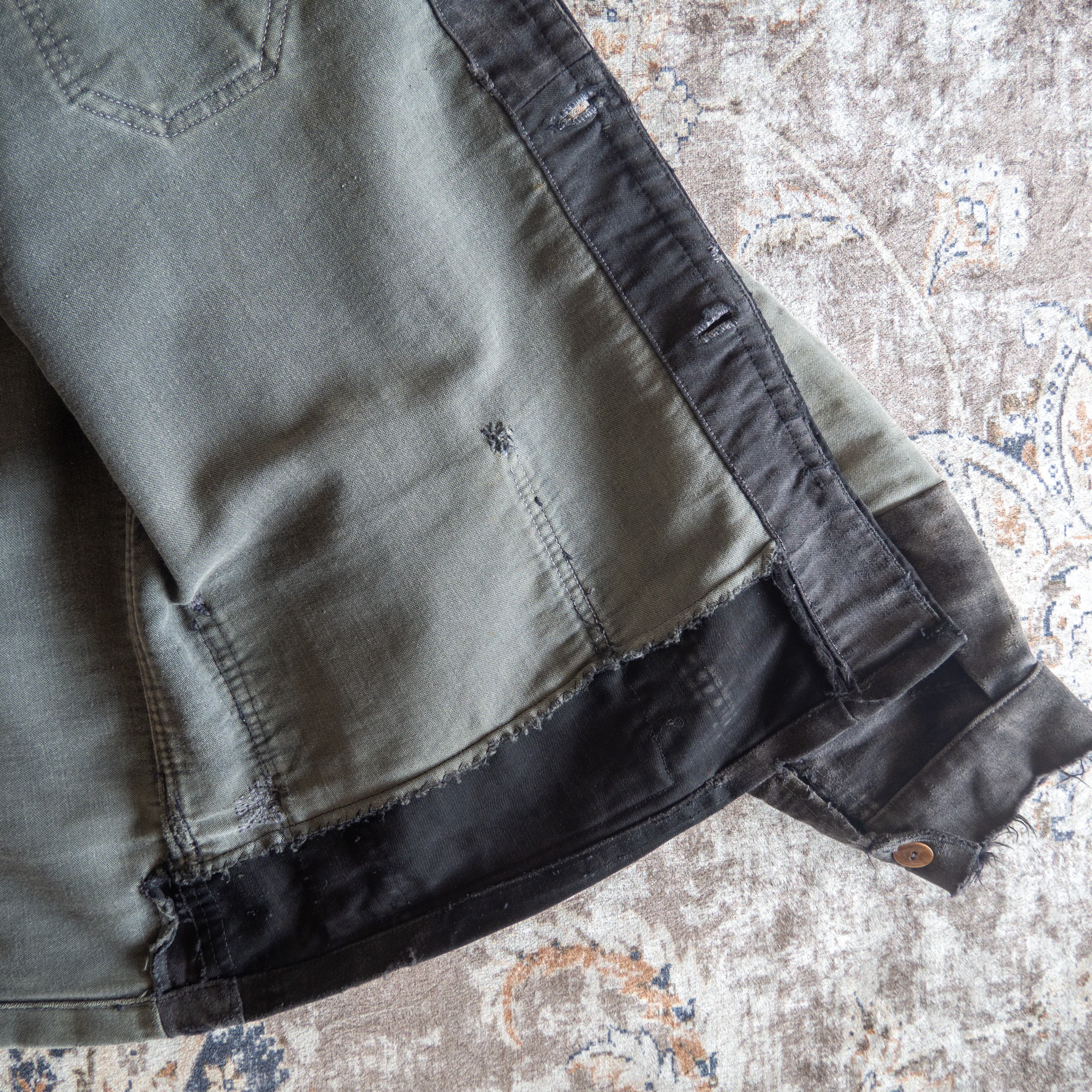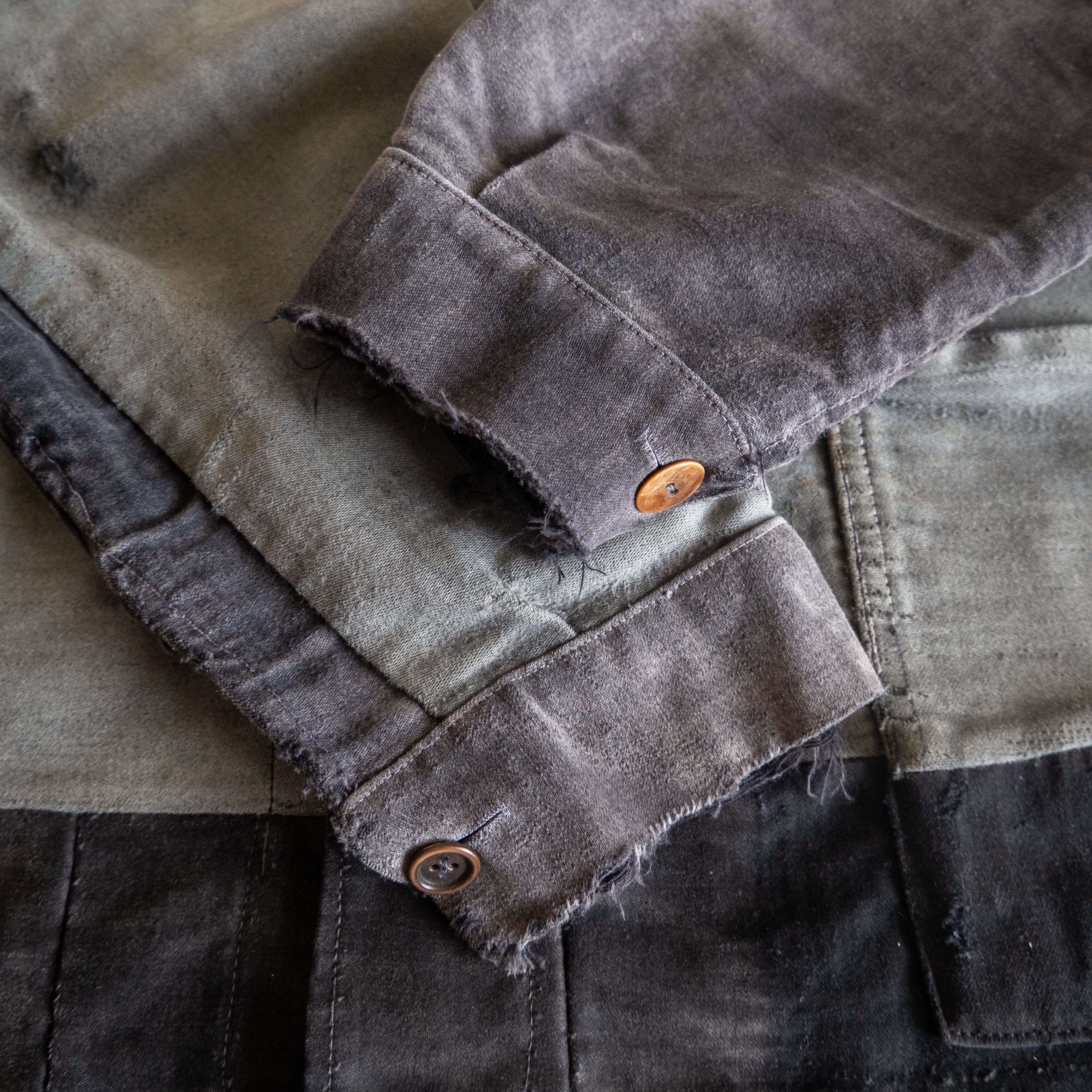 こちらはかなり使い込まれた様子のもっちり、クタっとした生地感に継ぎ接ぎのコントラストが楽しい1着。