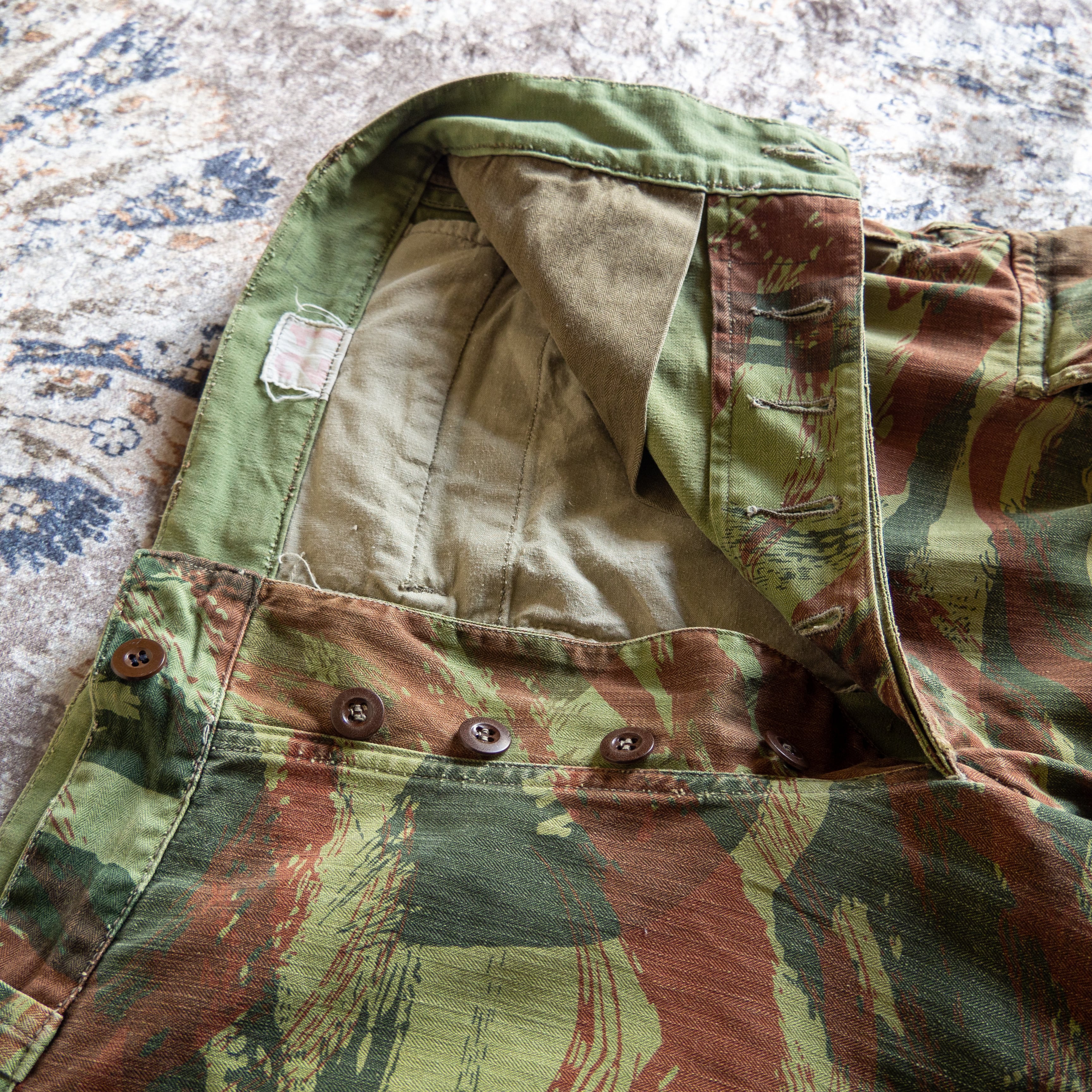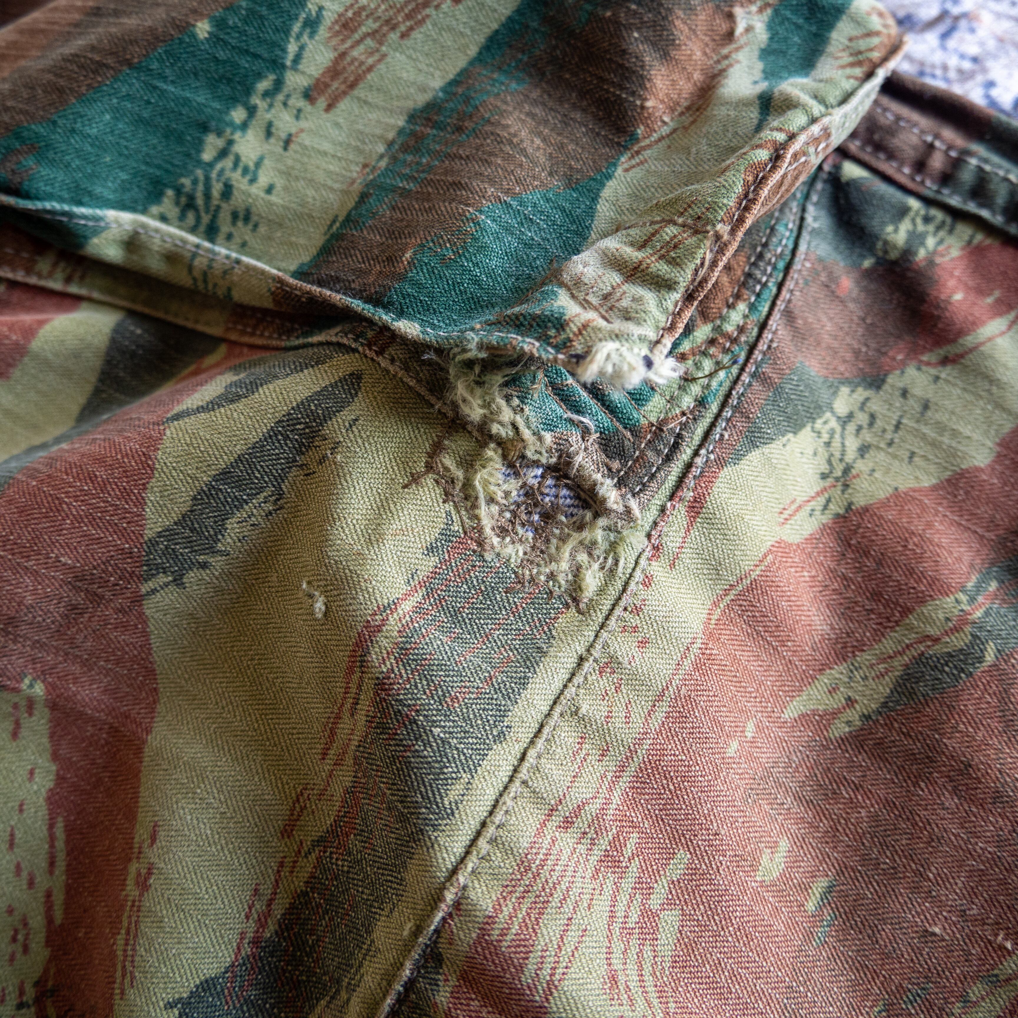プリントされた"リザードカモ"と呼ばれる独特のパターンはその後アメリカ軍にアイコニックな"タイガーストライプカモ"のモデルとなったとも言われており、各国軍カモフラージュの歴史を語る上で非常に重要なピースとなっております。