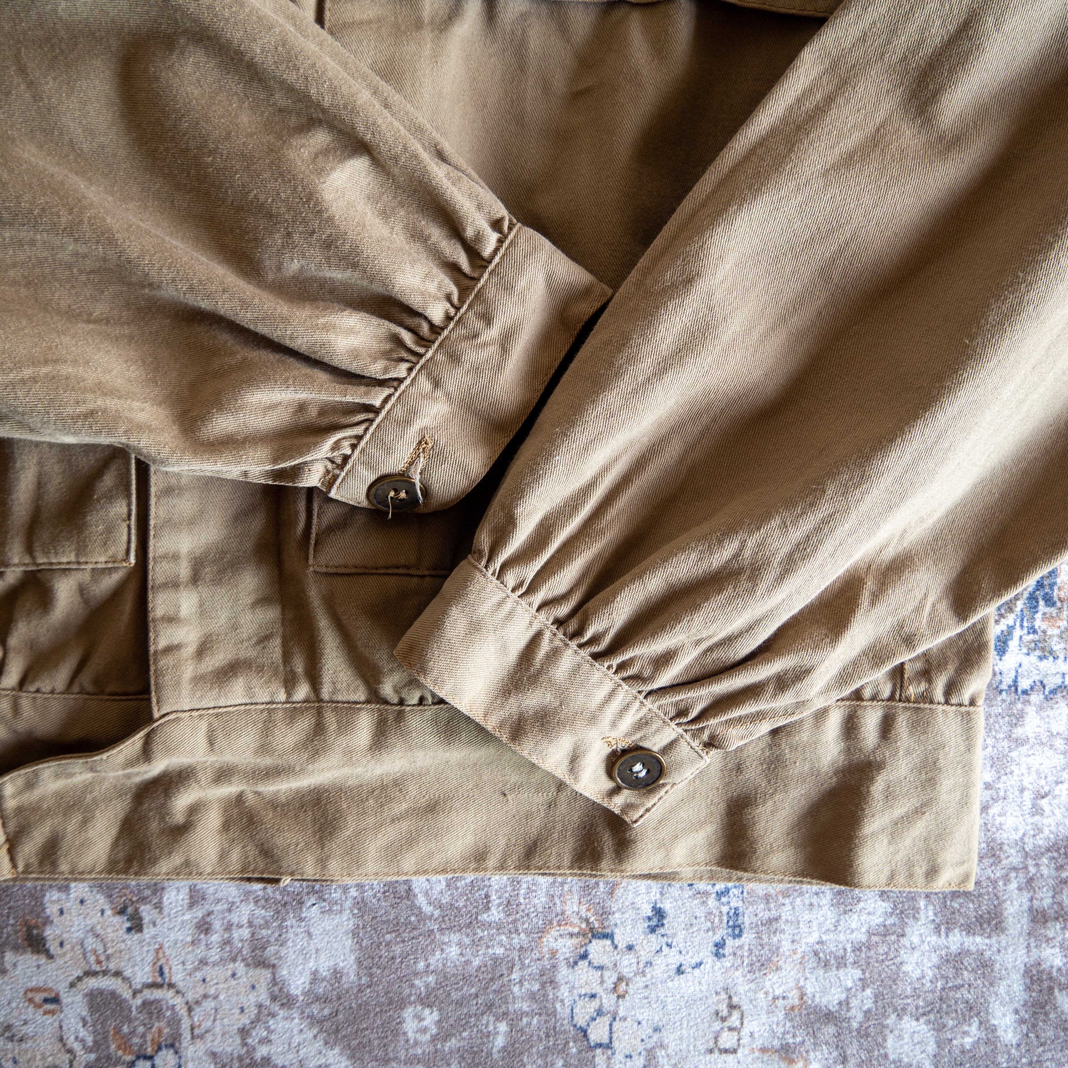 イタリア軍バトルドレスを連想させる比翼仕様のフロント合わせに裾部分のアジャスターベルト。フロントにあしらわれた大きなフラップ付きポケットがヴァルスターをイメージさせるイタリアらしいデザイン。