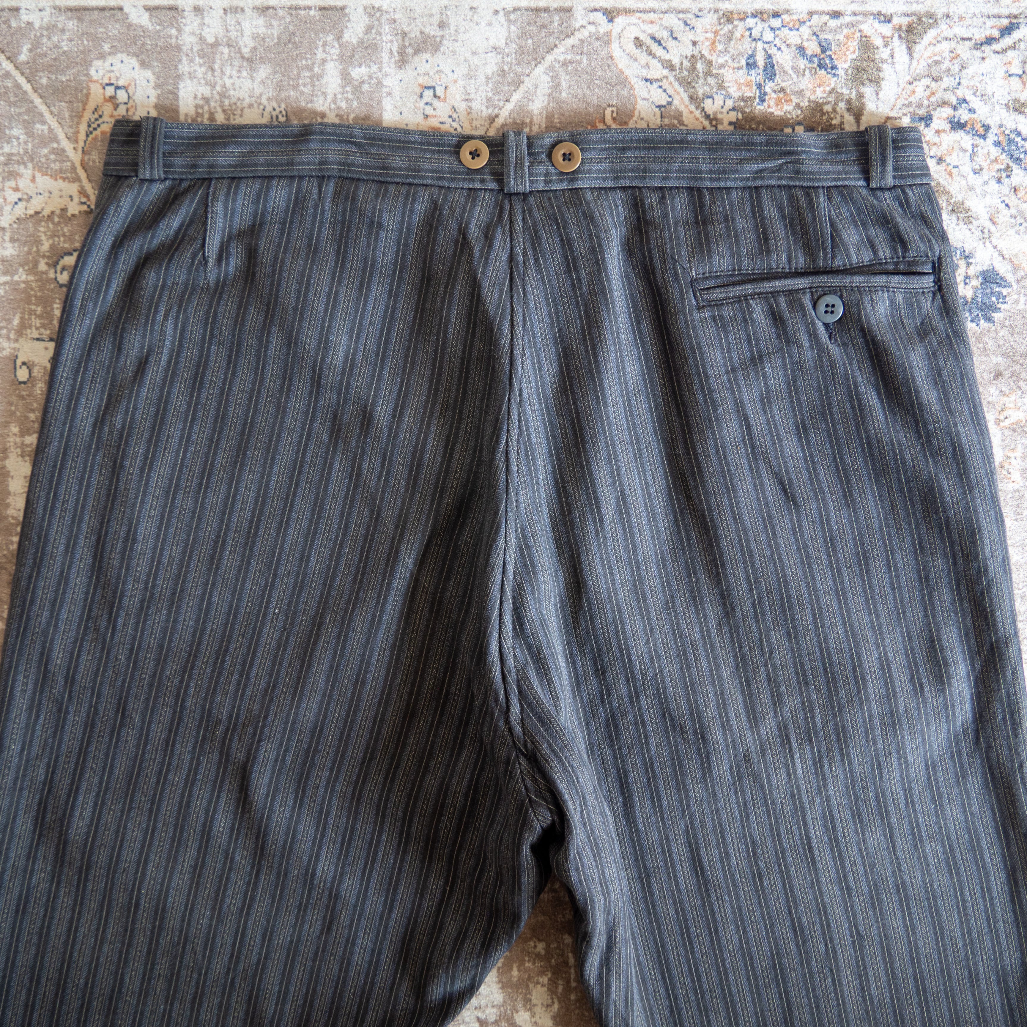 1960s French "Barbe Bleue" Cotton Chambray Striped Work Trousers
