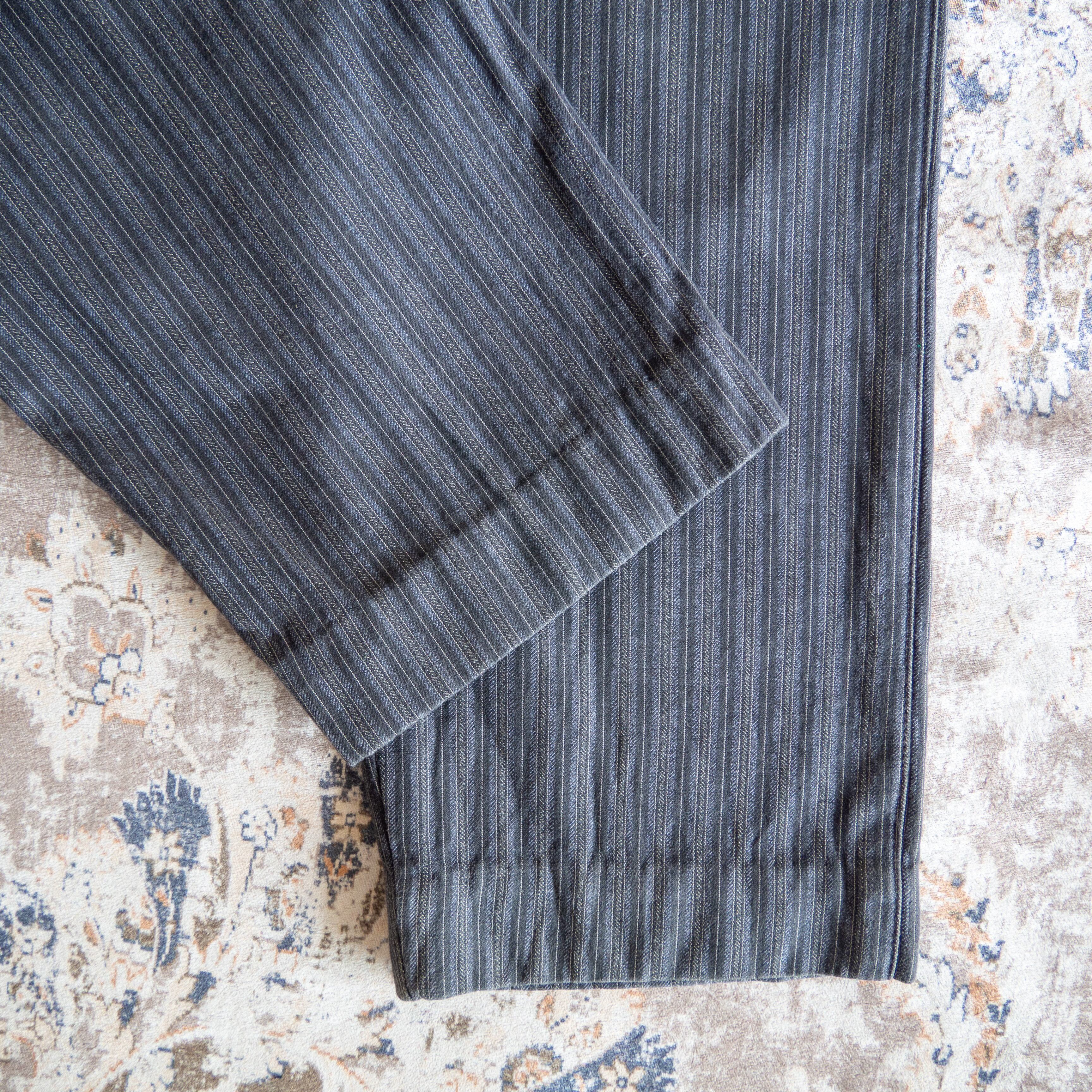 上品な印象を与えるストライプ模様にワークウェア特有のタフな生地感、時流に囚われることのないクラシカルなデザインが魅力の一本。