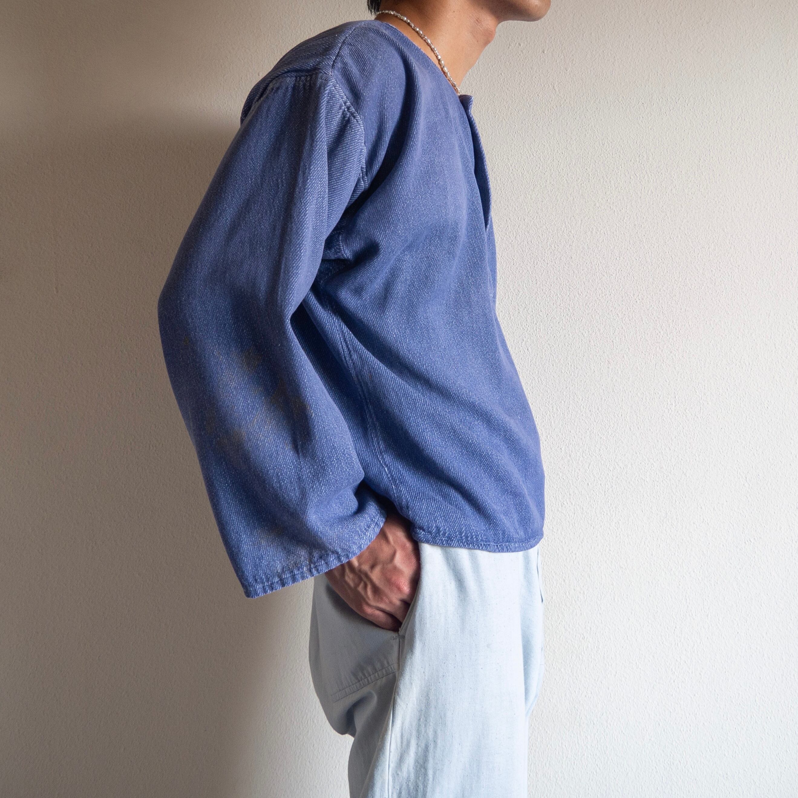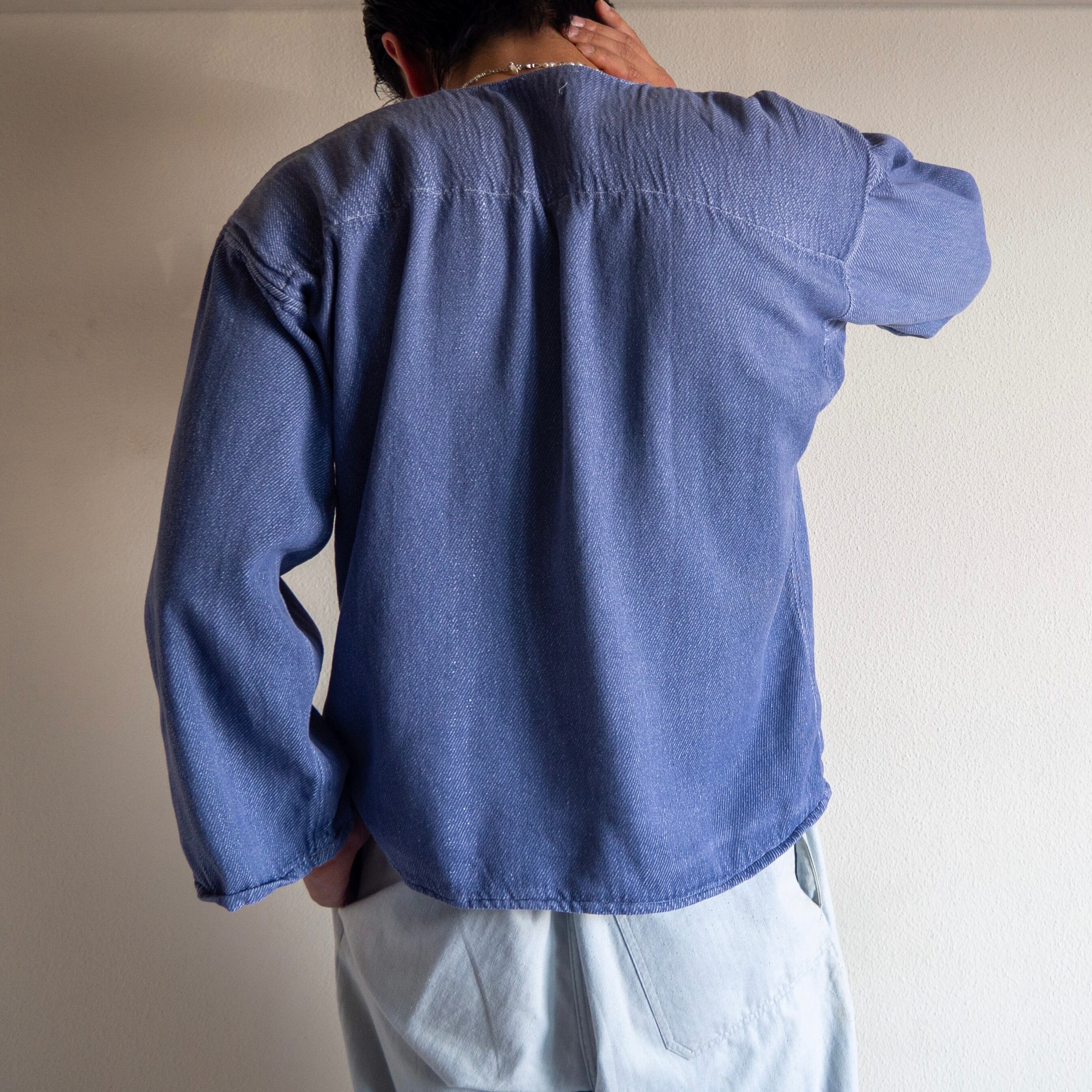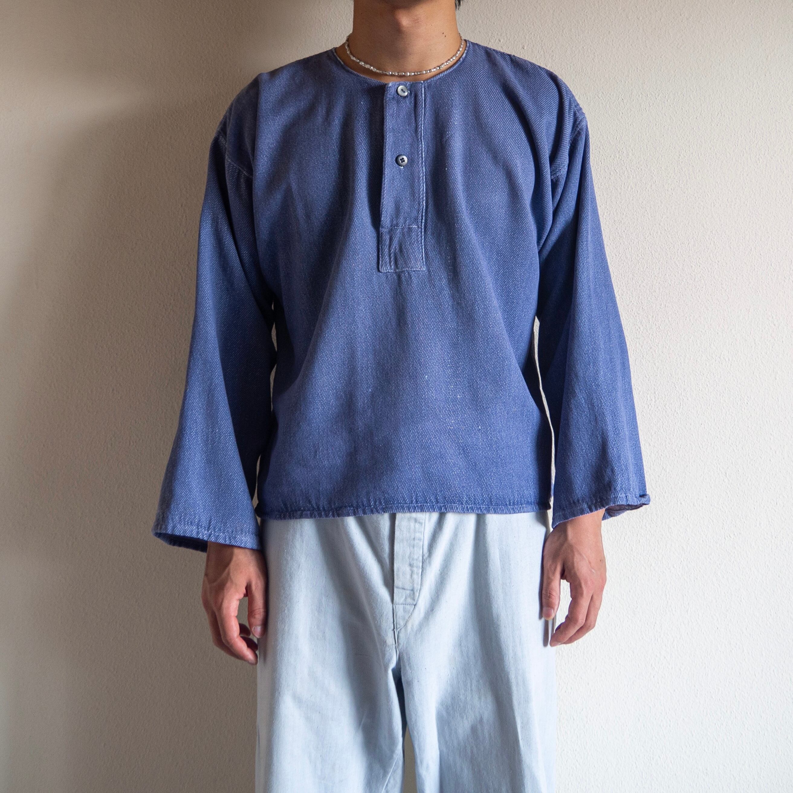1950s Blue Chambray Henry Neck Cut&Sewn