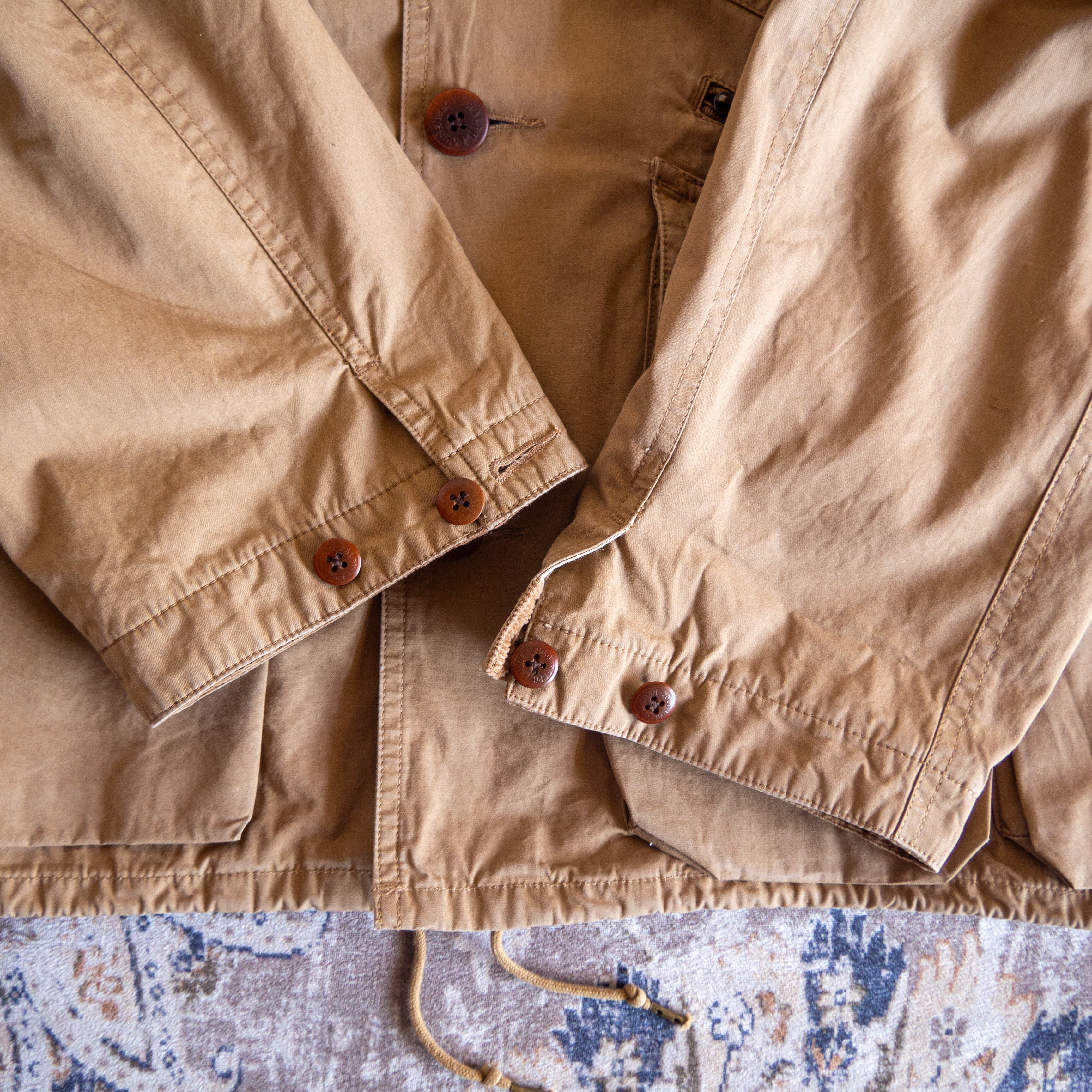 脇下のベンチレーションや裾部分のドローコード、襟袖周りに充てられたコーデュロイ生地などを見ても1940年代頃の<SQUALTEX RED HEAD> 社製フィッシングジャケットをサンプリングしていることが分かります。