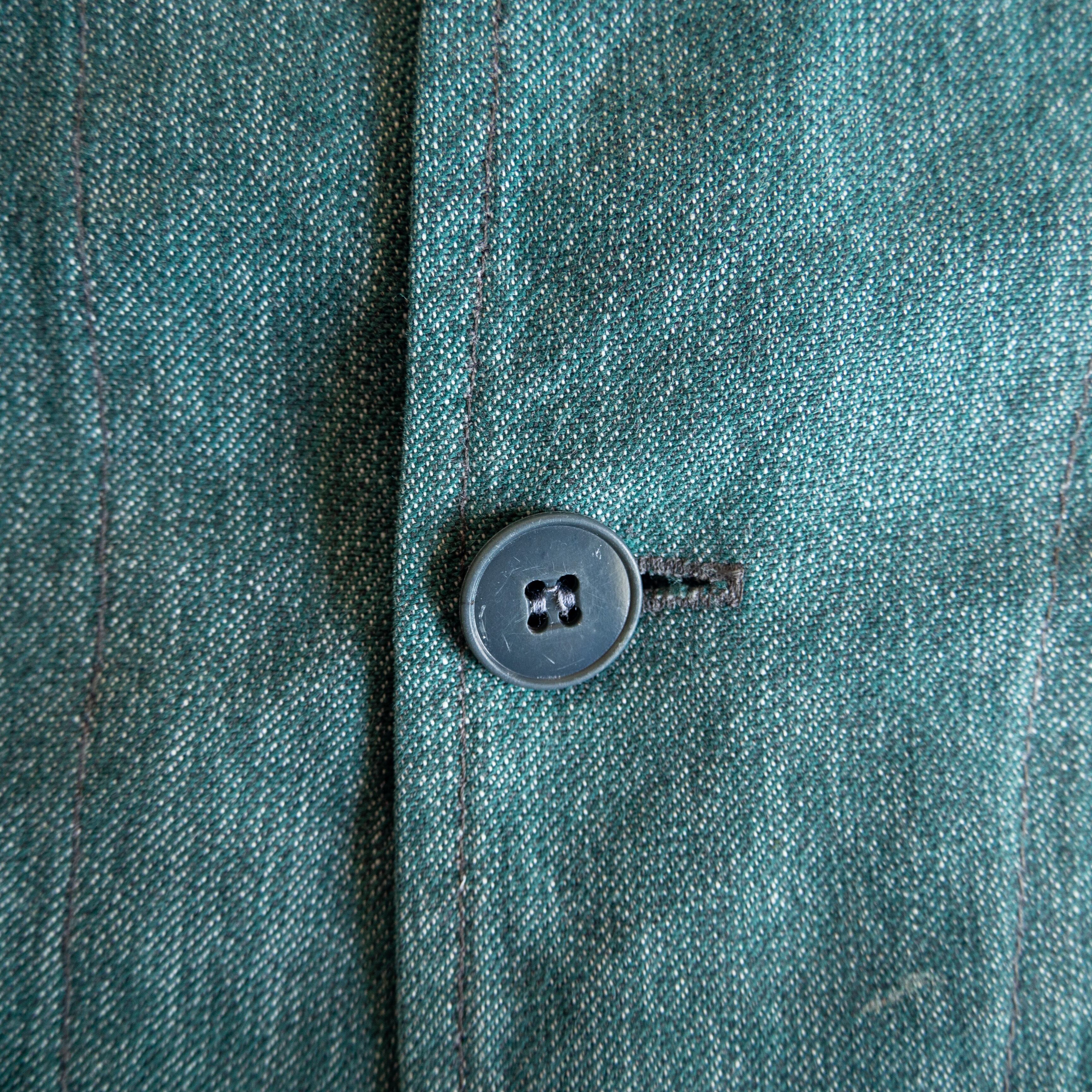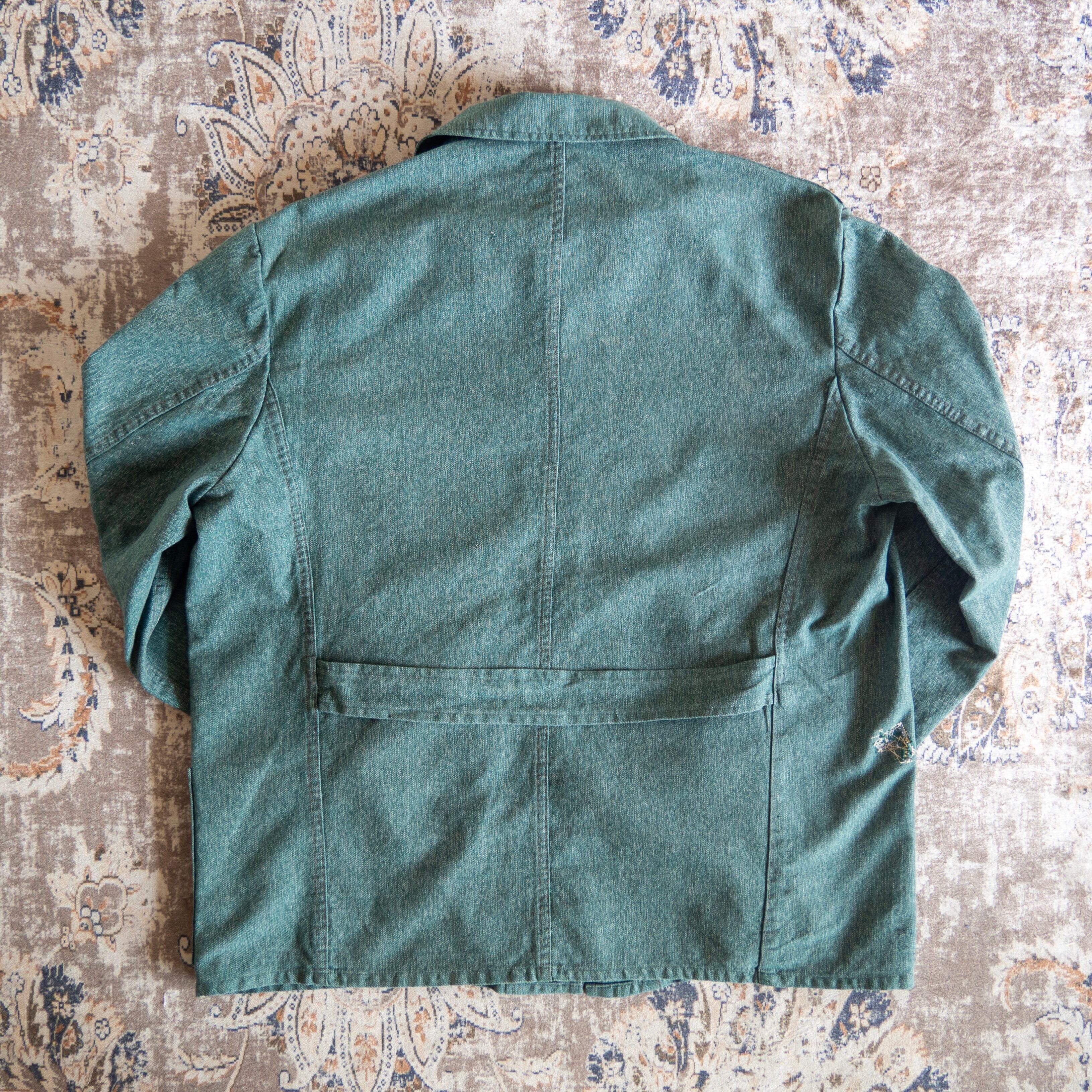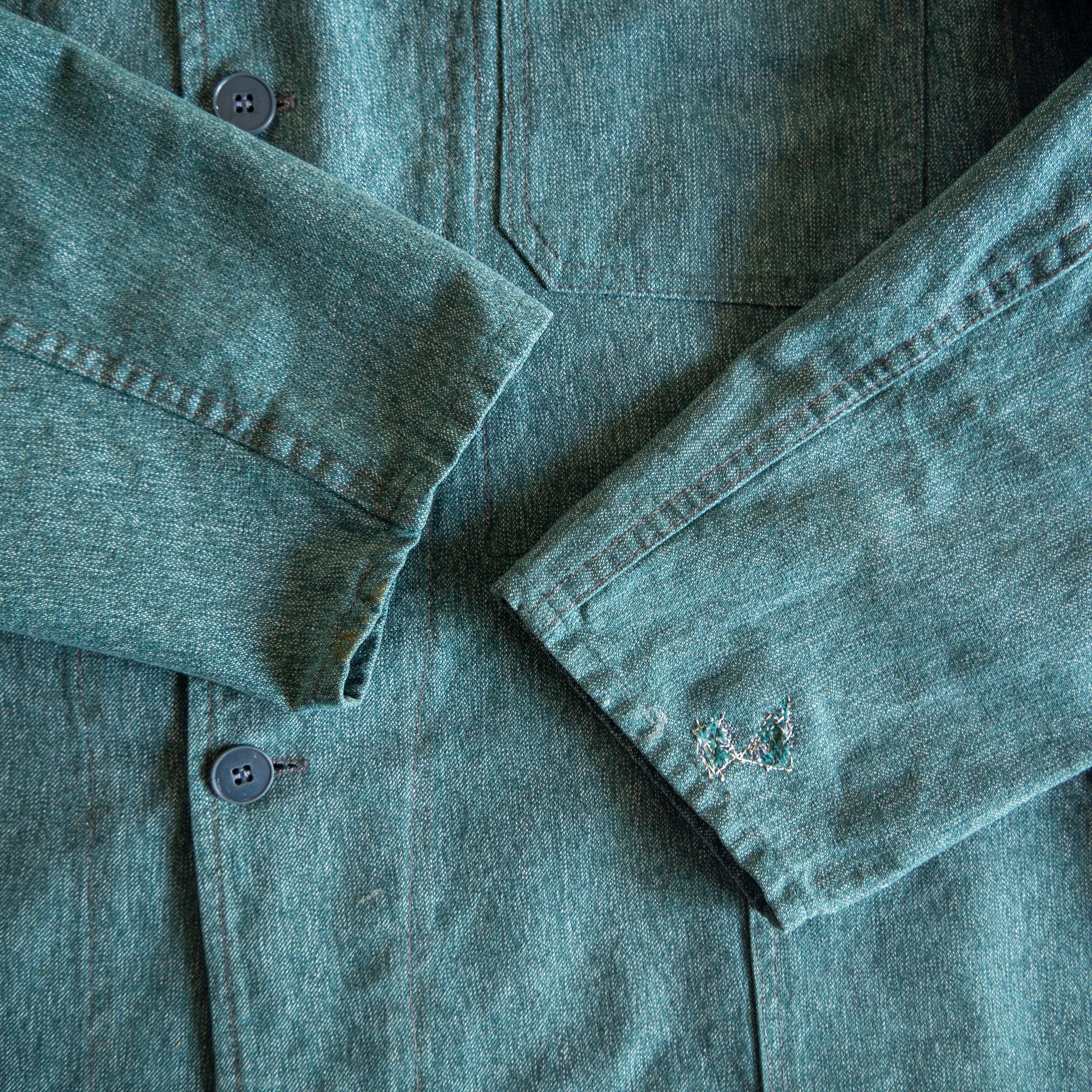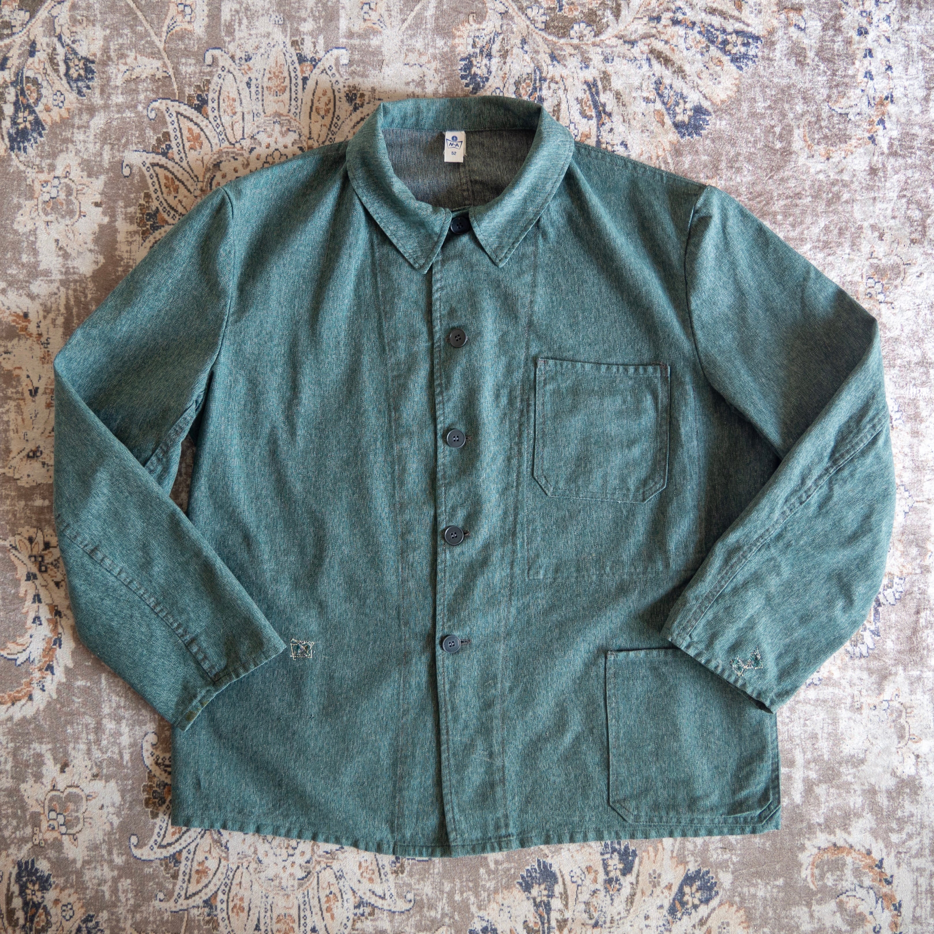 市場にも滅多に出回ることのないグリーンシャンブレー生地を使用したドイツ製ワークジャケット。柔らかな生地感と洗練されたシェイプが魅力の1着です。