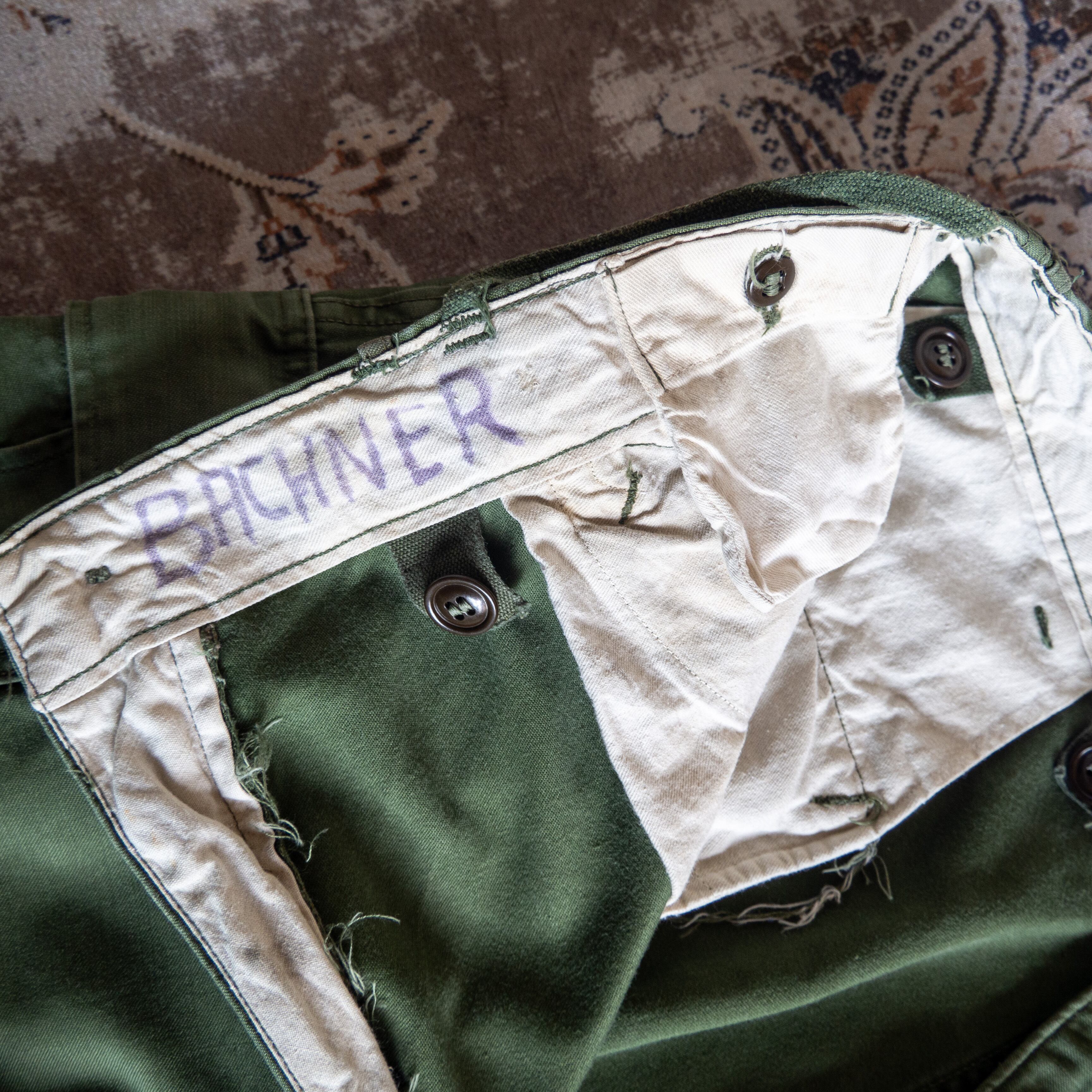 状態は程よく使用感の出たクタっとした柔らかい生地感ですが目立ったダメージのないグッドコンディションです。ウエスト内部には当時の着用者の名前が入ります。