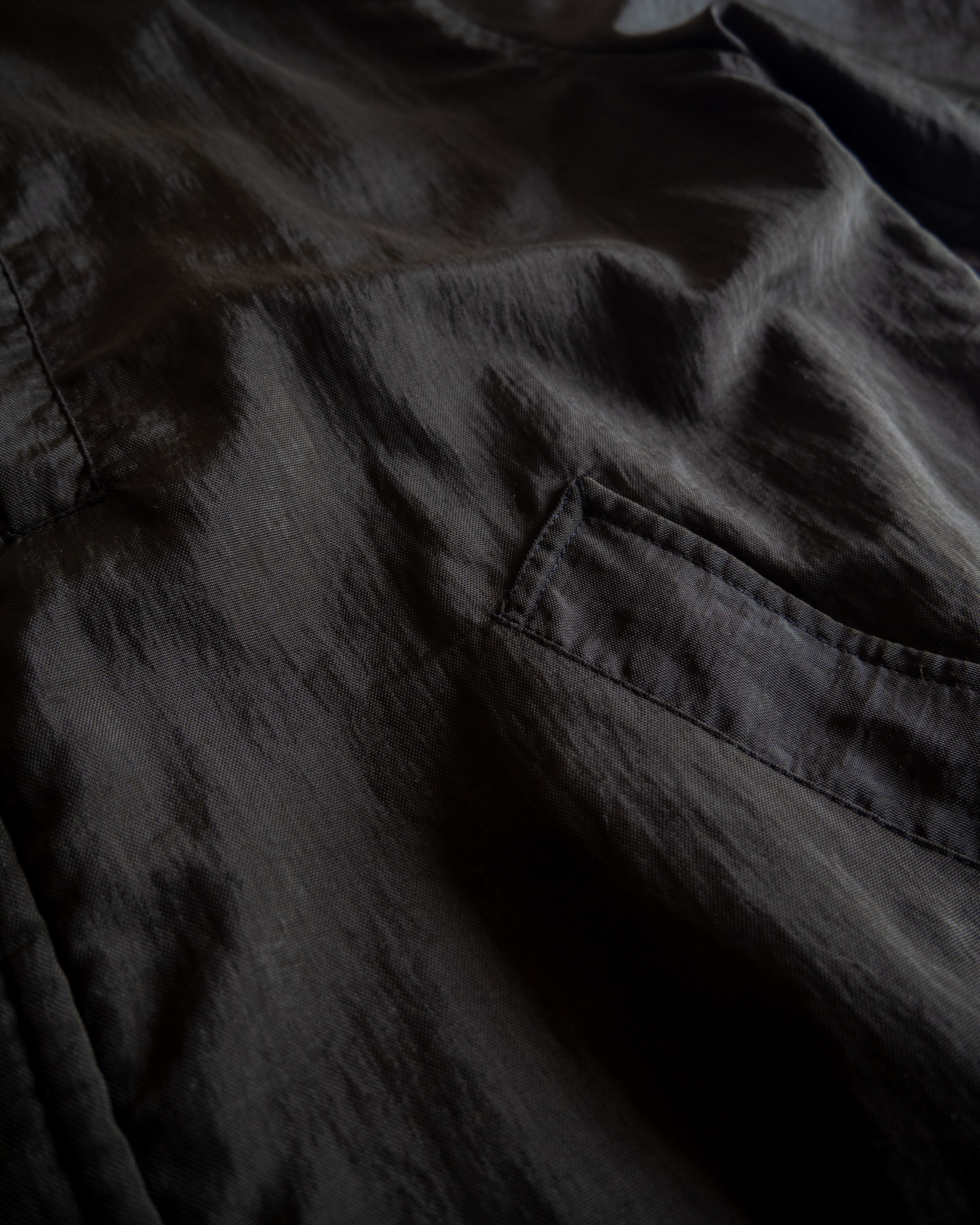 両サイドには大きめに取られたスラッシュポケット。右胸には縦にポケットが取られるアシンメトリー設計。