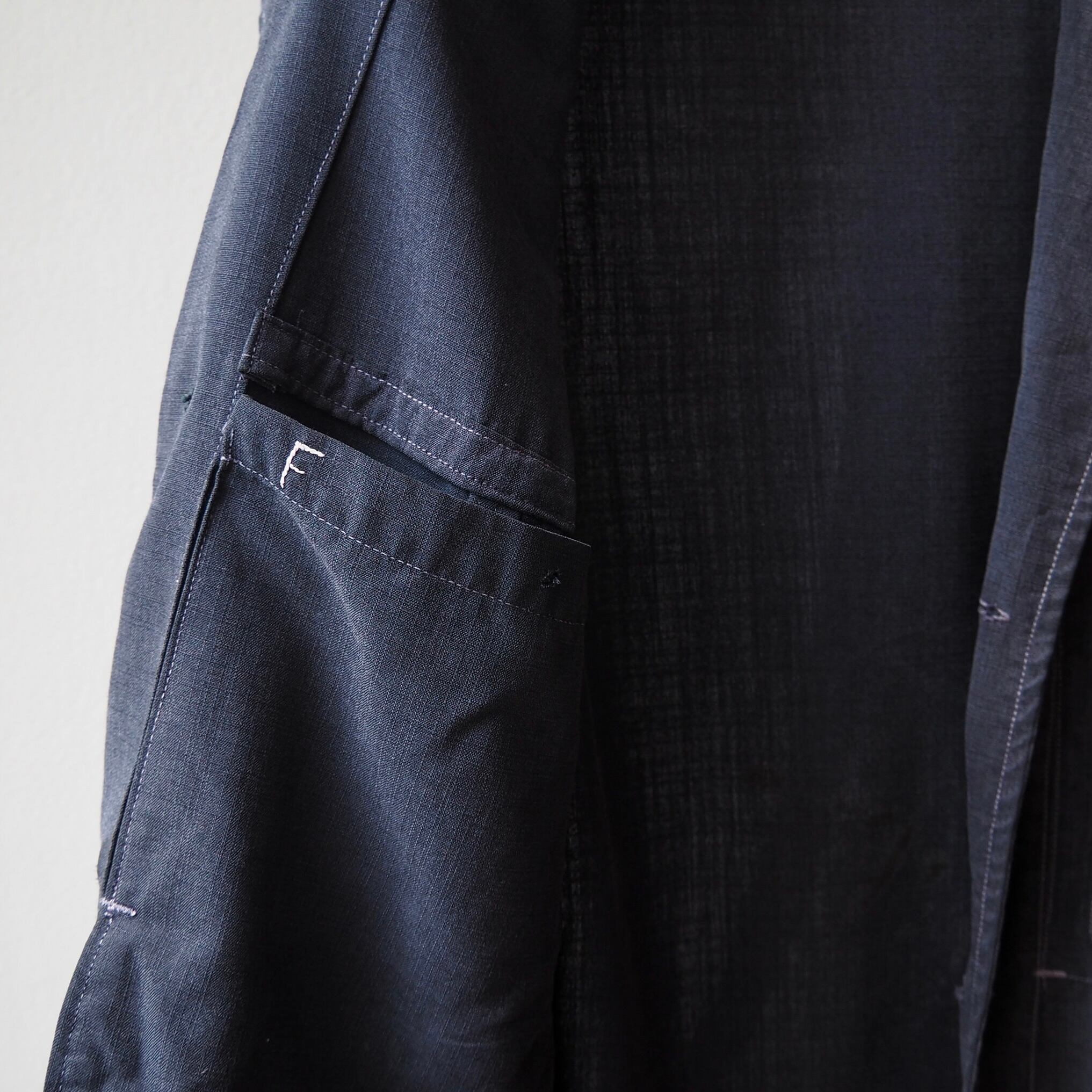 デザインもタグもボタンも一見古そうですが、化繊の気配がするコットン生地にミシンによる縫製の"留め"部分を見るとおおよそ60s、古くて50sあたりではないかと思います。