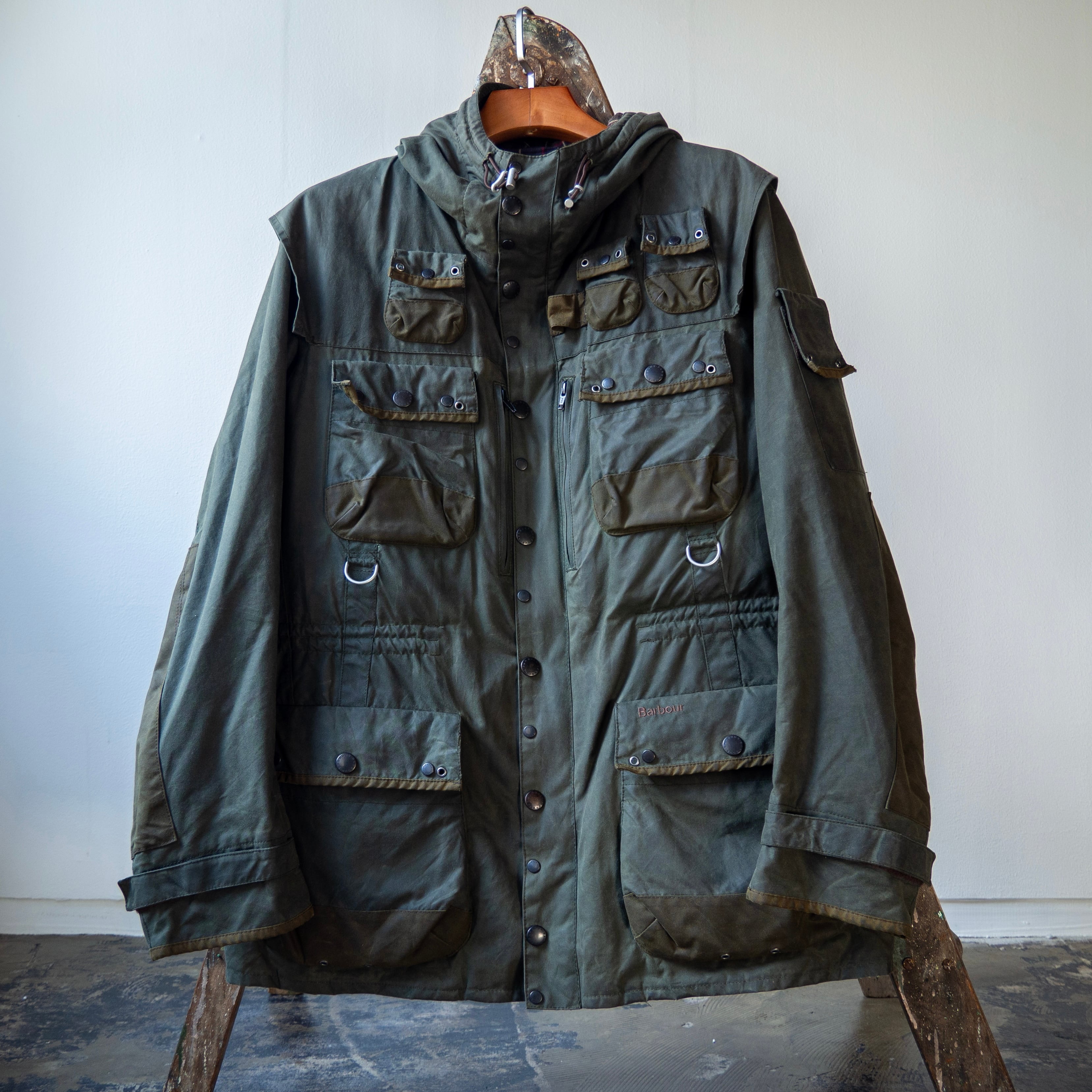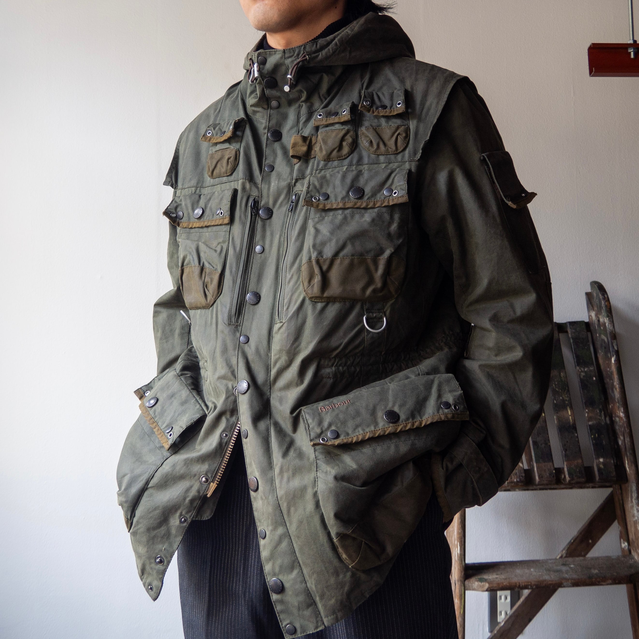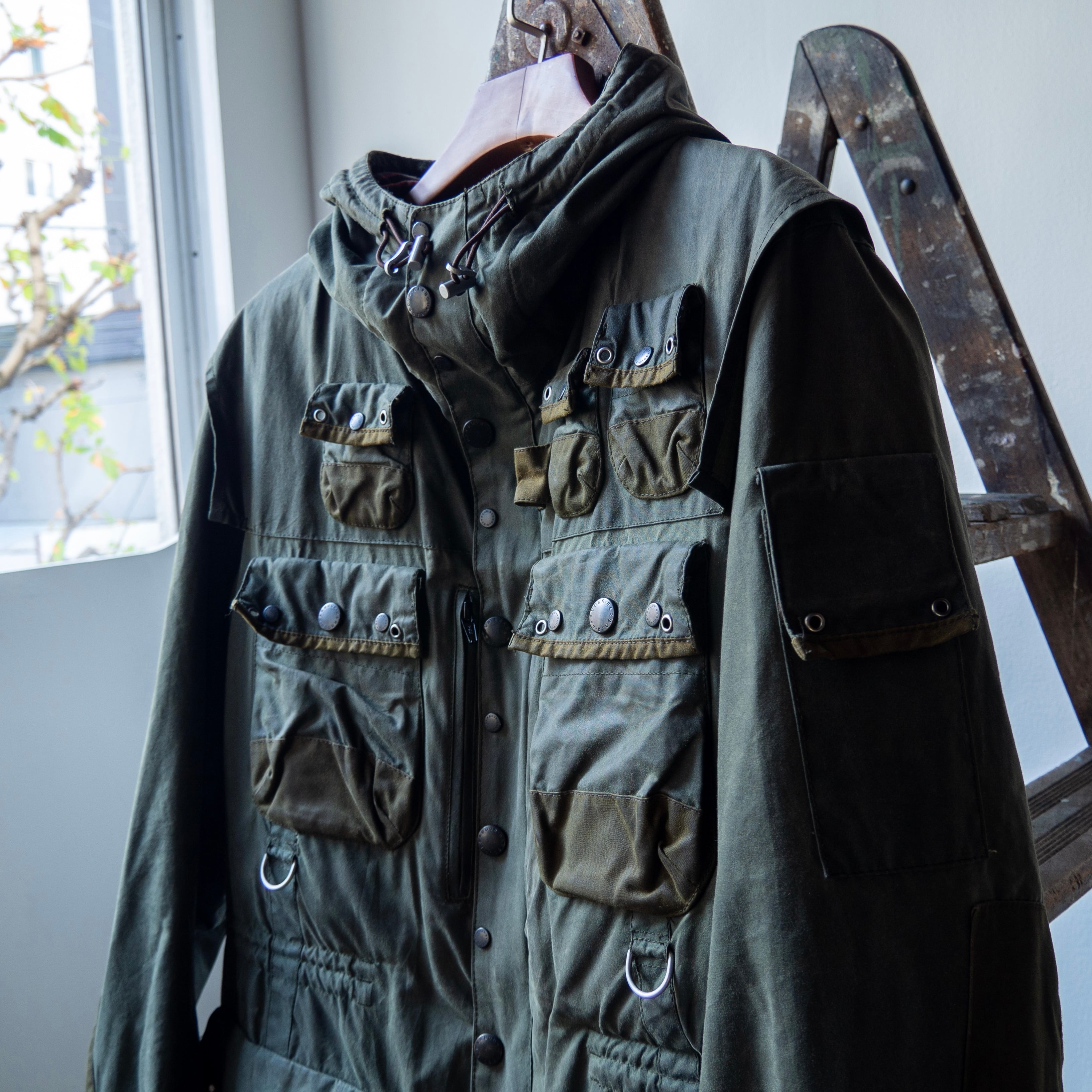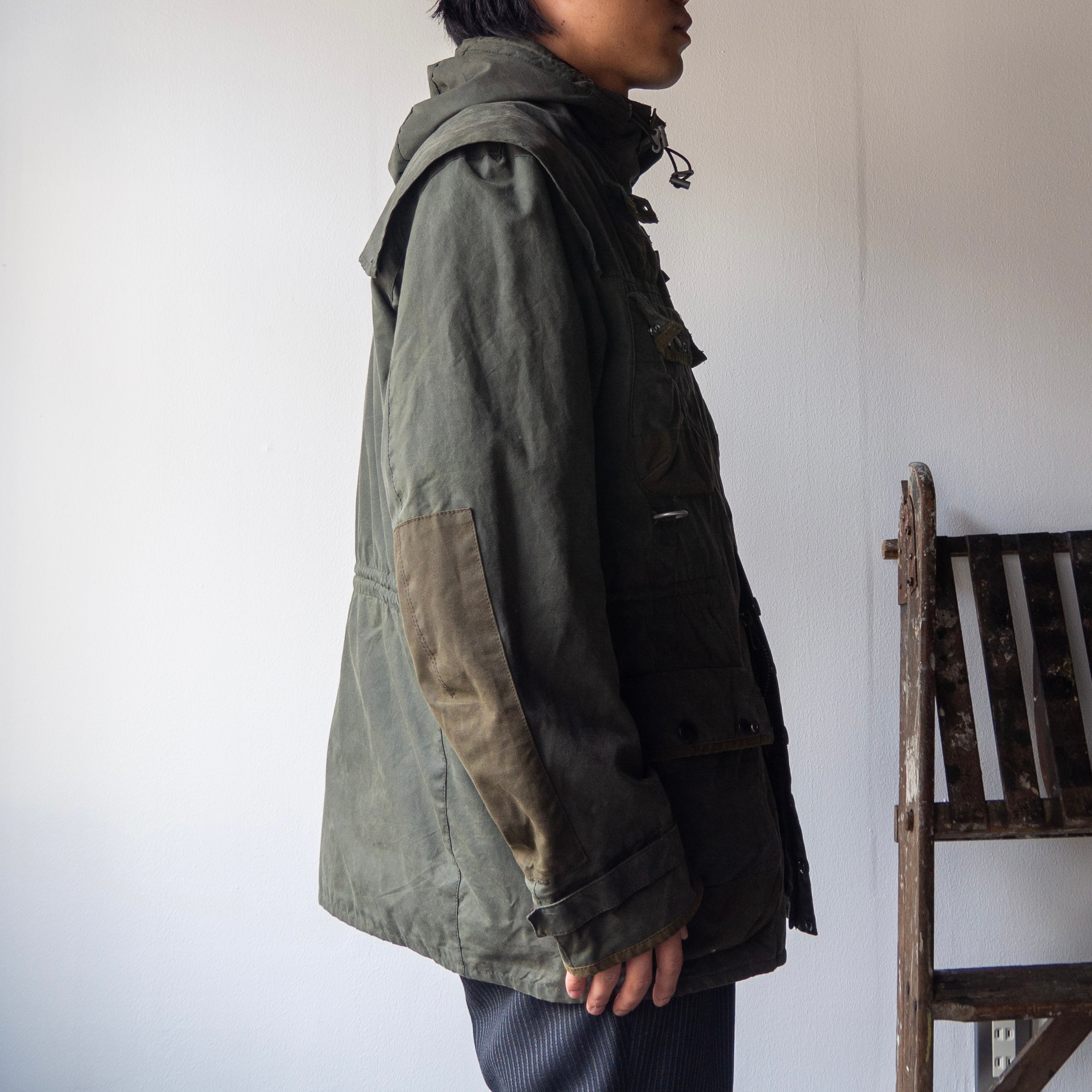 フォークランド戦争中にイギリス軍パラシュート部隊大尉ミック・コットン氏によってカスタムされた、Barbour<DURHAM>をデザインソースとして製作されたこちらの1着。