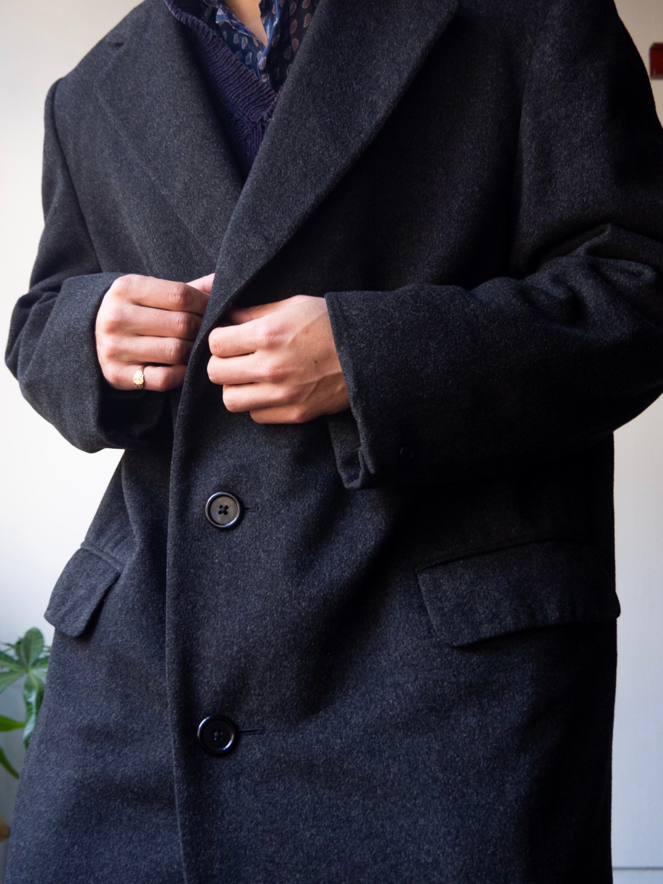 裏地は繻子織りのサテン地で仕立てられておりますので、ラムウールのふんわりと柔らかい生地感も相まって重厚なルックスとは裏腹に非常にスムースに、角のない軽やかな着心地でご着用して頂けます。