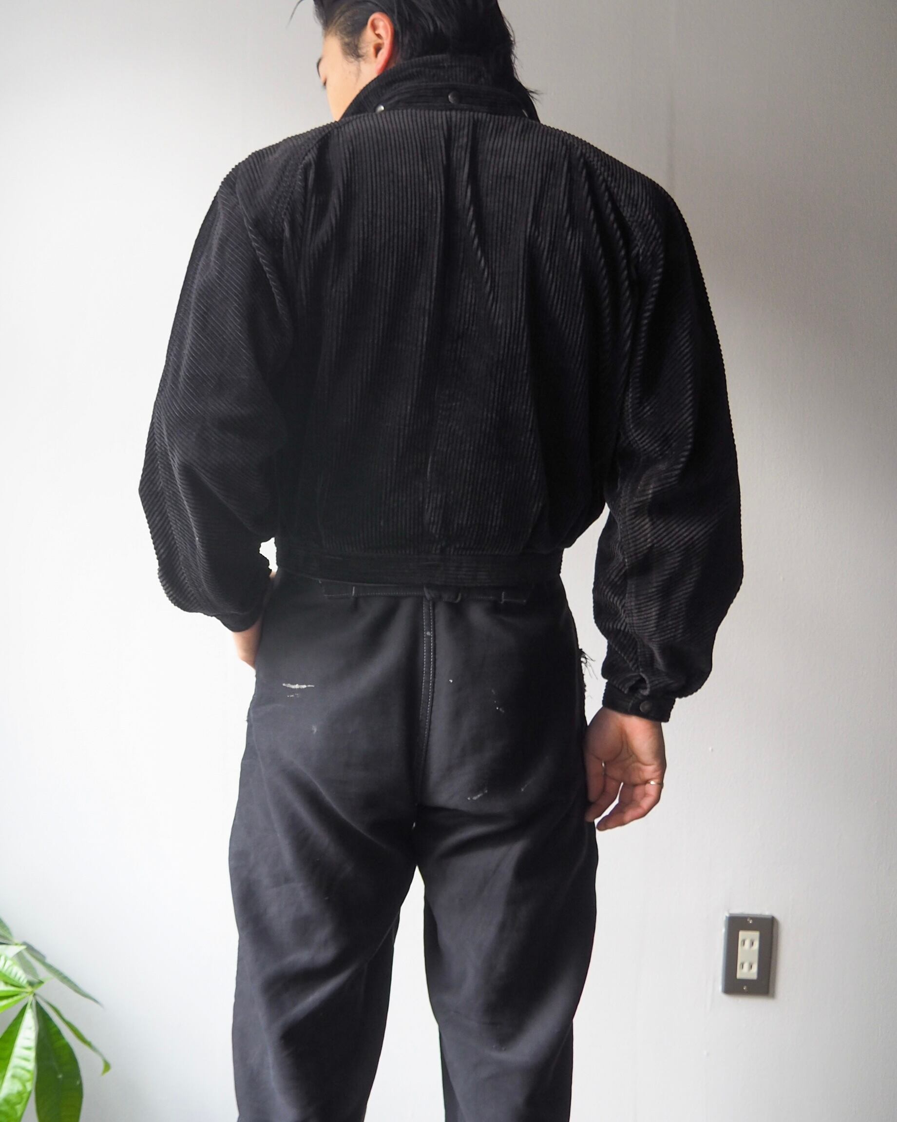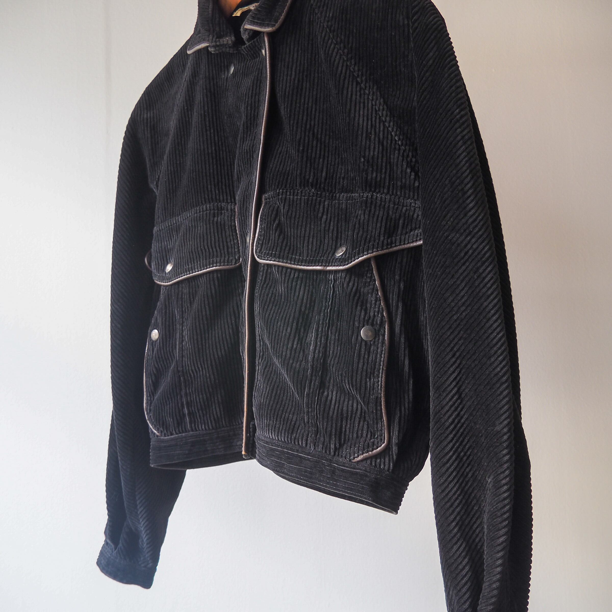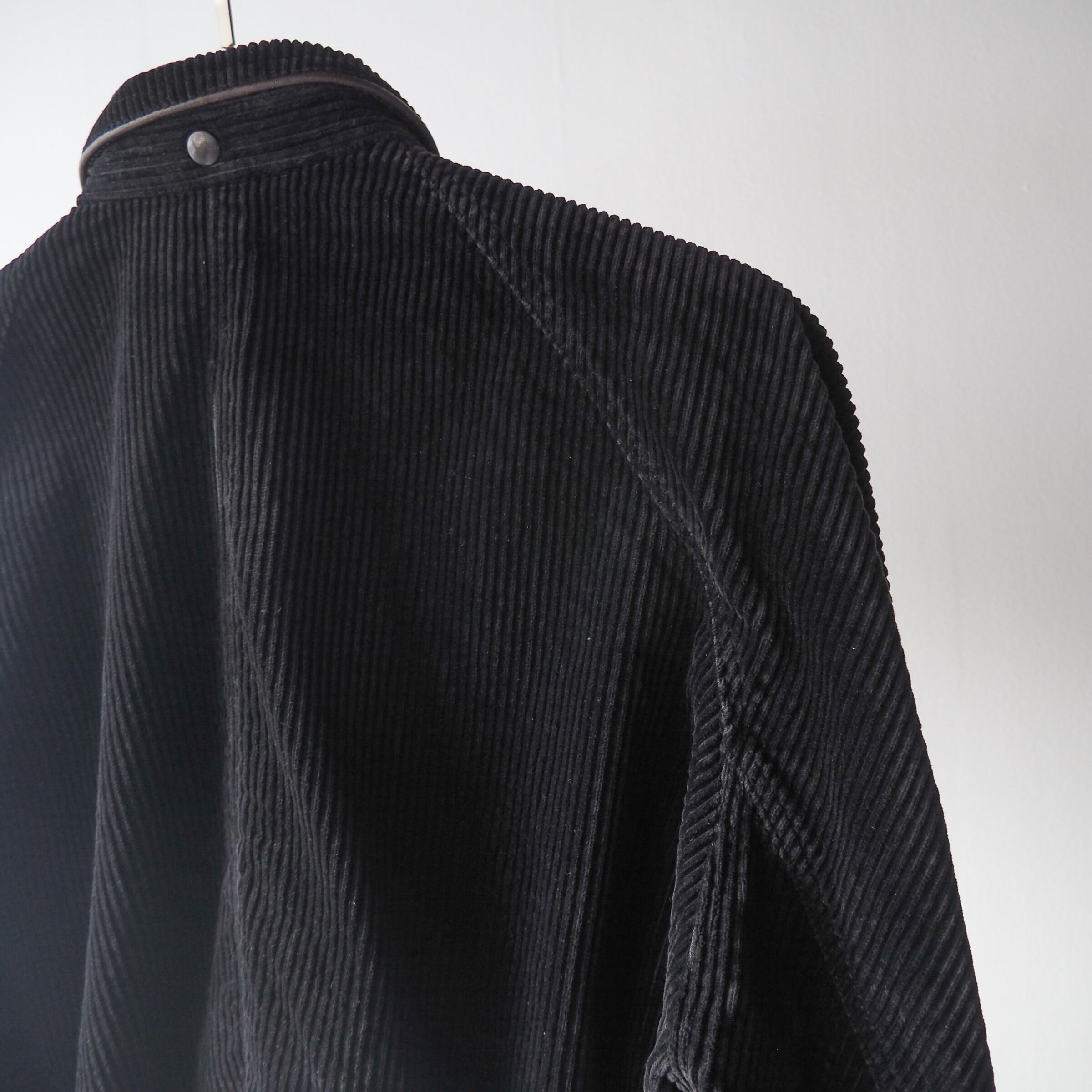 シャープな着丈に艶めくブラックコーデュロイ生地。
