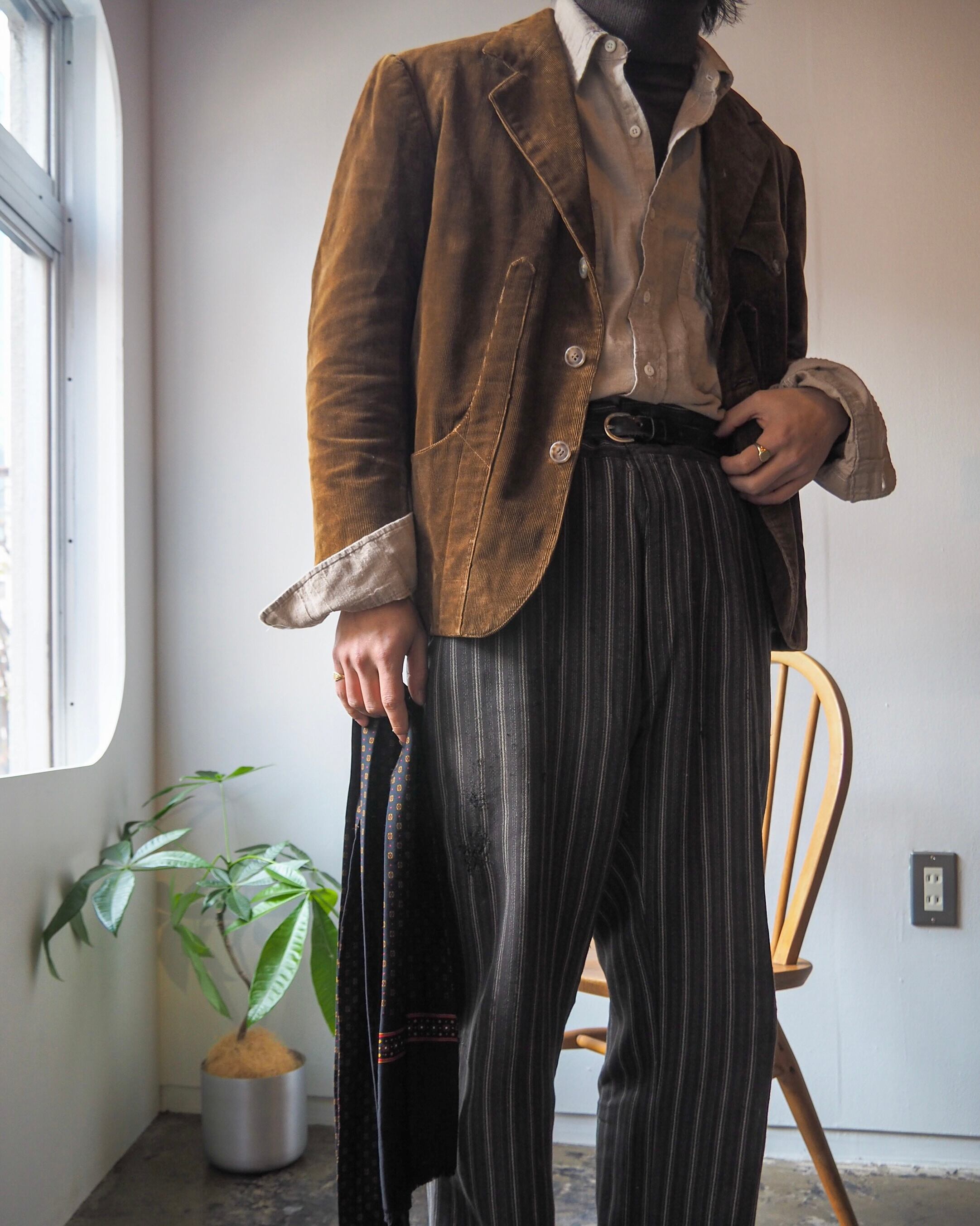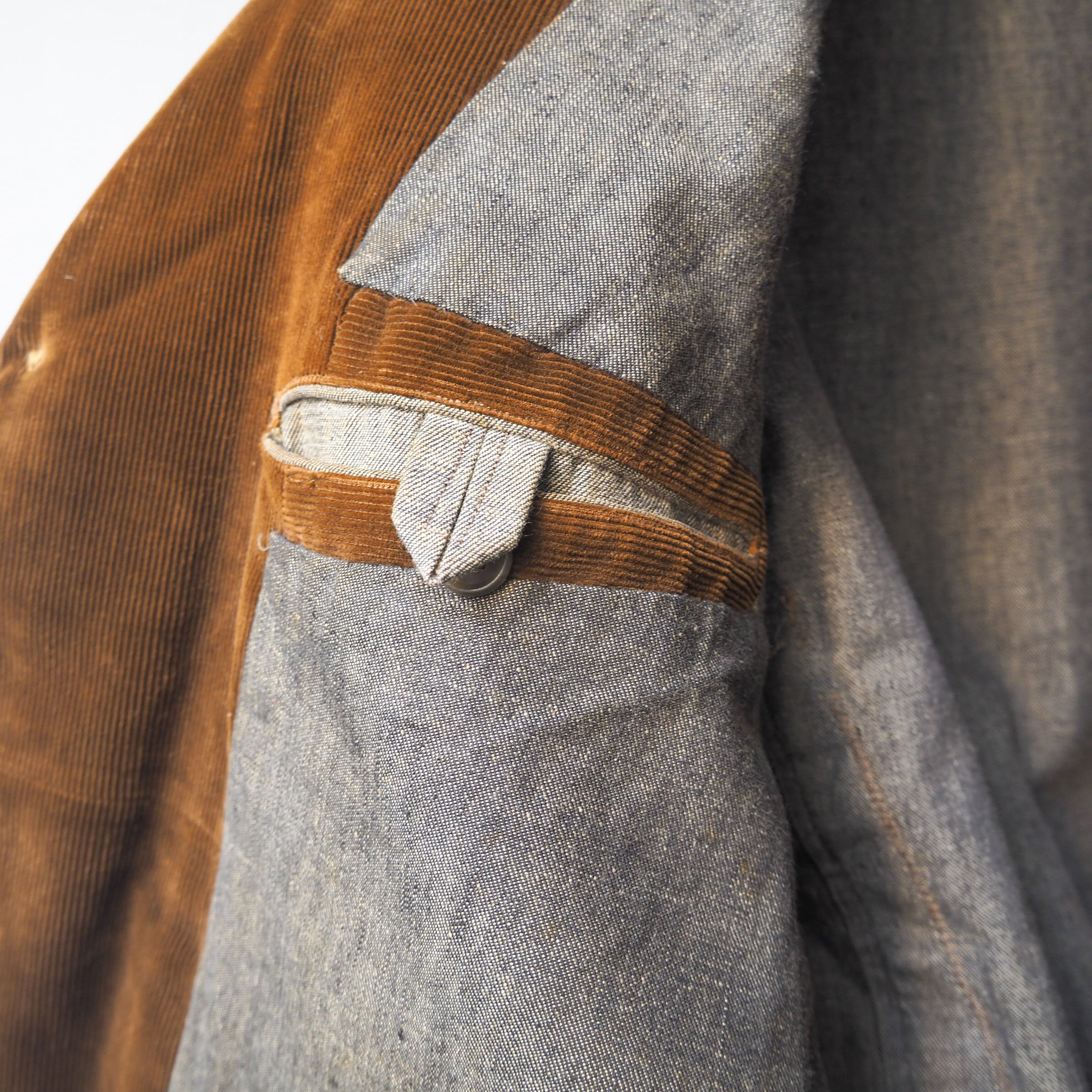 上品な艶感漂うタフでがっしりとしたコーデュロイ生地にフレンチ・テーラリングの粋が感じられる意匠仕様。イタリアとの中間地点に位置するだけあってか、どこかサルトの風も感じます。
