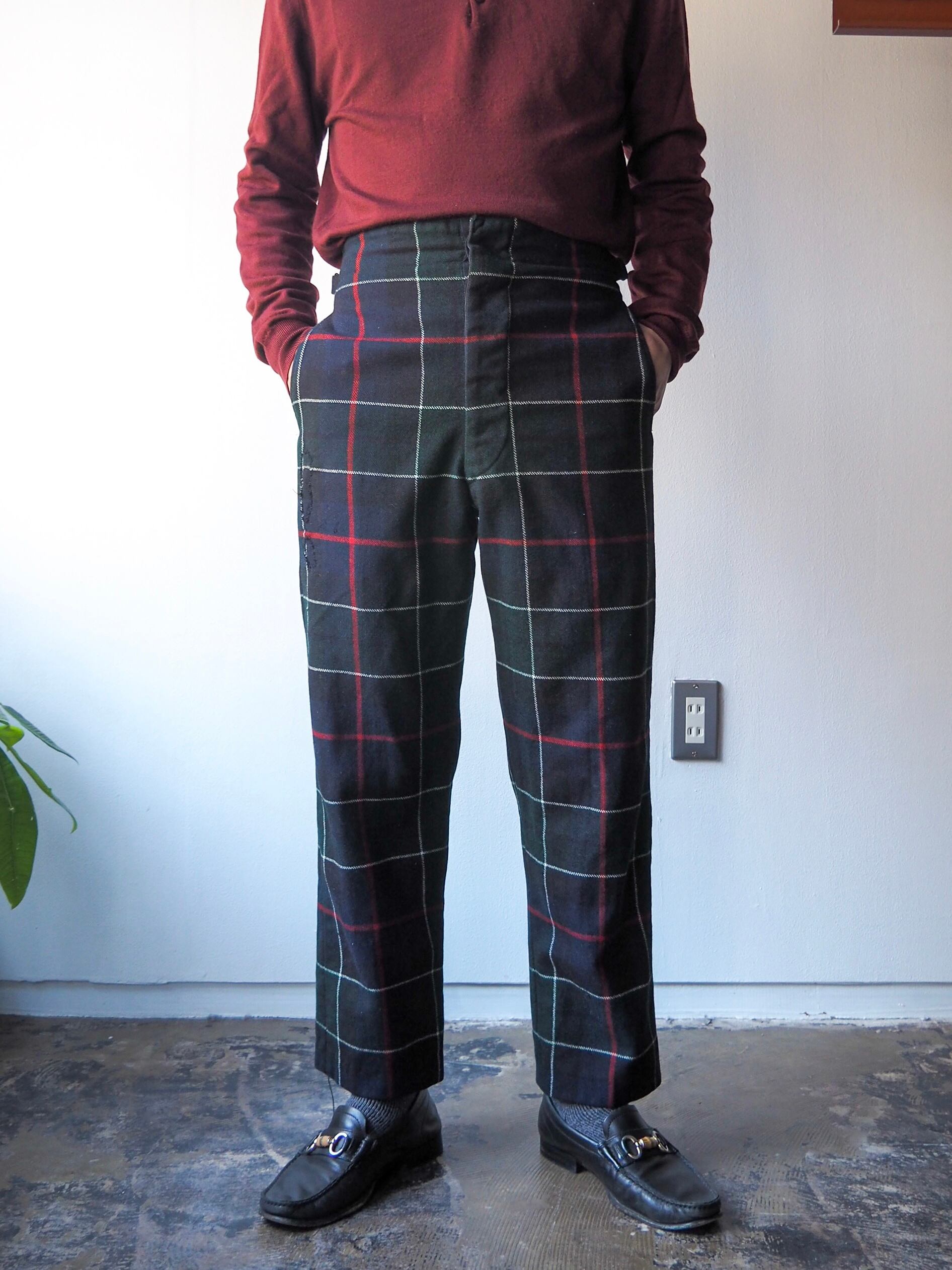 スコットランド軍のセレモニーパンツには主にブラックウォッチとマッケンジーチェックと呼ばれる英国らしい二種類のタータンチェックが採用されておりますが今回ご紹介させていただくのはブラックウォッチのものより球数が少ない後者のマッケンジーチェックのモデル。