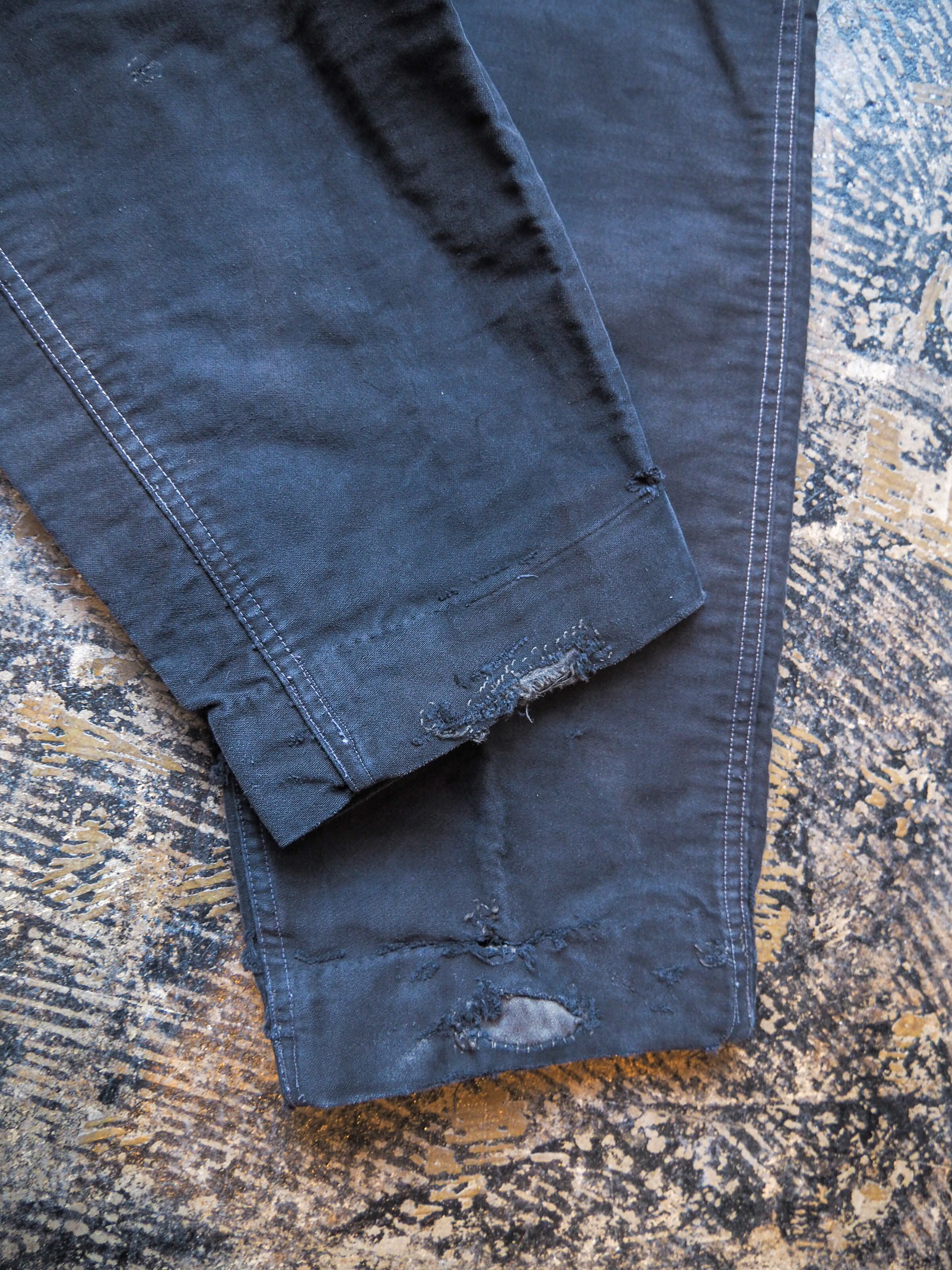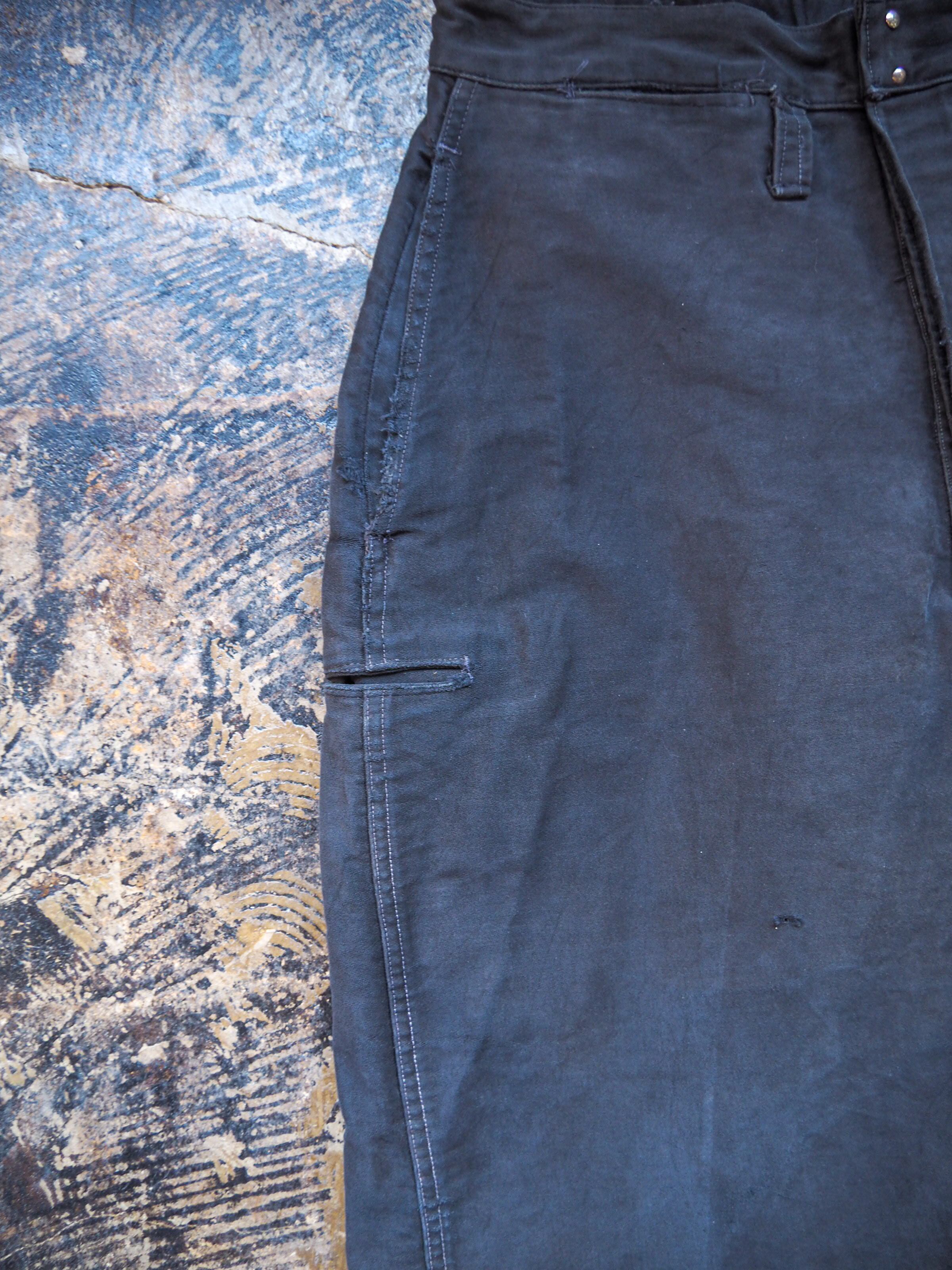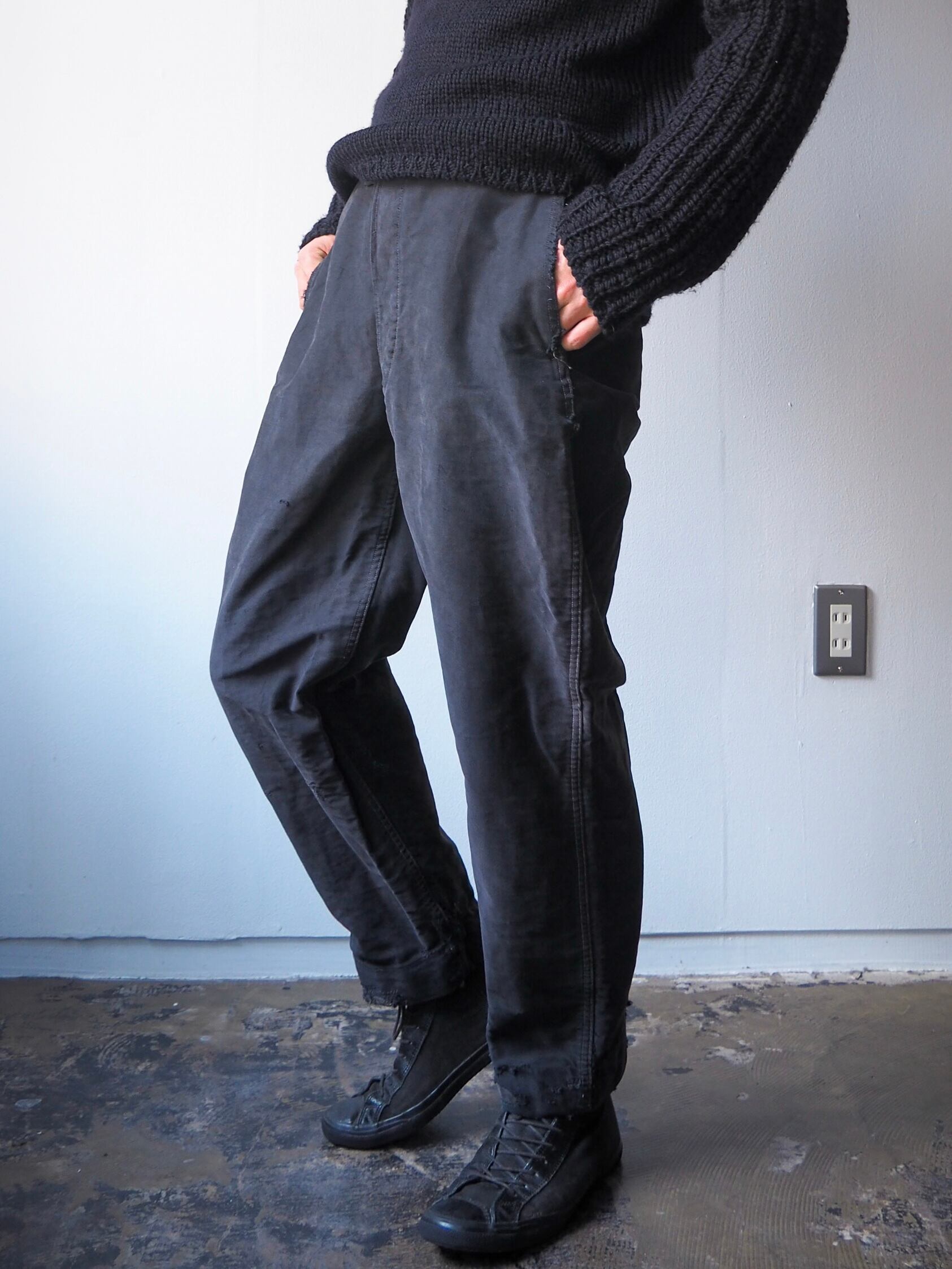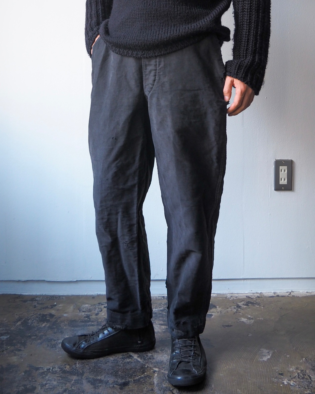 1950年代頃にフランスで着用されていたブラックモールスキン生地のワークトラウザーズのご紹介です。