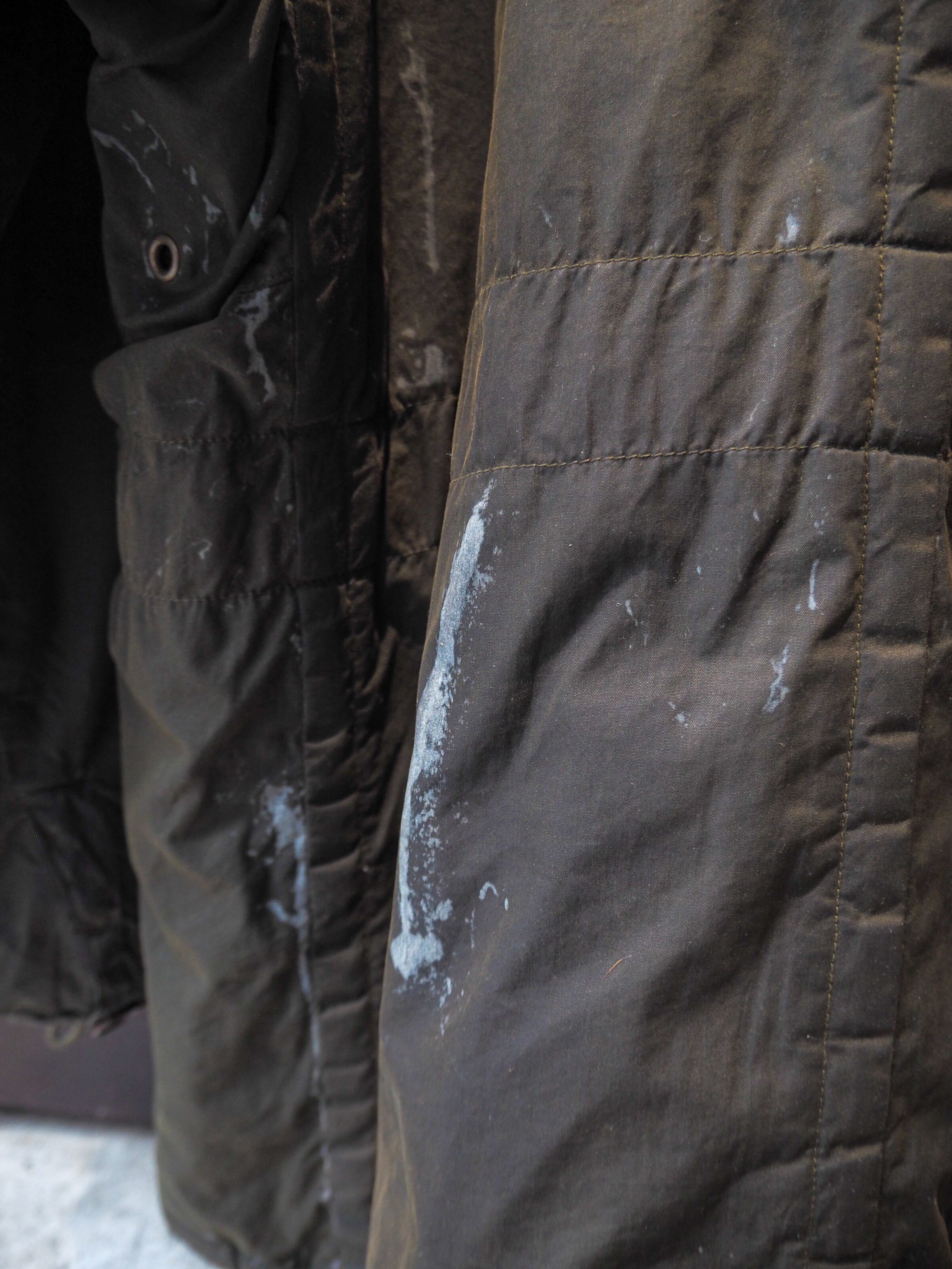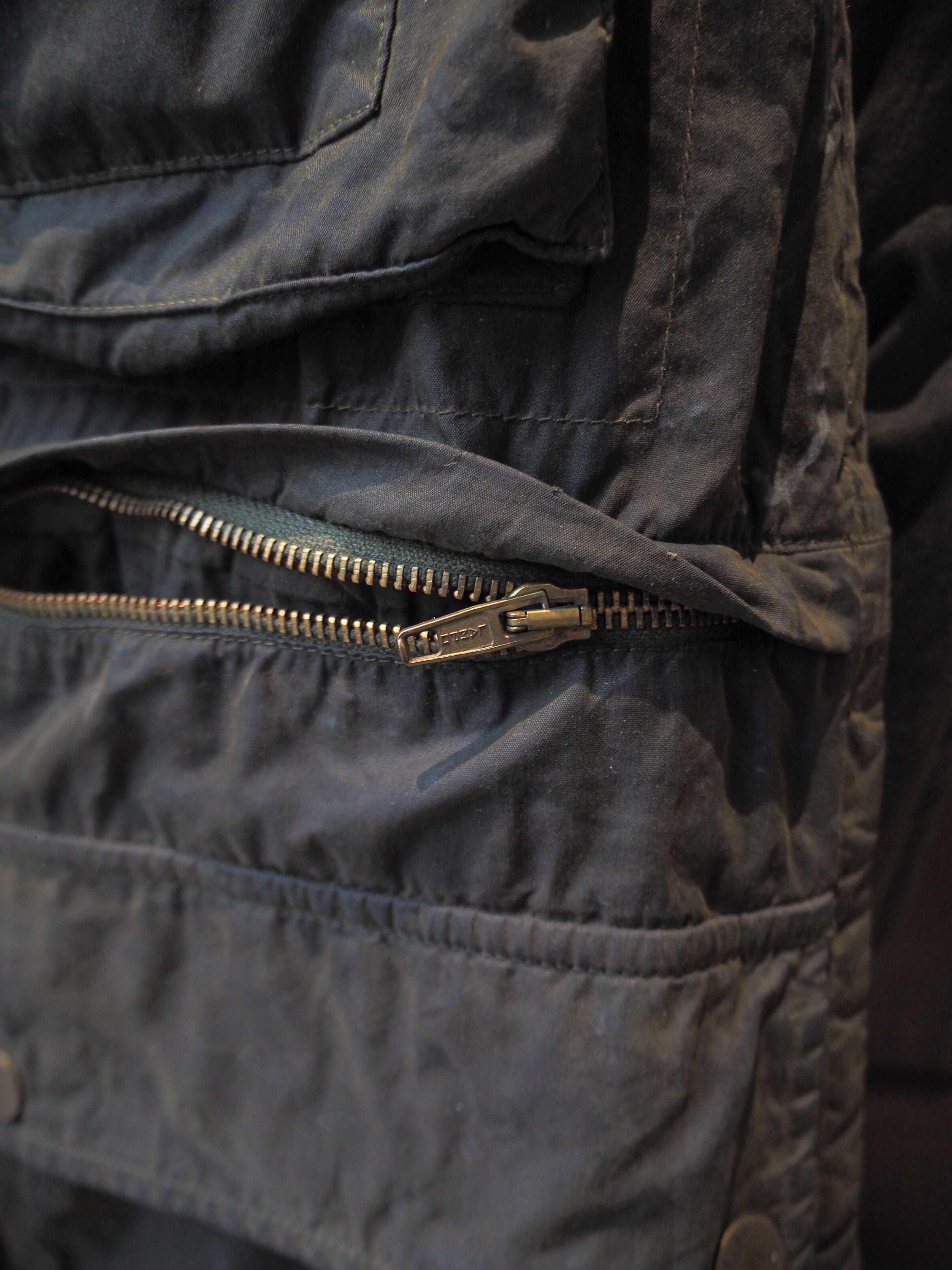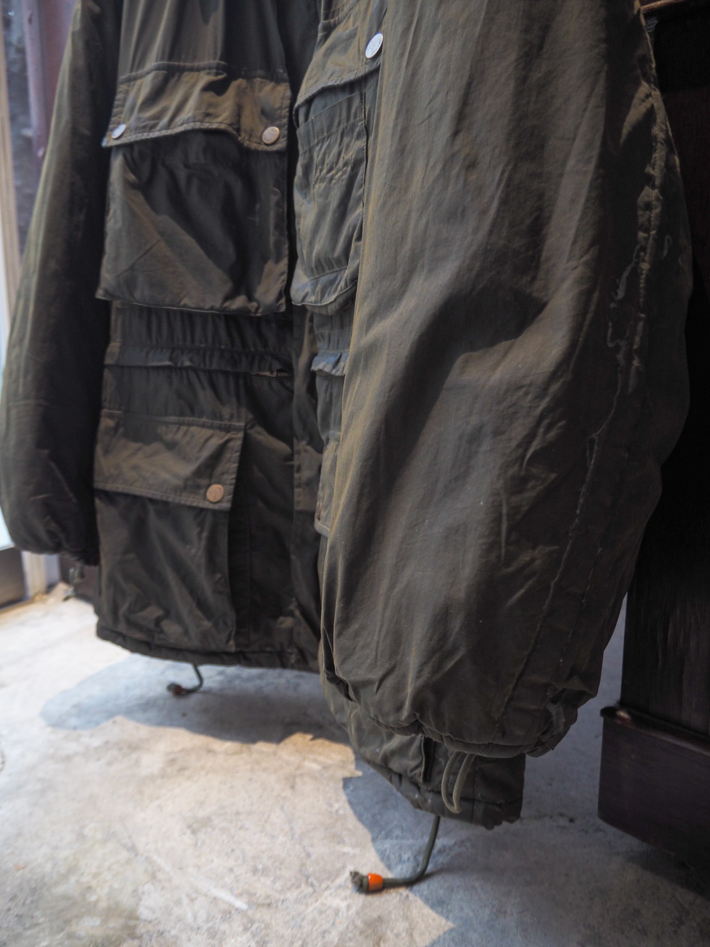 ガーメント・ダイが施されたことによってしっとりと艶やかな質感に変化したアウターシェルに内部には保温性抜群深いブルーカラーのキルティングライナー。ウエスト、袖口内部には身幅を調節していただけるドローコードが付属しております。