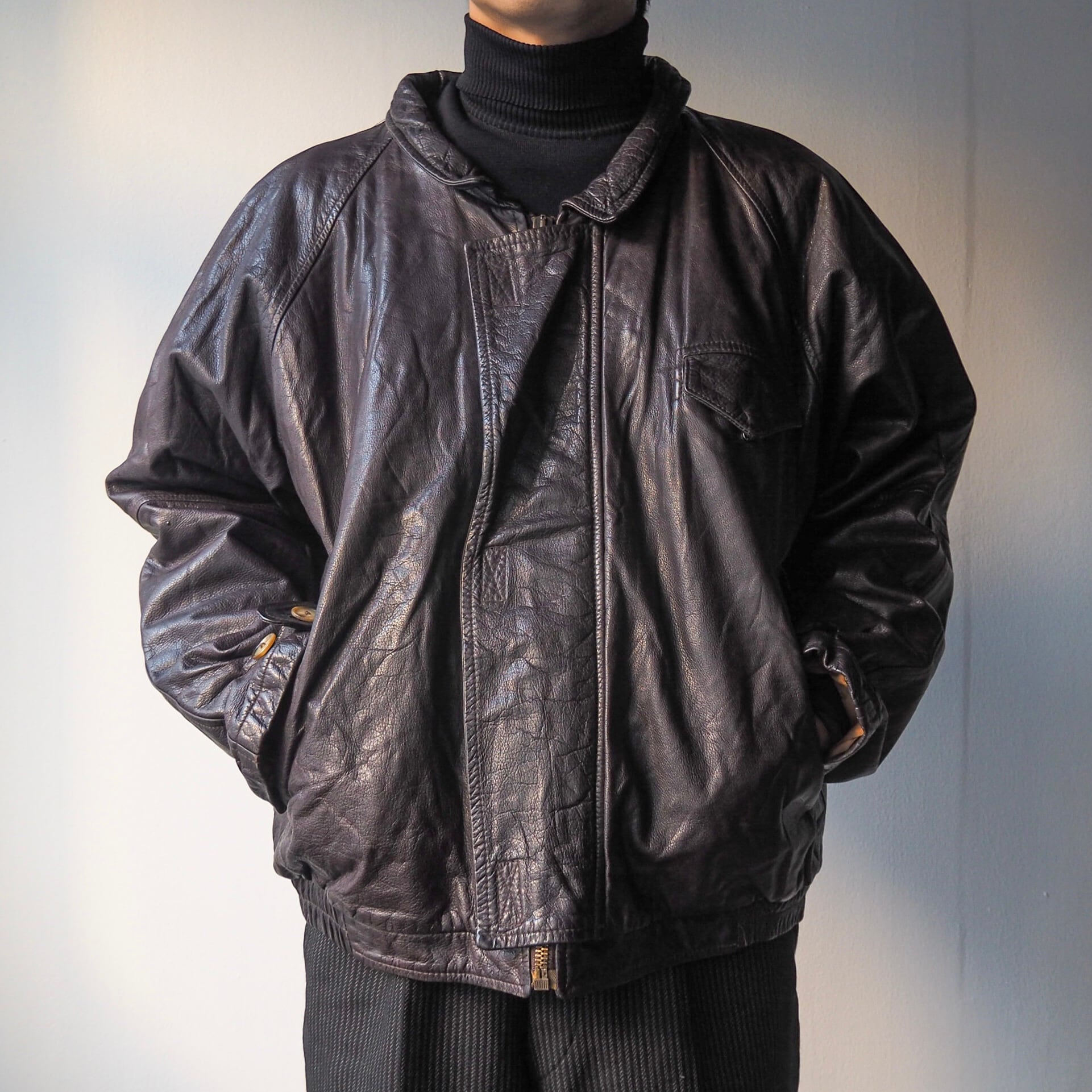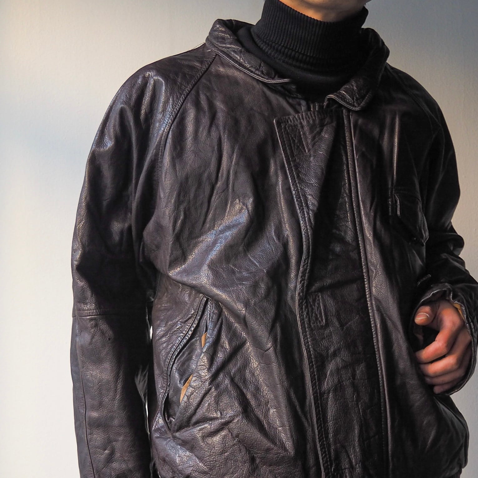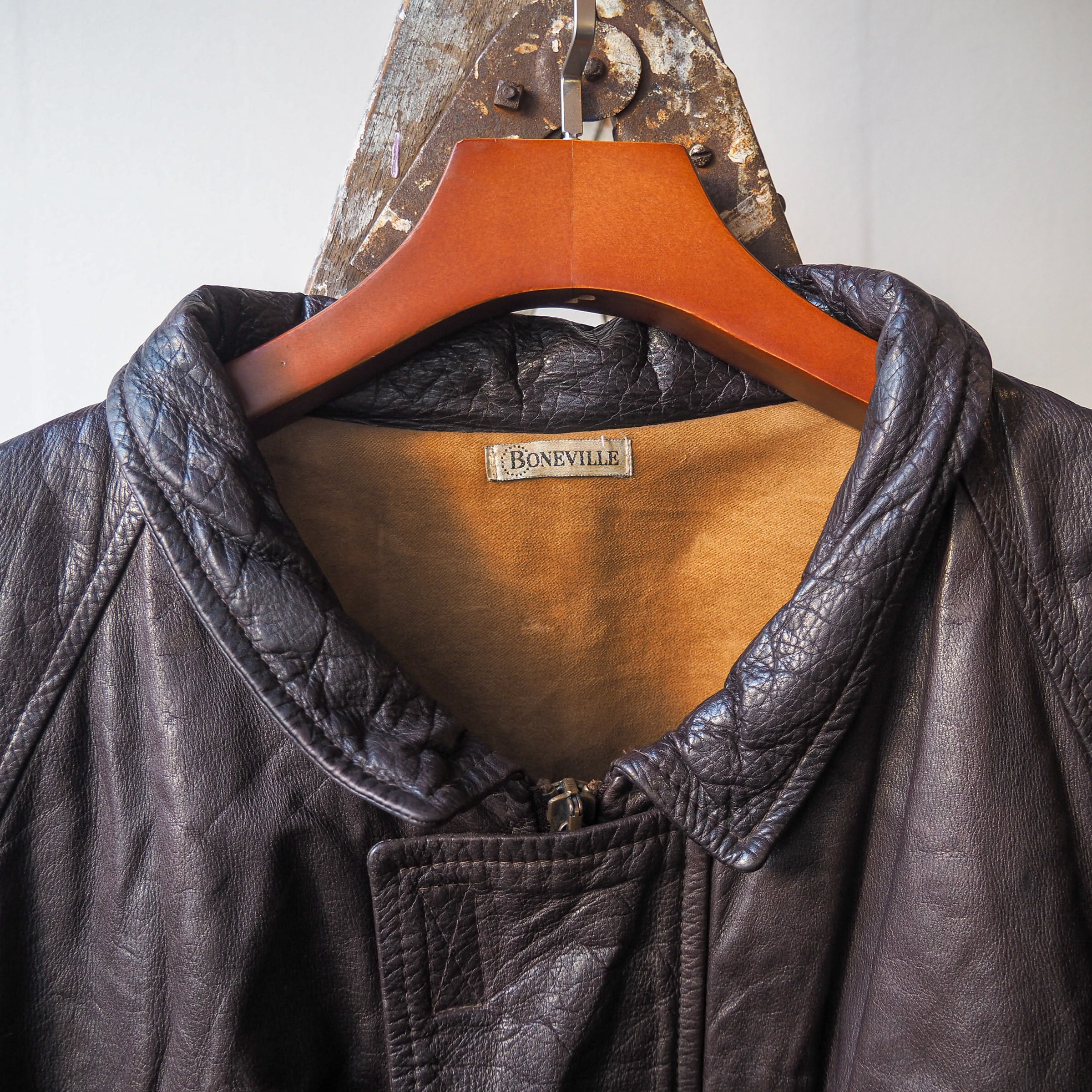 1980s Italy "BONEVILLE" Raglan Sleeve Leather Jacket