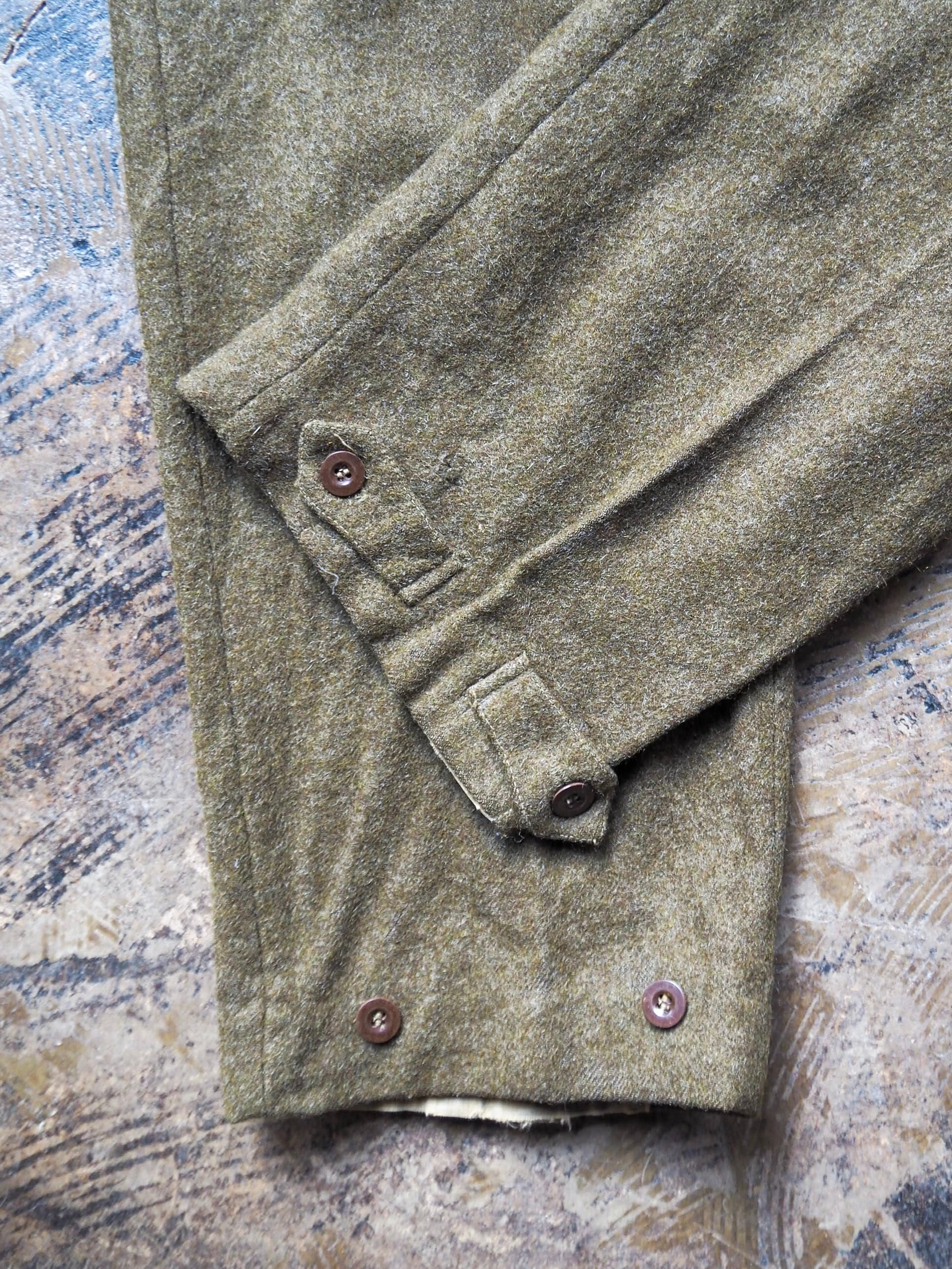 サンドカーキカラーのウールボディにイギリス軍の流れを汲むアシンメトリーなデザイン。