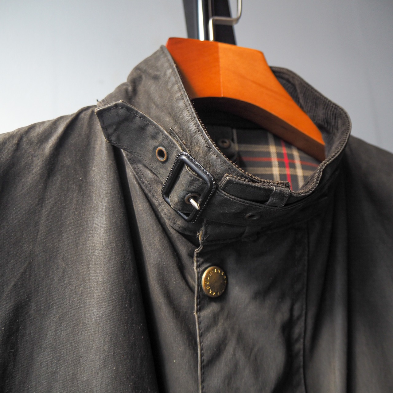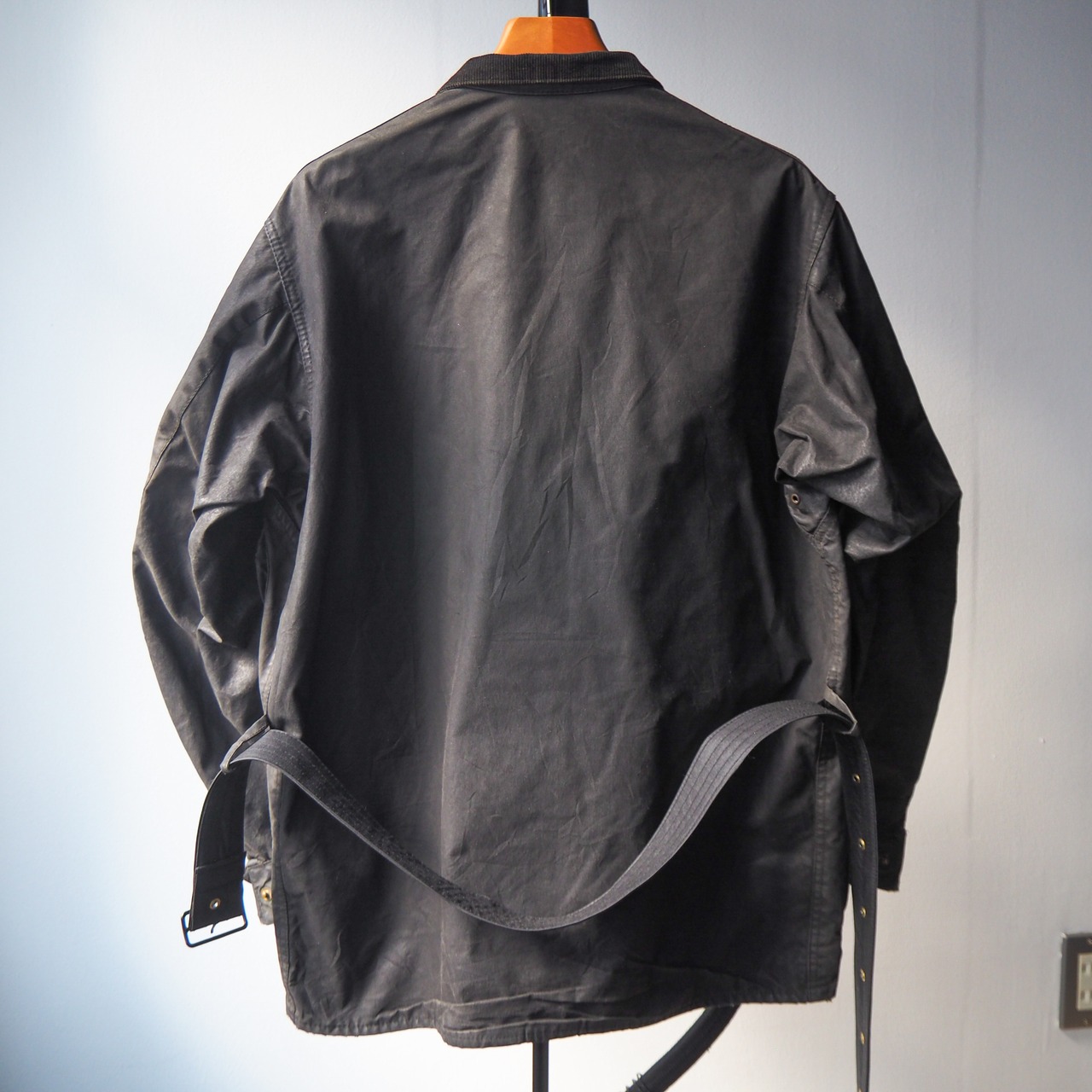 ベルトは欠損しておりましたので逗子にニューオープンされBritish Waxed Jacket様に依頼し、インターナショナルに近いオンスのワックスドコットン生地で仕立てて頂いたベルトを付属させております。