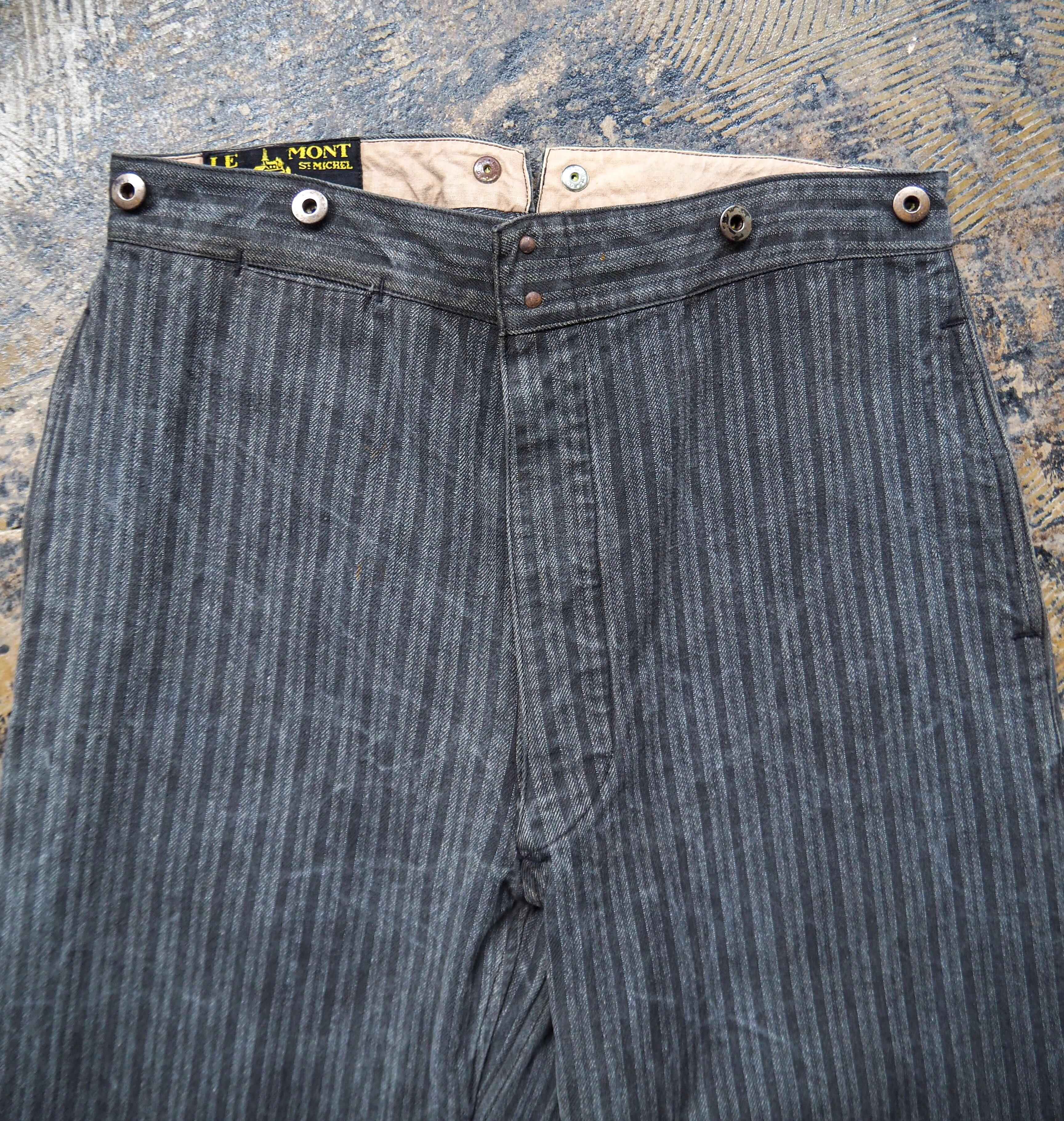 1940s French "Le Mont ST Michel" Cotton Striped Work Trousers