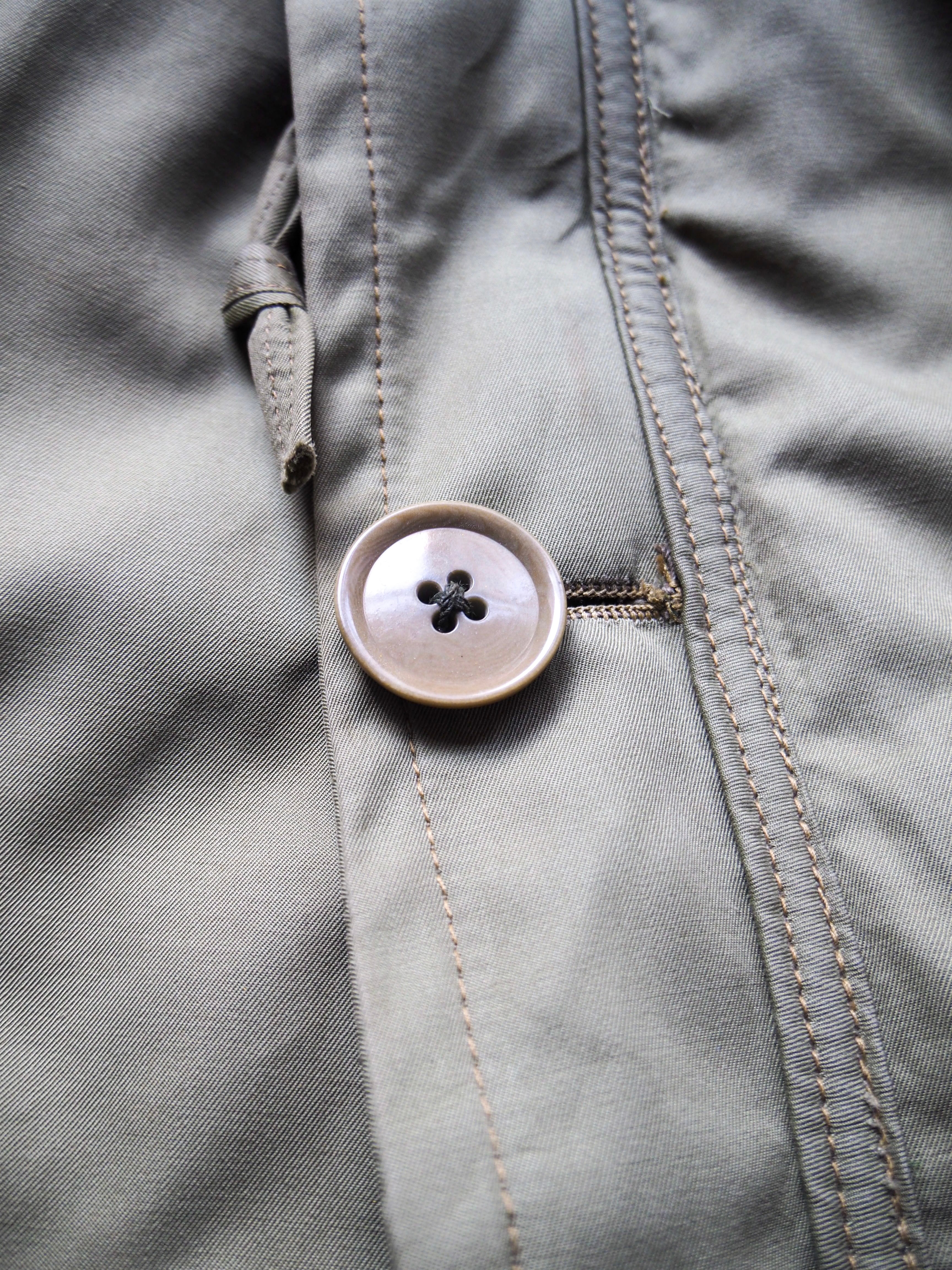 後期モデルでは硬めのコットン生地が採用されるのに対し、こちらは厚みがありつつも柔らかいコットンギャバジン生地を採用。