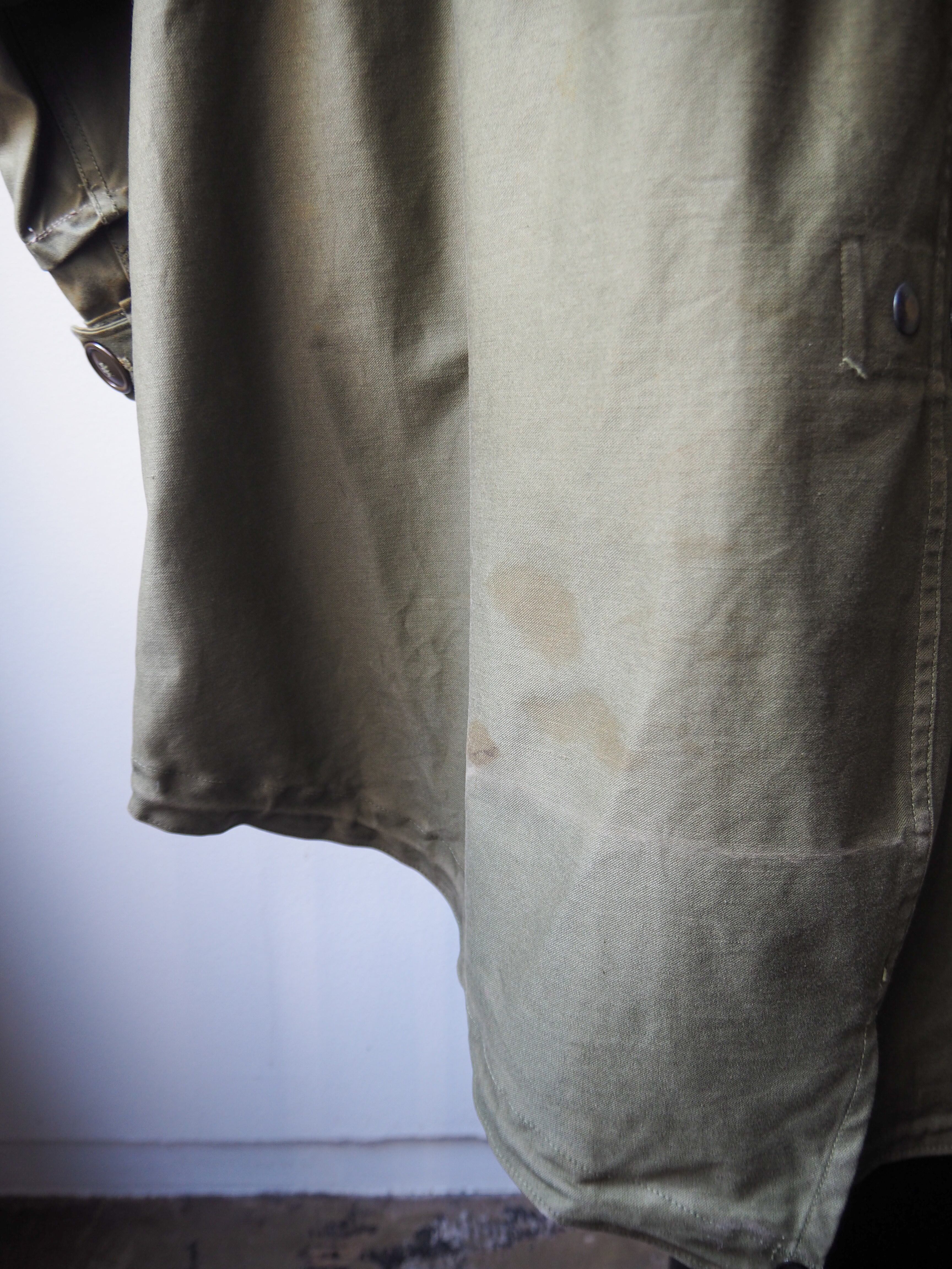状態と致しましては、背面裾部にシミが見られるものの、その他目立ったダメージ等はなくボタンも全てオリジナルが付属するグッドコンディションです。