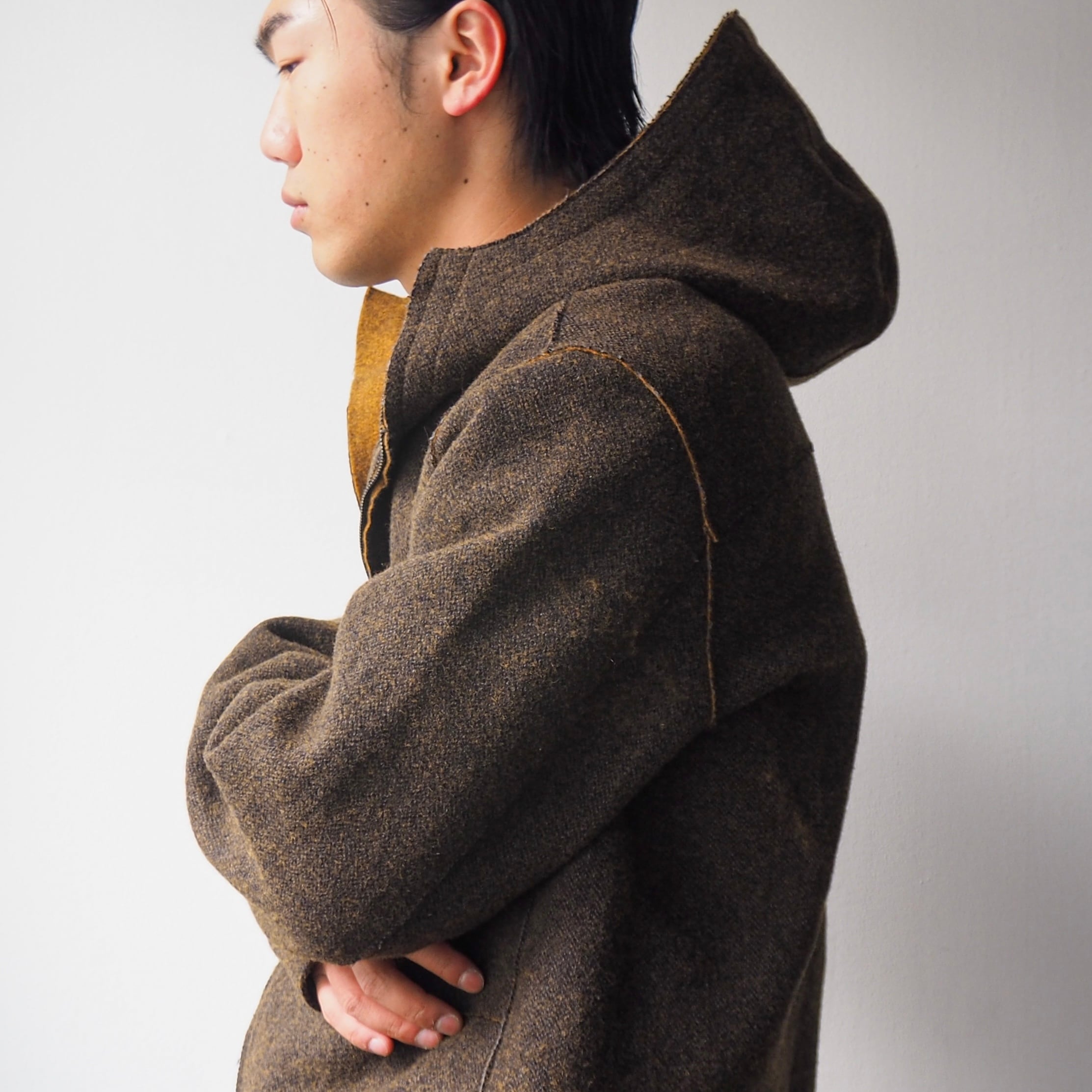 メインデザイナーがアレッサンドロプンゲッティに引き渡される以前のモレノフェラーリによるプロダクト。ウール×ポリエステルの混紡素材に製品染(Garment Dye)を施すことによって表地と裏地の豊かなコントラストを演出。