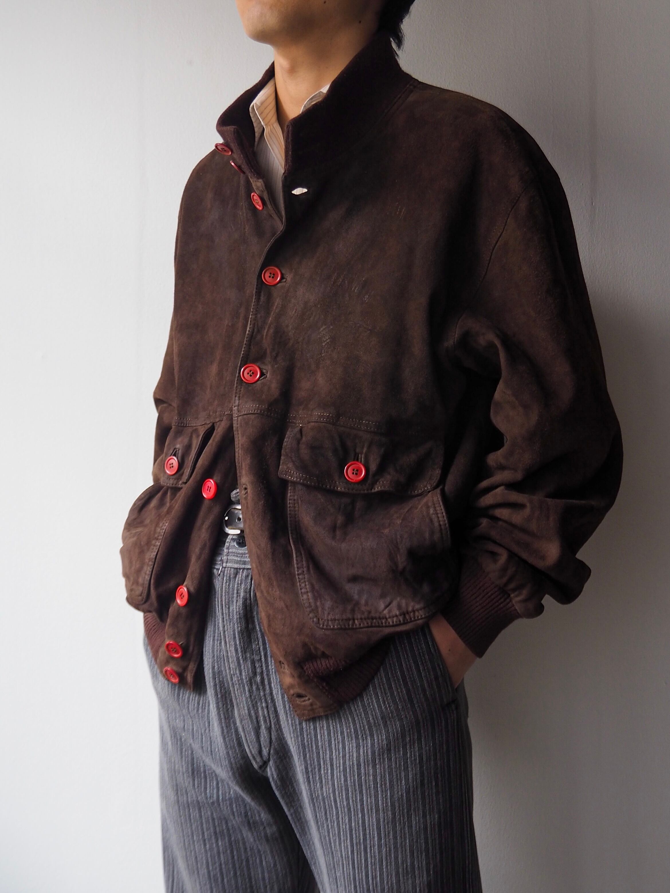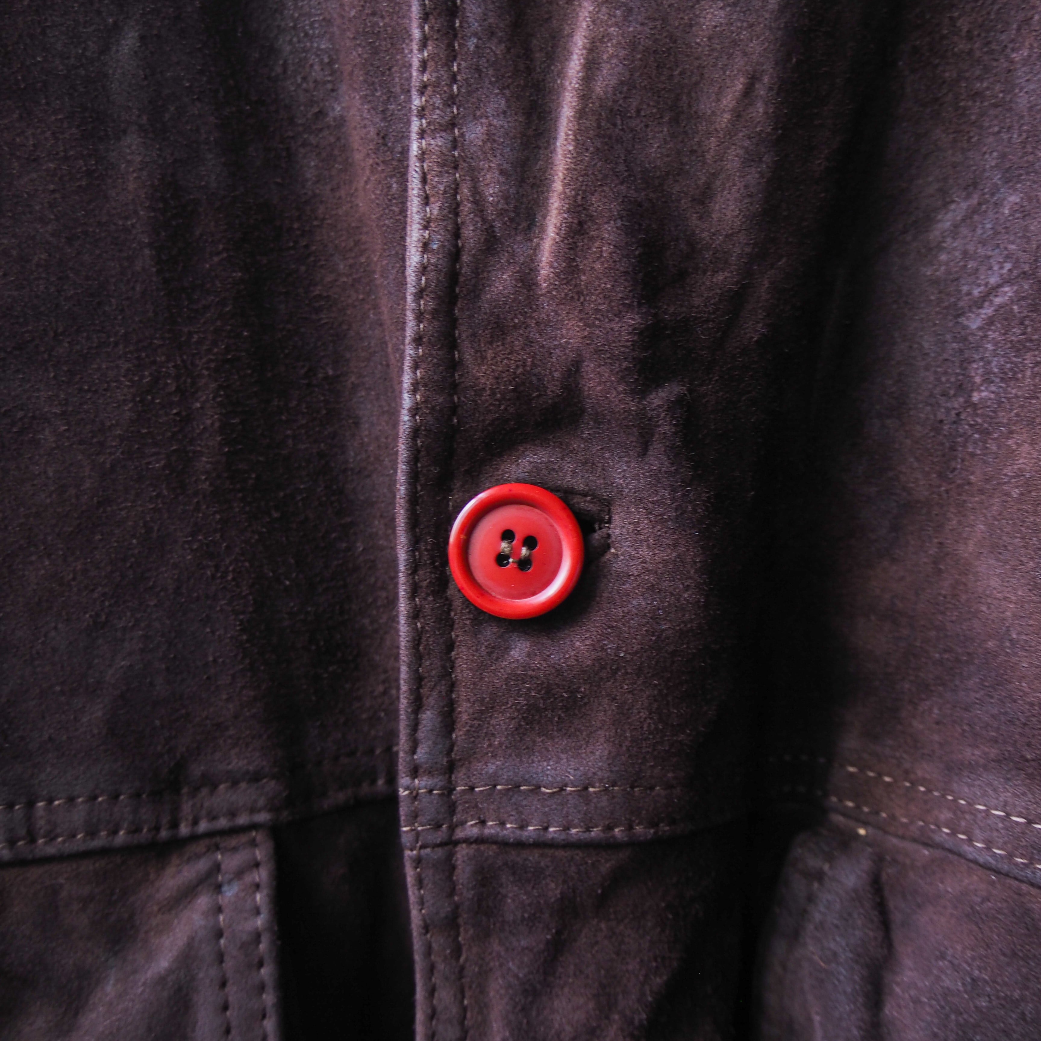 ヴァルスターの中でもあまり見ない濃いブラウンにワインレッドカラーのボタンが映えます。商品画像は入れたばかりのオイル照りが出ているため、実際の色味は1週間後に撮影した着画を参照していただければと思います。