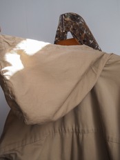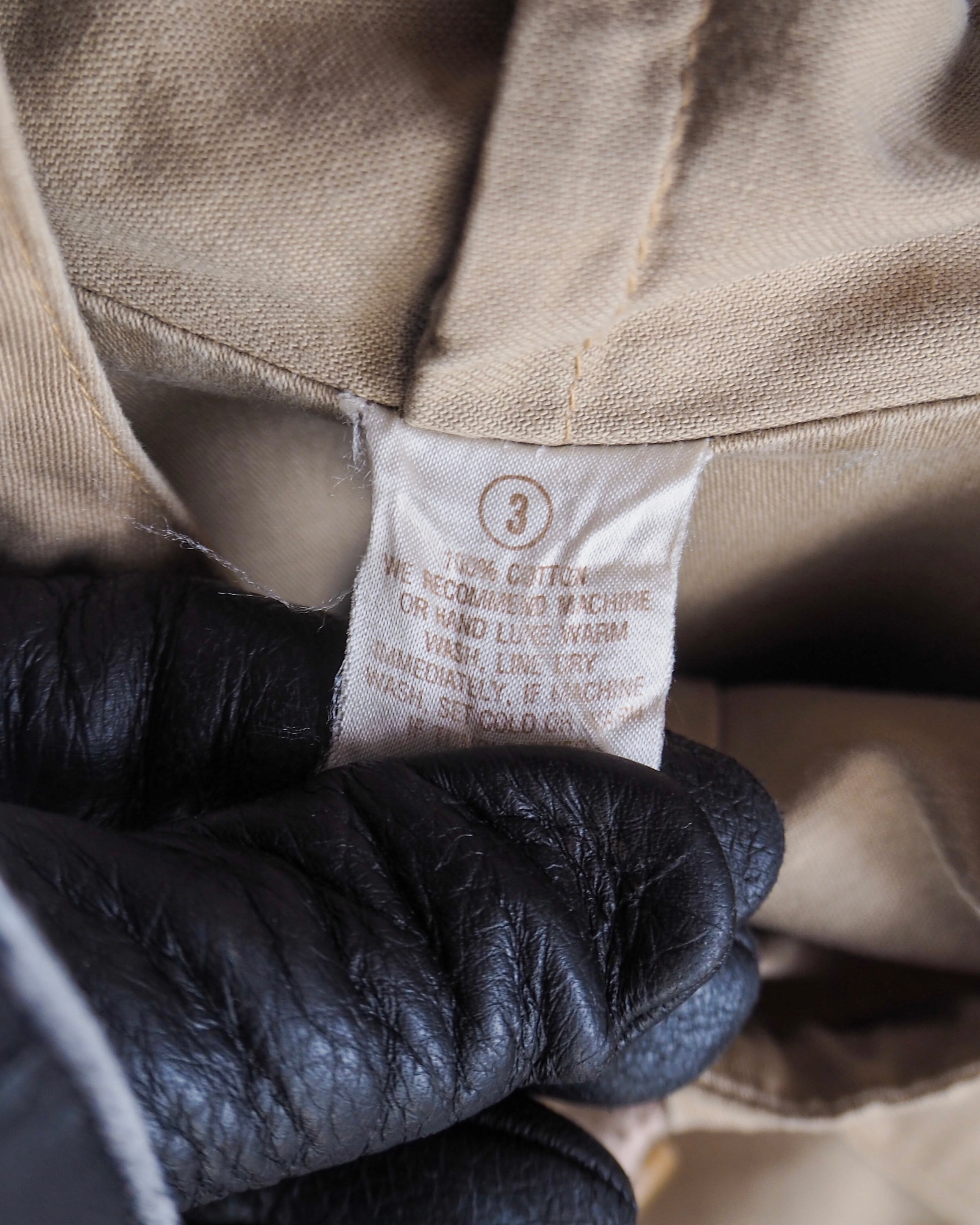 サイズ表記は"3"メンズXL~XXLあたりに該当するサイズ感ですが着丈はドローコードで、袖口はしっかりと絞りが効いておりますので幅広い体型の方にお楽しみいただけるかと思います。