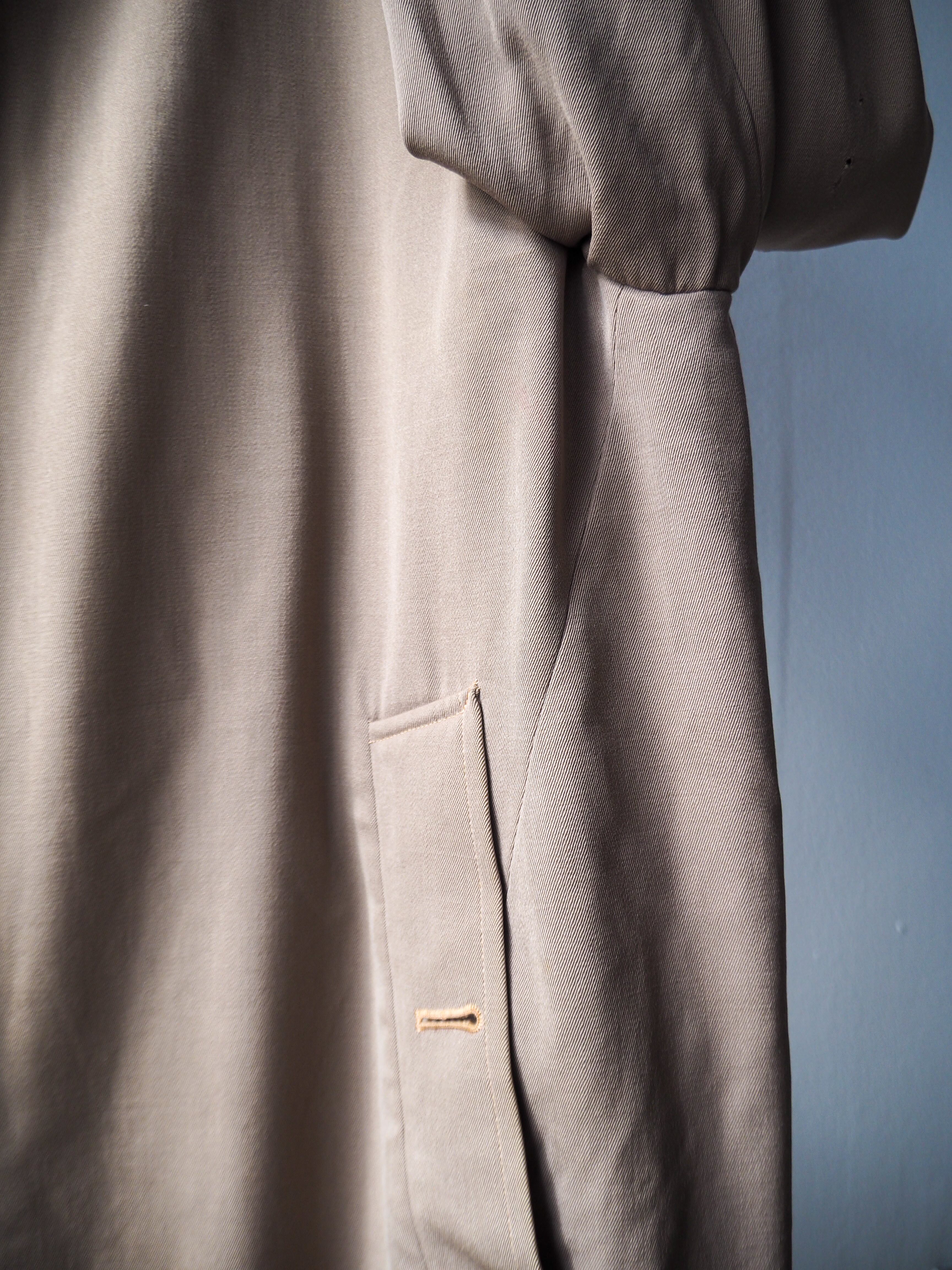 身体の動きに合わせてゆらりと動くドレーピーな表情にブレラコーティングの施された生地の色めかしい艶感は唯一無二。