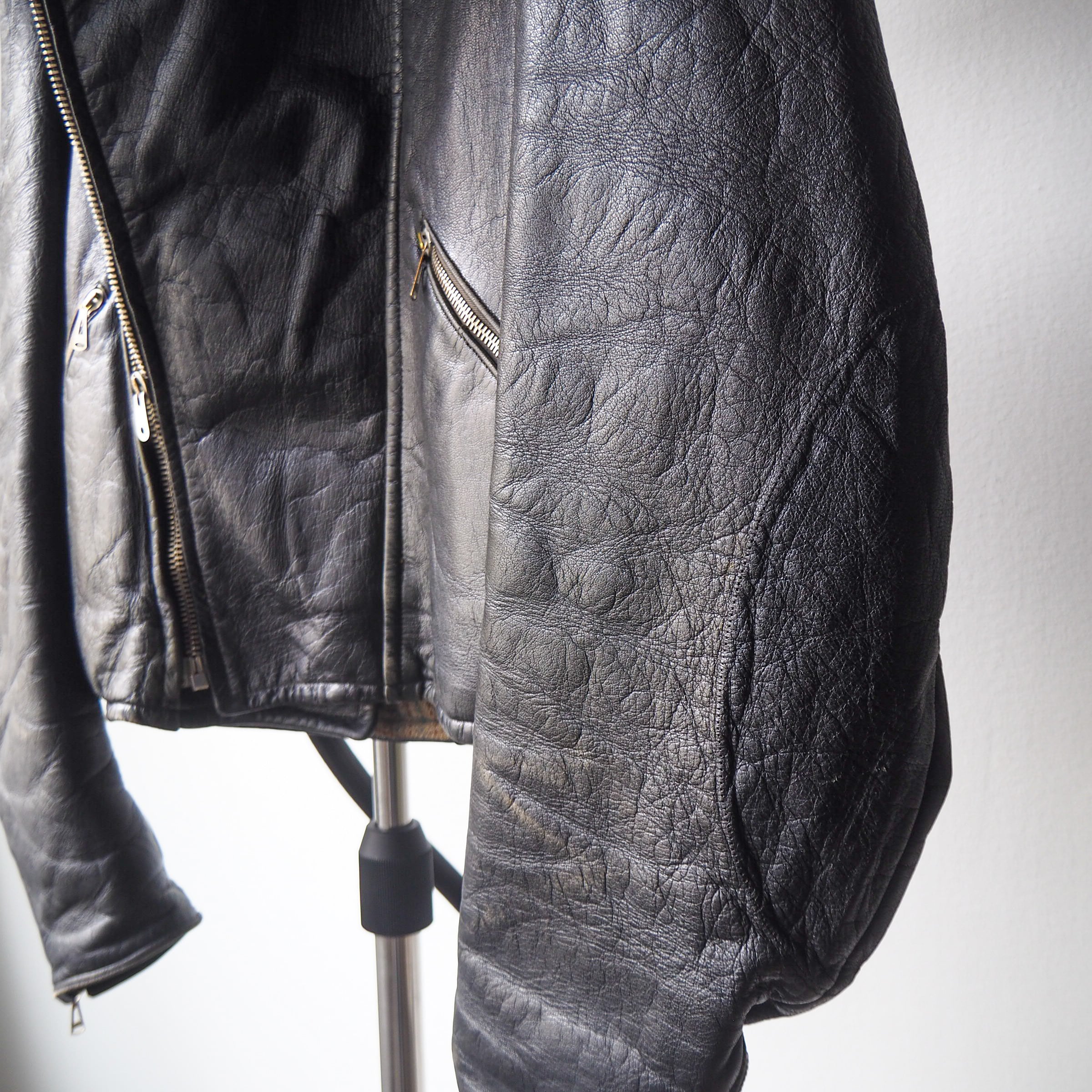 ボディはがっしりとタフな質感のゴートレザーを採用。鏡面のように鋭く光る光沢感に、キメが細かく良いシボの出た古い年代ならではな軽くてタフな良質なレザー生地。