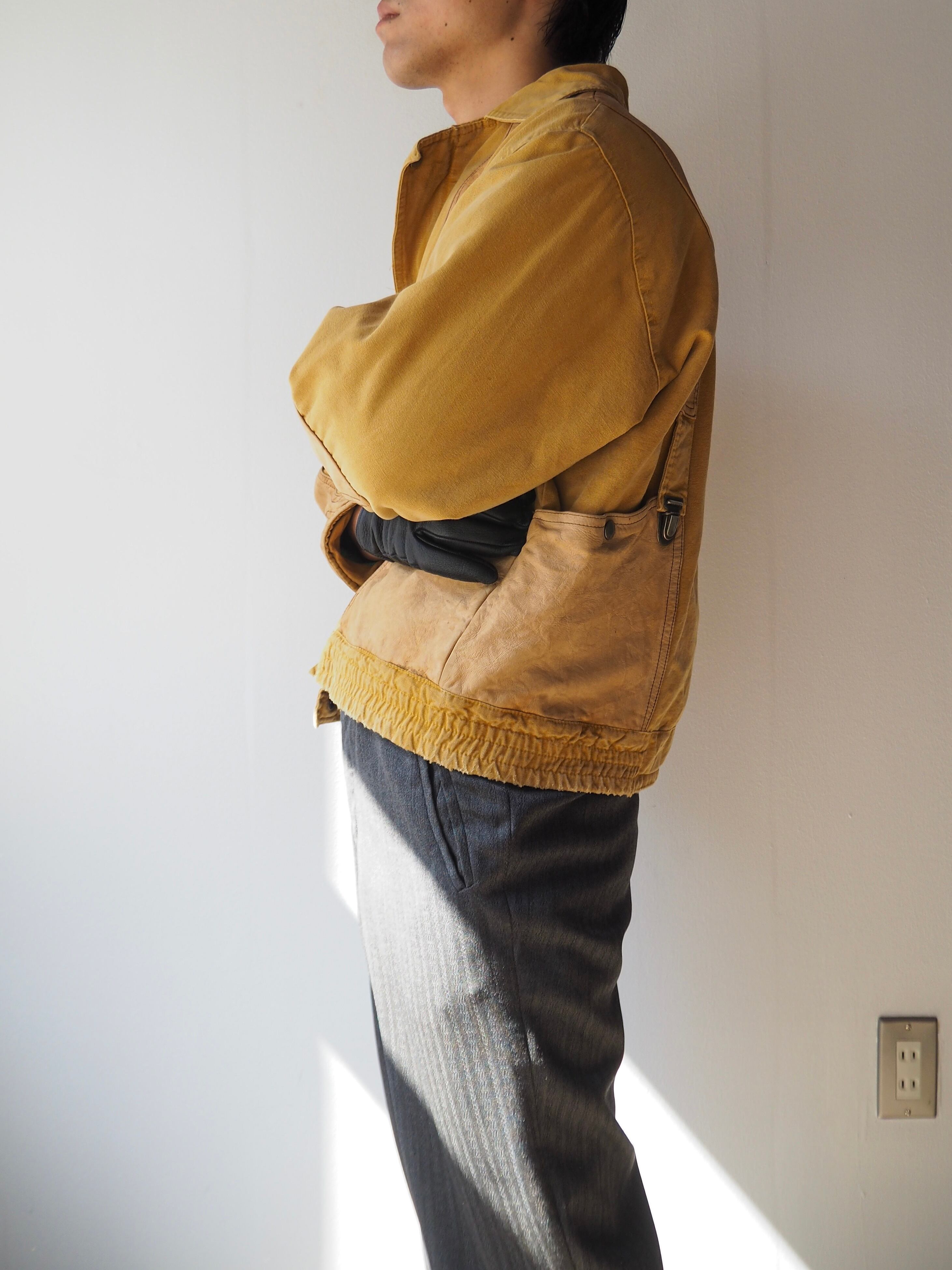 1970s French Mustard Yellow Leather Switching Blouson