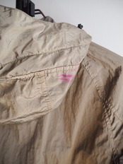 ジッパー各部はサイドをテープで縁取ることによって水、風の侵入を防ぐ仕様。ボディもまた高度の撥水性を付与されておりますので天候が悪い日にはフードをガバッと被り、防水具としてもお使い頂けます。