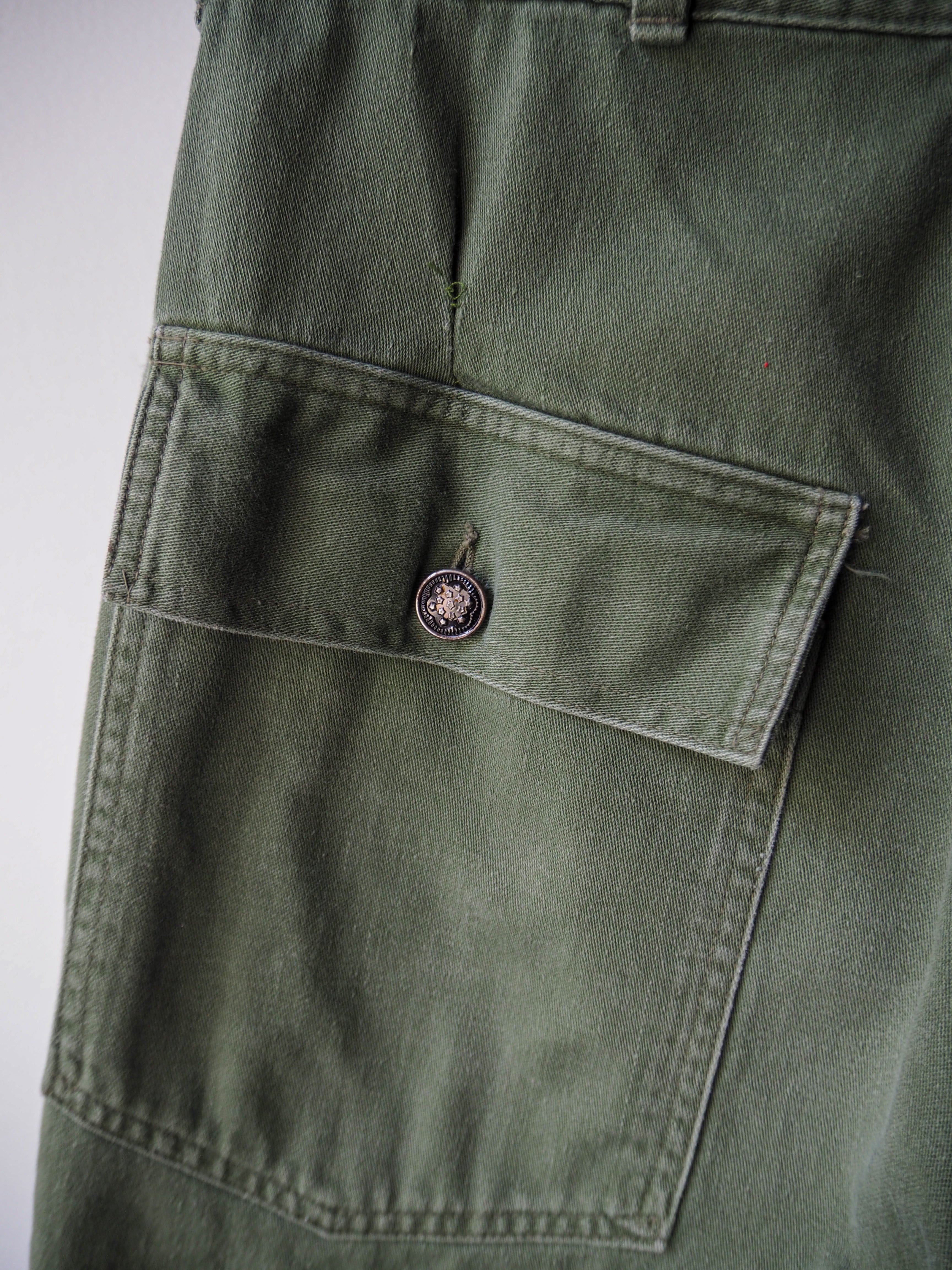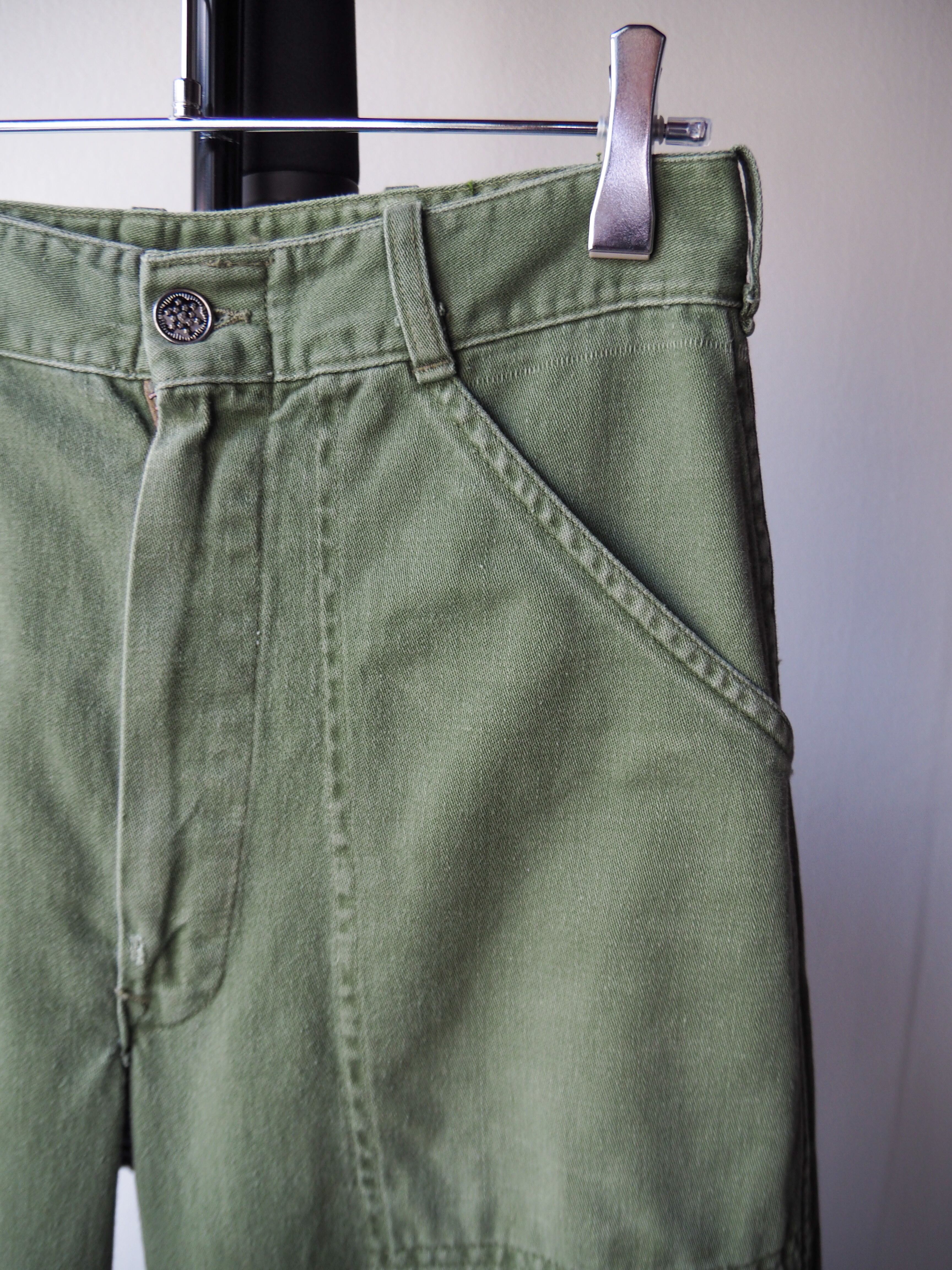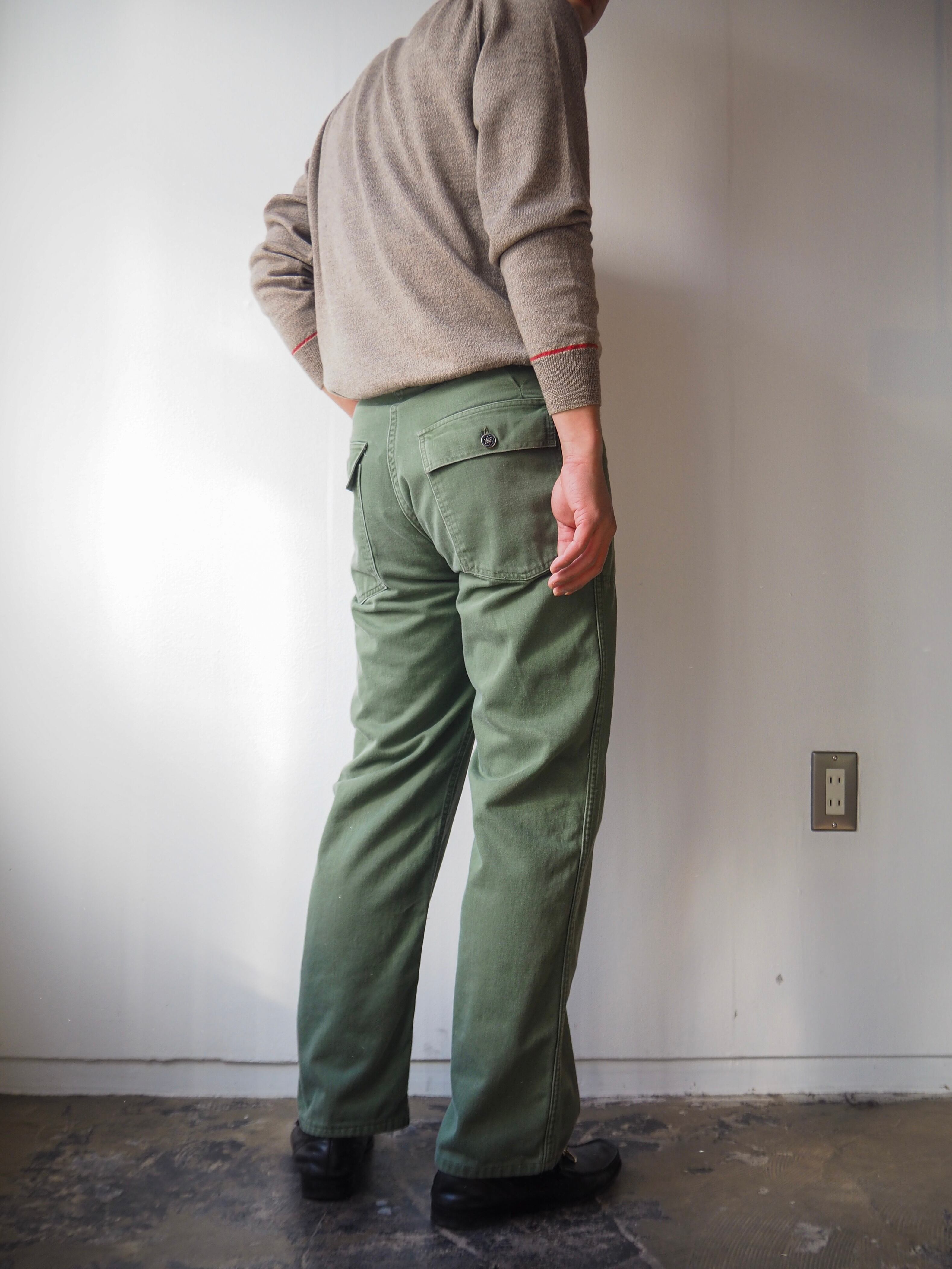 大きめの作りのものが多いアメリカ軍ベイカーパンツですがこちらはヒップのもたつきも無くロールアップ無しでご着用していただける希少な小さめサイズ。