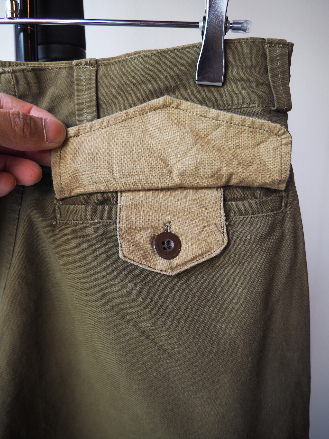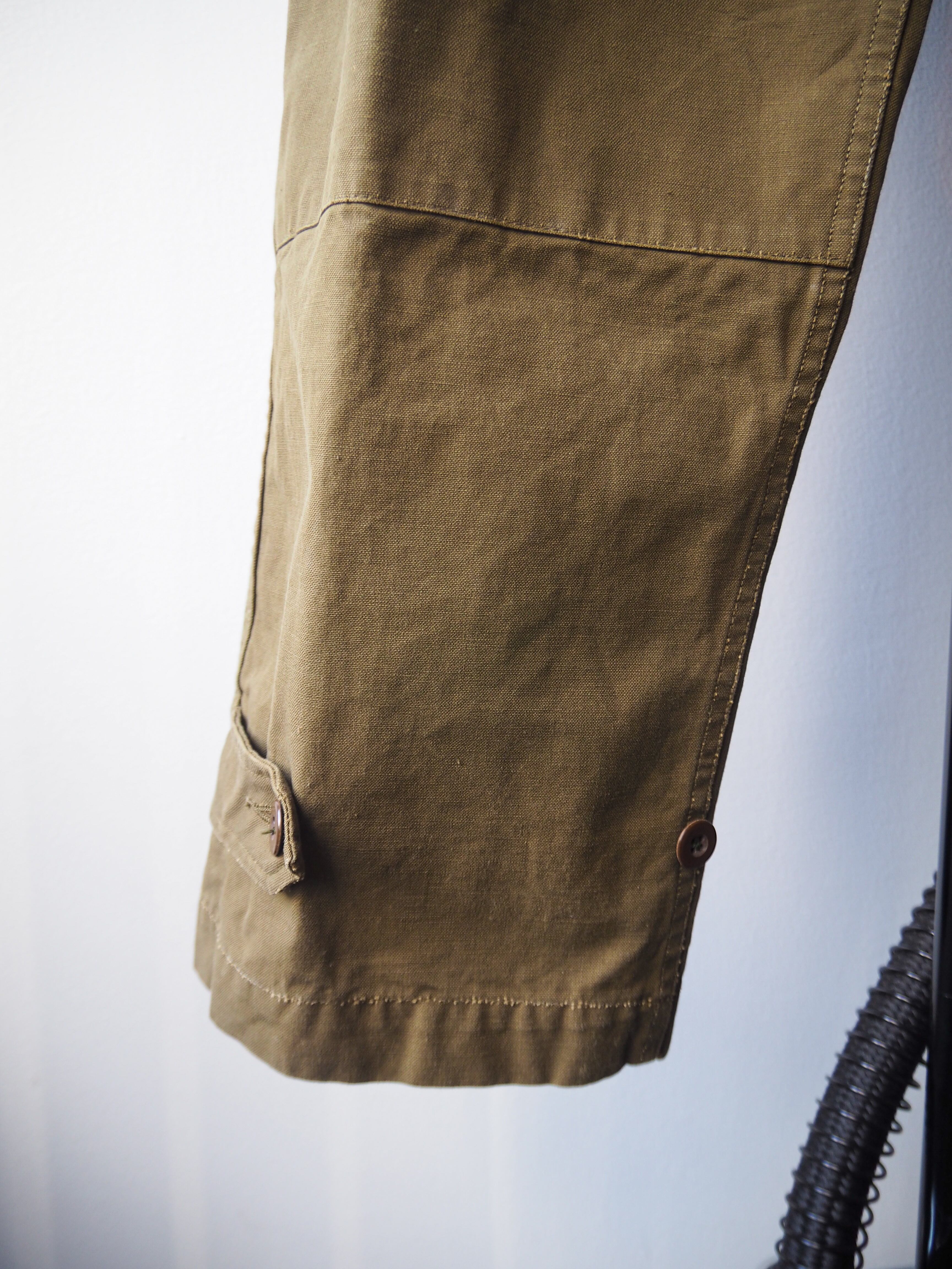 フラップ裏や股の当て布、ポケットの仕立て、裾のアジャスターなど細部まで丁寧に作り込まれたディテールとデザイン性の高さ。そしてコットン素材特有の経年変化と、軍モノの中でも「名作」と言われる所以が随所に感じられます。