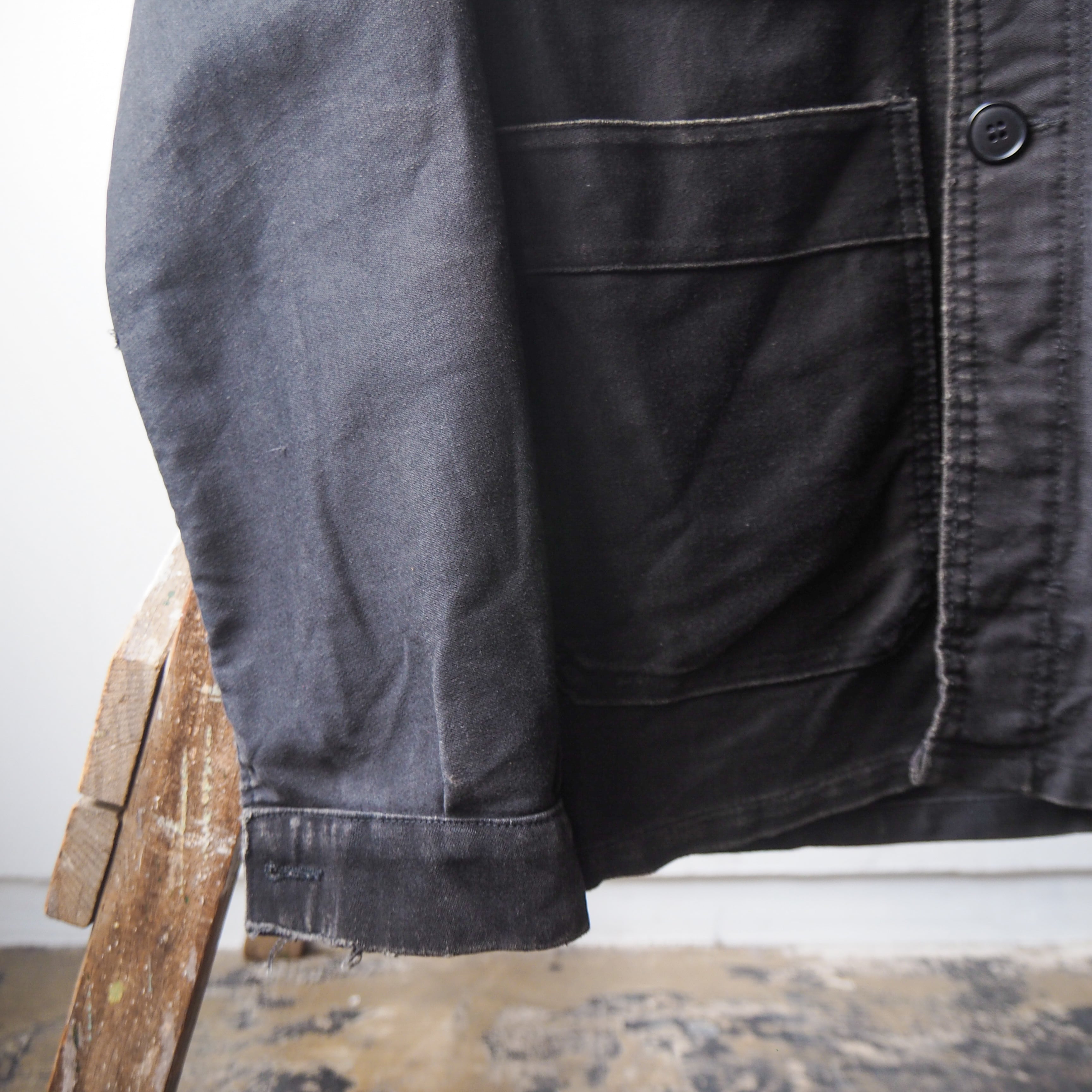 1960s French "Adolphe Lafont" Black Moleskin Work Jacket