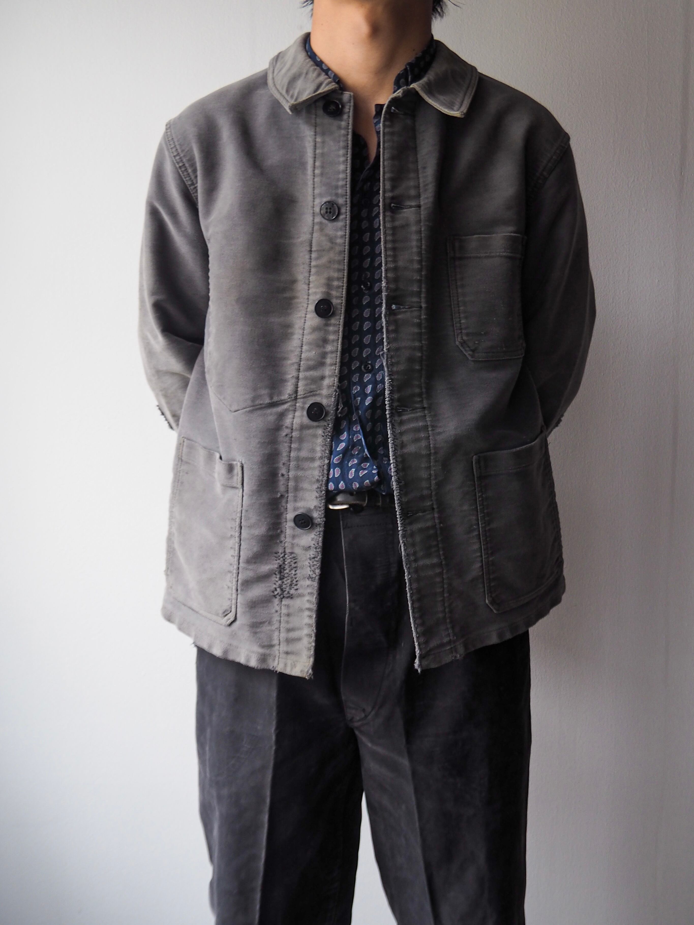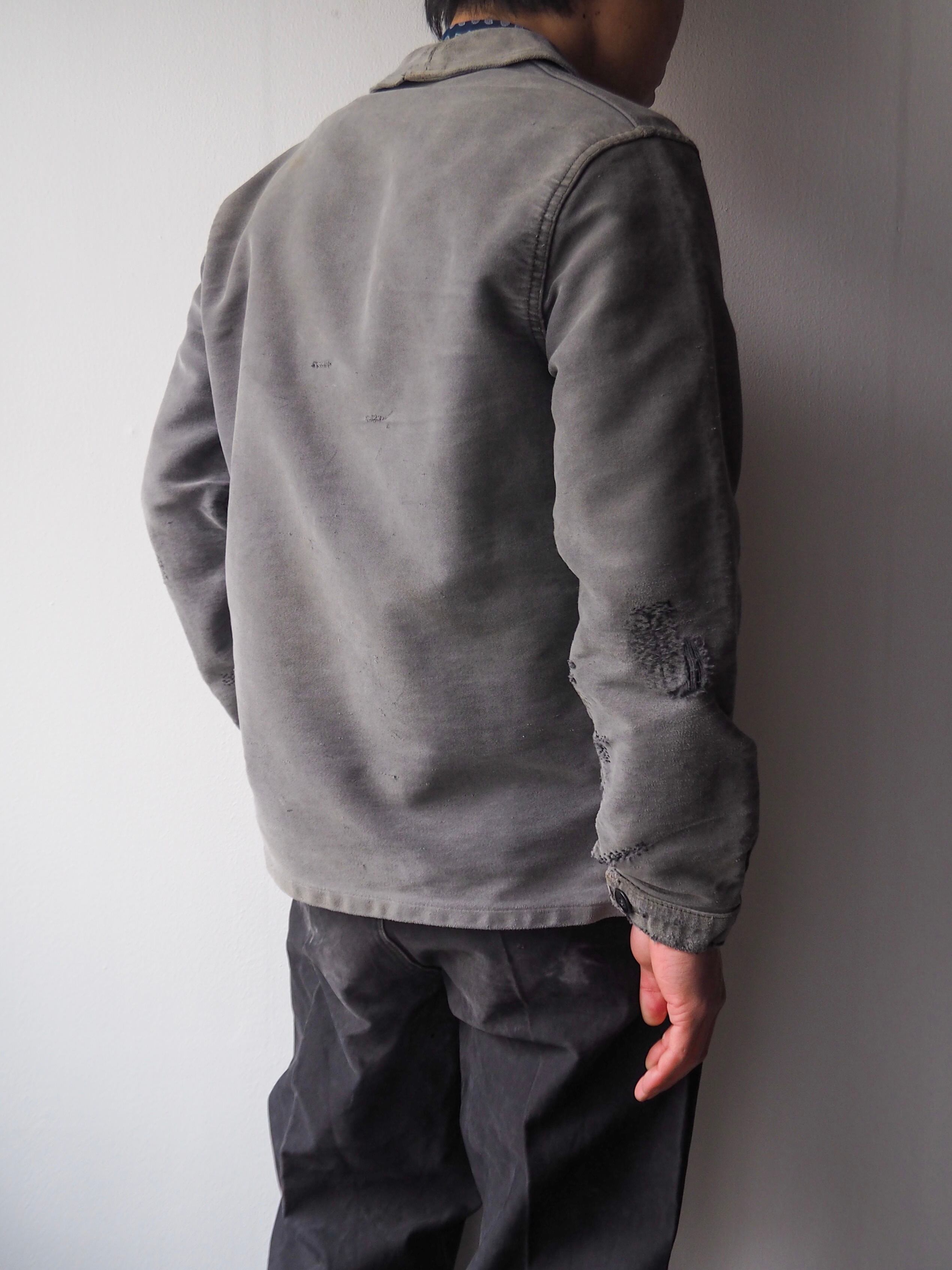 1970年代頃にフランスで着用されていた、ブラックモールスキン生地を採用したワークジャケット。老舗ワークウェアブランド"BEAUFORT"より、経年によりグレーカラーに褪色した1着のご紹介です。