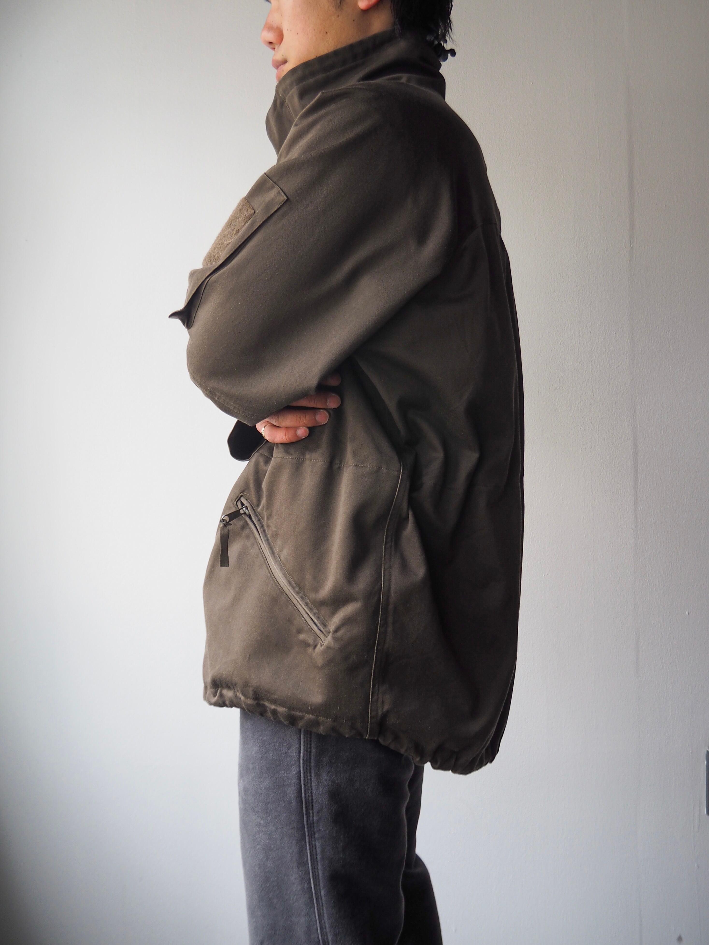 フロントには二つのジッパー式スラッシュポケット、大きく取られた隠し胸ポケット、左腕にはシガーポケット、内部には左右ともにフラップ付き内ポケットが付属。襟背後、ウエスト、裾部分にはドローコードを配備。